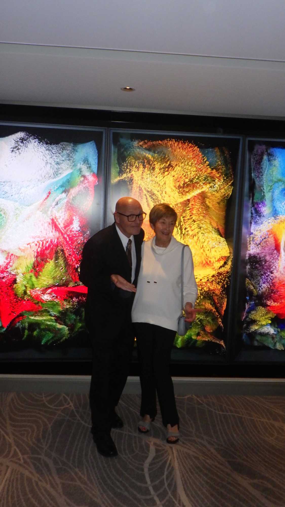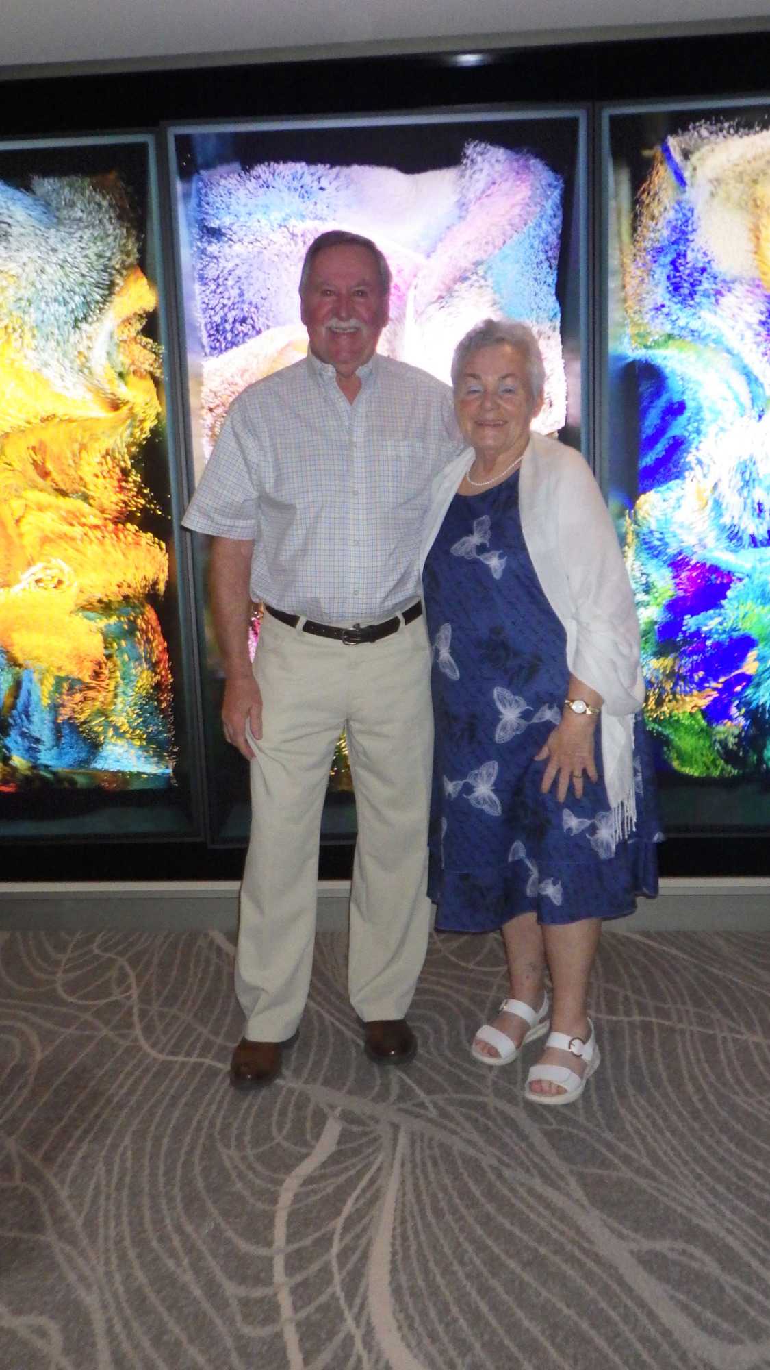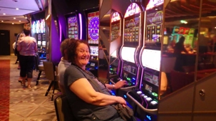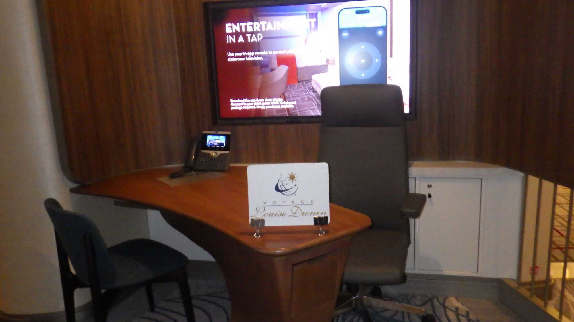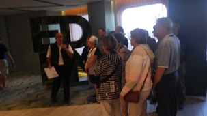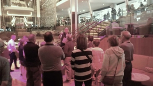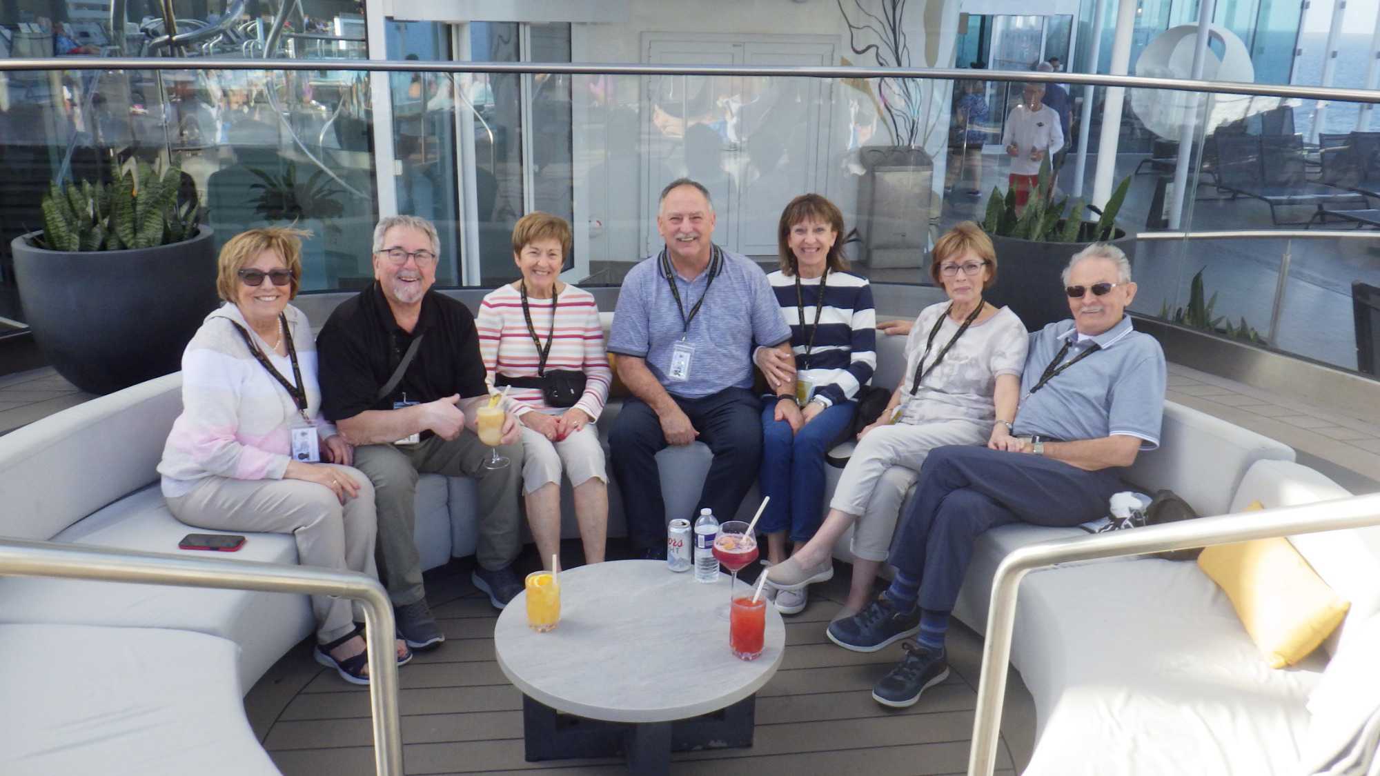 Après le petit-déjeuner que chaque croisiériste pouvait prendre à son rythme et à son heure, nous avons effectué notre visite guidée du navire à 10 h. Pour pouvoir jouir et profiter au maximum de toutes les ressources et les recoins du bateau, je vous jure que cette visite s’impose. J’adore prendre le temps d’orienter les gens dans le navire en observant leur mine réjouie et étonnée devant les enfilades de salles, de salons, de gyms, etc., d’un pont à l’autre. En prime, j’indique à toutes et à tous les nombreuses cachettes secrètes à utiliser en vacances pour s’isoler de la foule ou se jouer des tours pendables ou pas! hi hi hi! Une bonne quinzaine de personnes y ont participé tout en s’amusant franchement. C’est toujours un plaisir pour moi de faire visiter un navire, autant aux nouveaux qu’aux anciens voyageurs. Je cultive le don de toujours voir les choses avec un regard neuf.