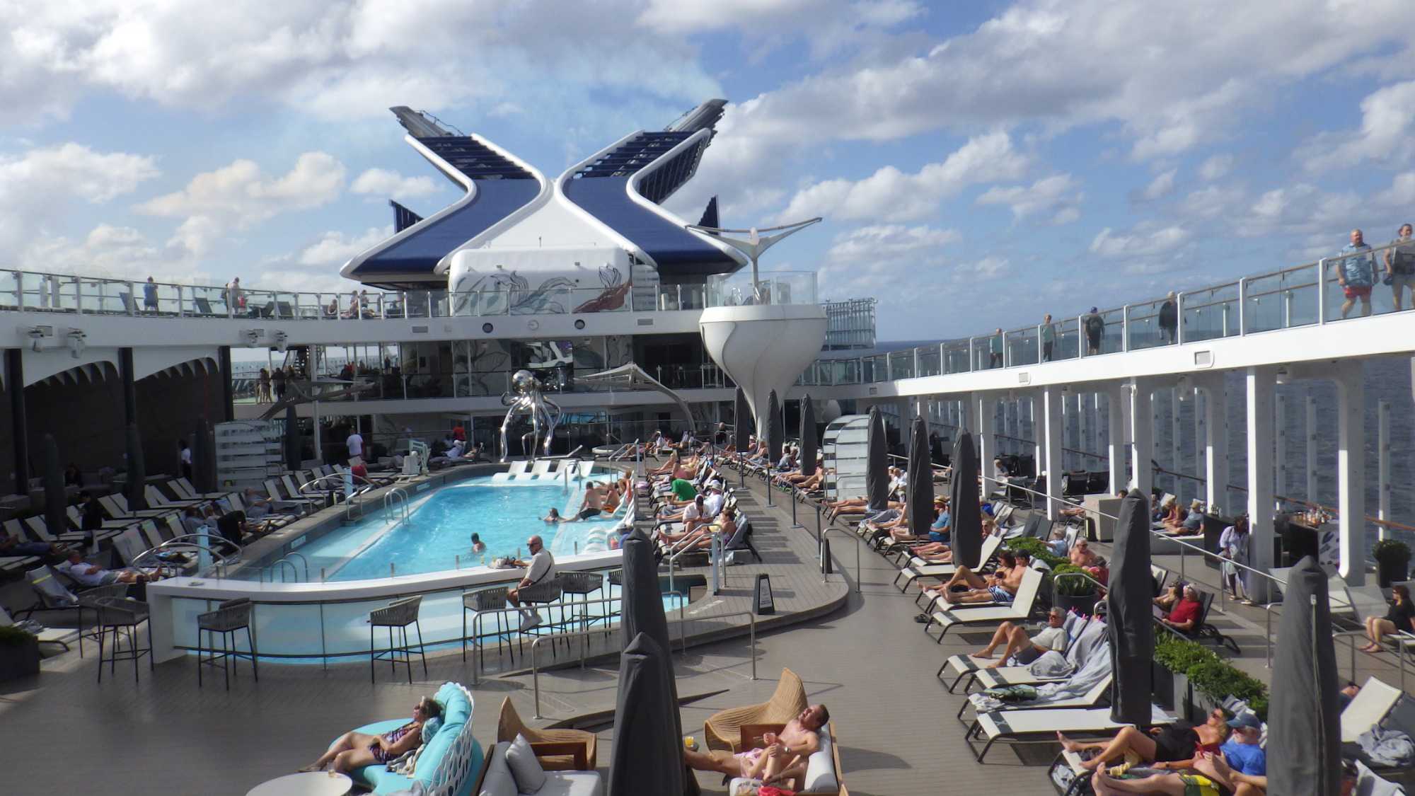Durant cette journée en mer, les gens en ont profité pour faire de la relaxation, de la lecture, de la gym, de la marche ou encore jouer au casino ou faire les boutiques. Je reviendrai sur l’offre incroyable de sports ou loisirs que l’on trouve à bord ultérieurement.