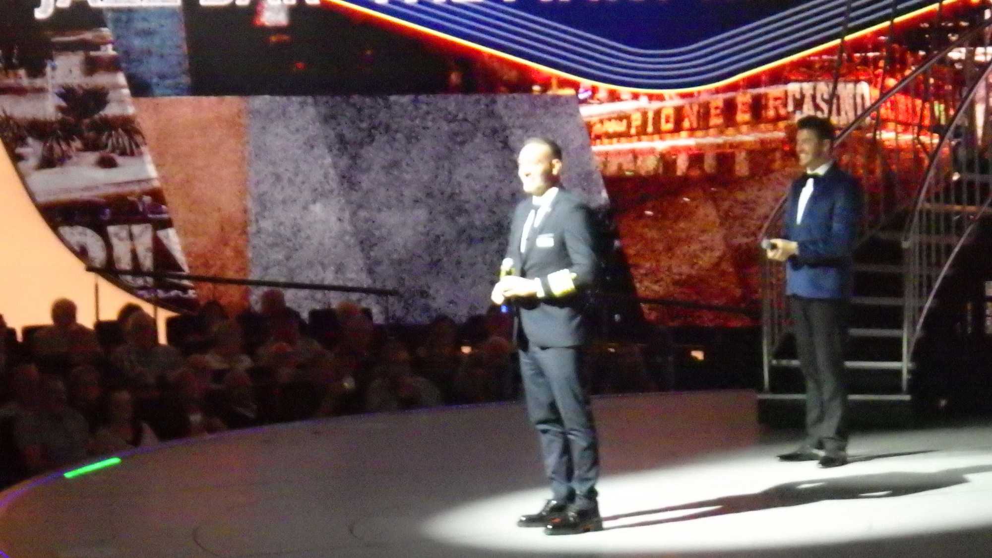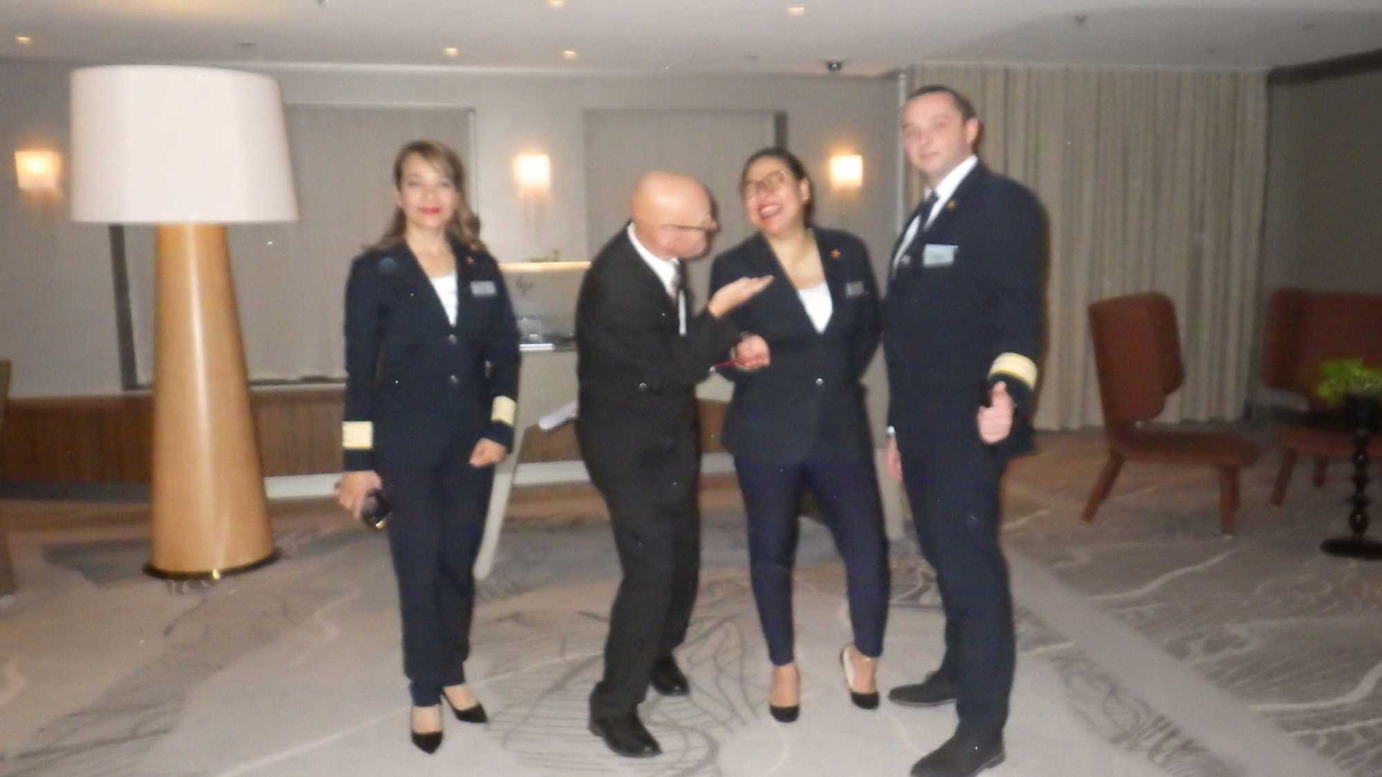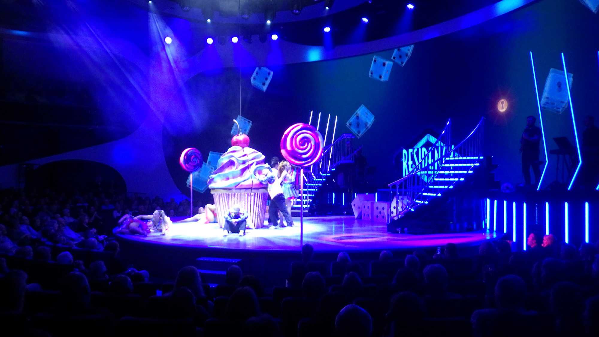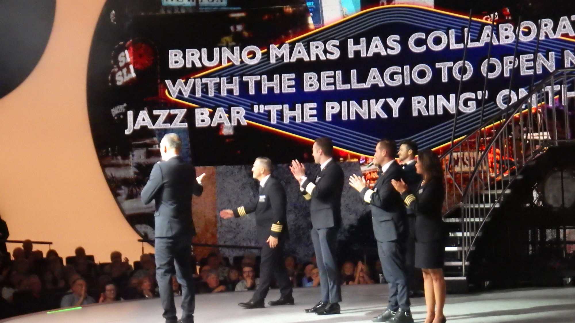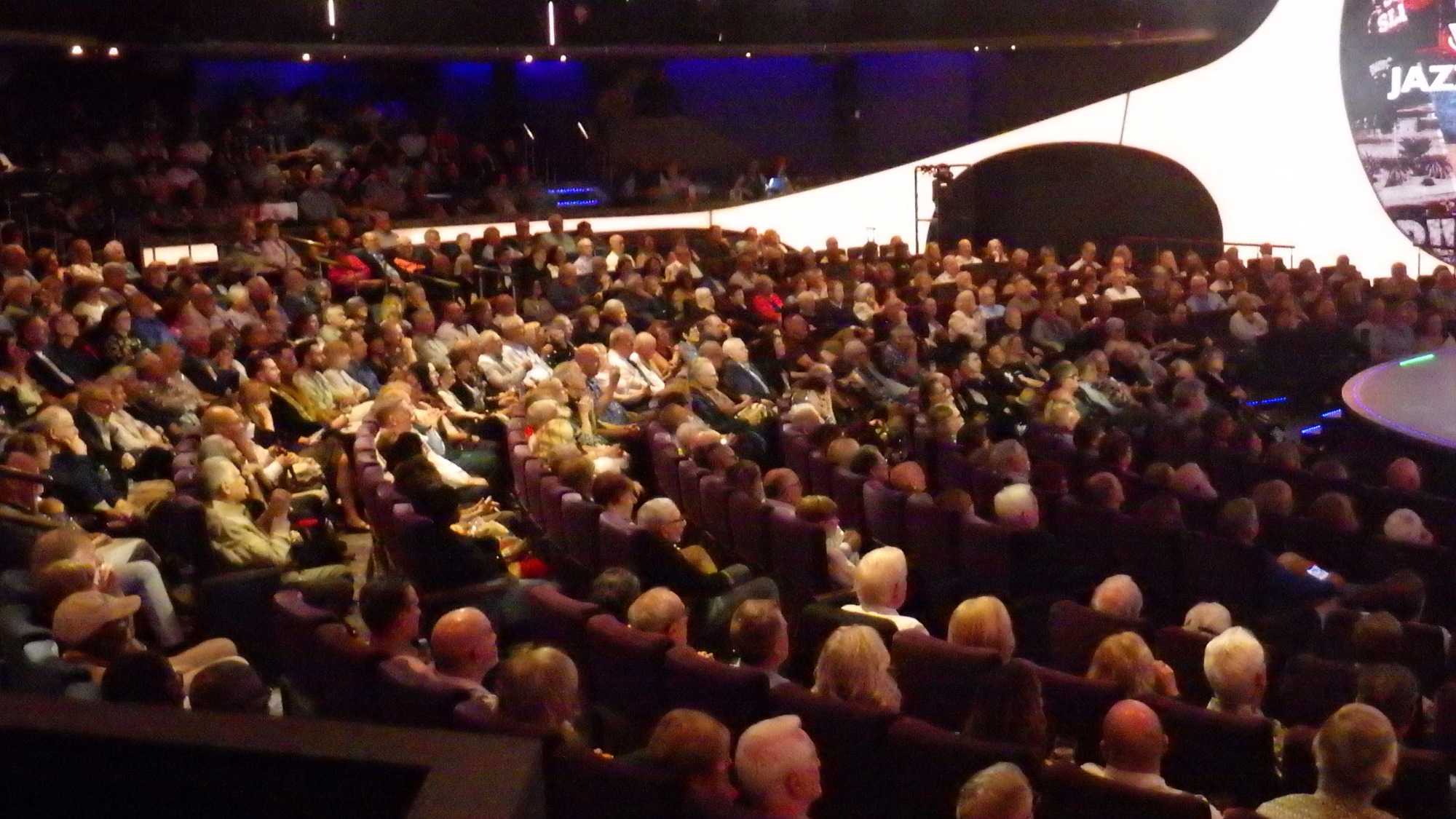 Après un excellent souper, comme toujours sur les navires de Celebrity, plusieurs d’entre nous poursuivent cette belle soirée au théâtre pour assister à un excellent spectacle de style Las Vegas. Le capitaine nous a souhaité la bienvenue avant le spectacle avec verve et grand art.