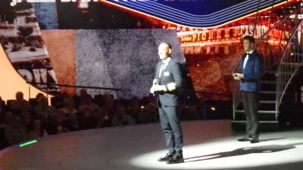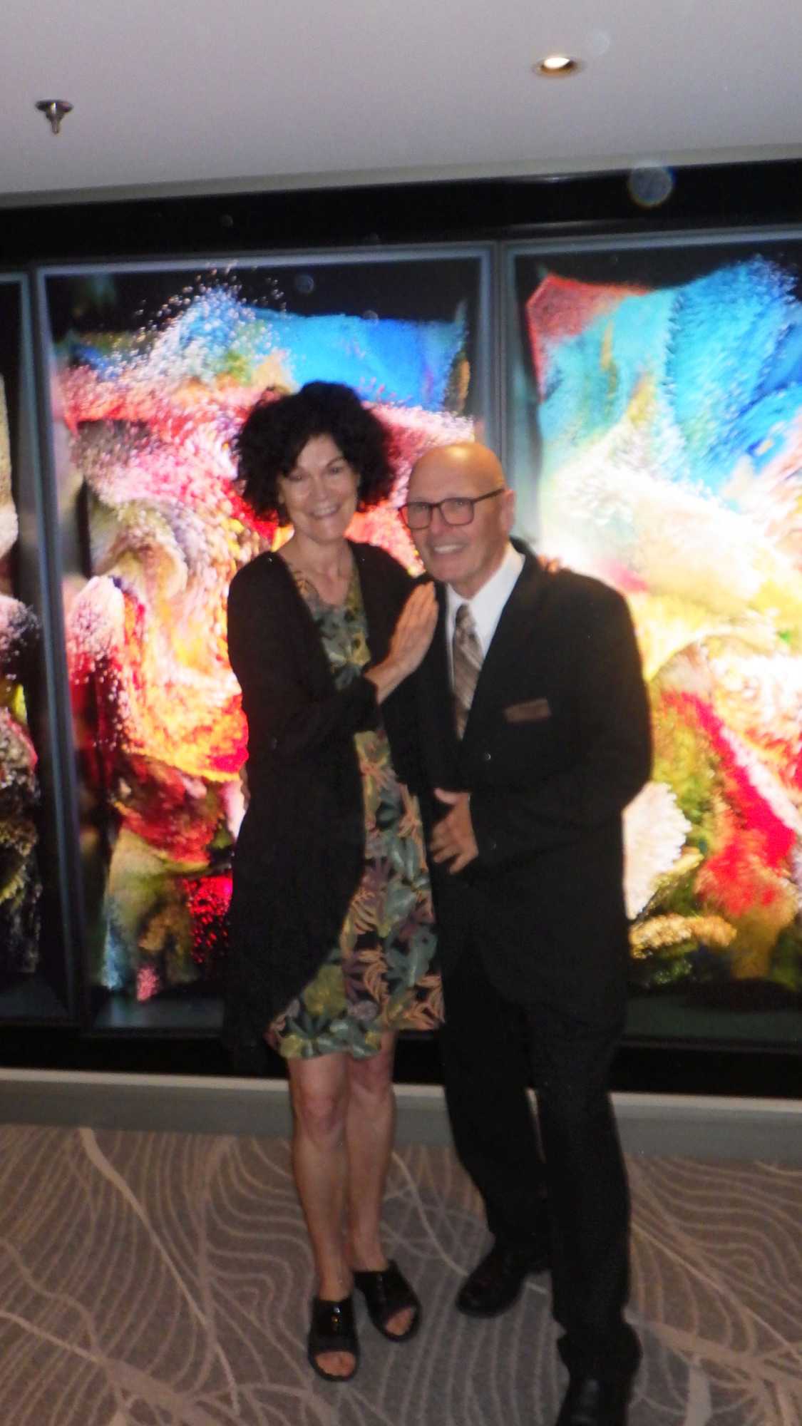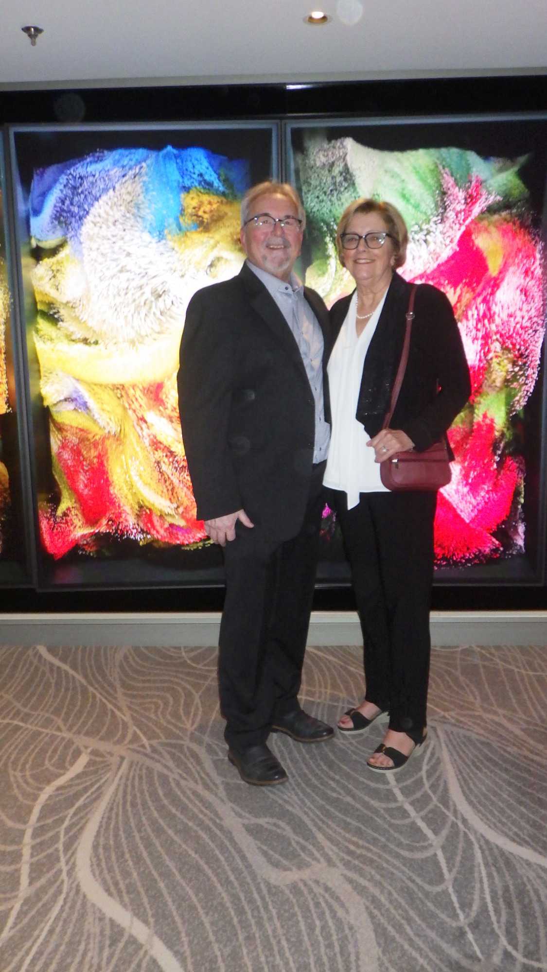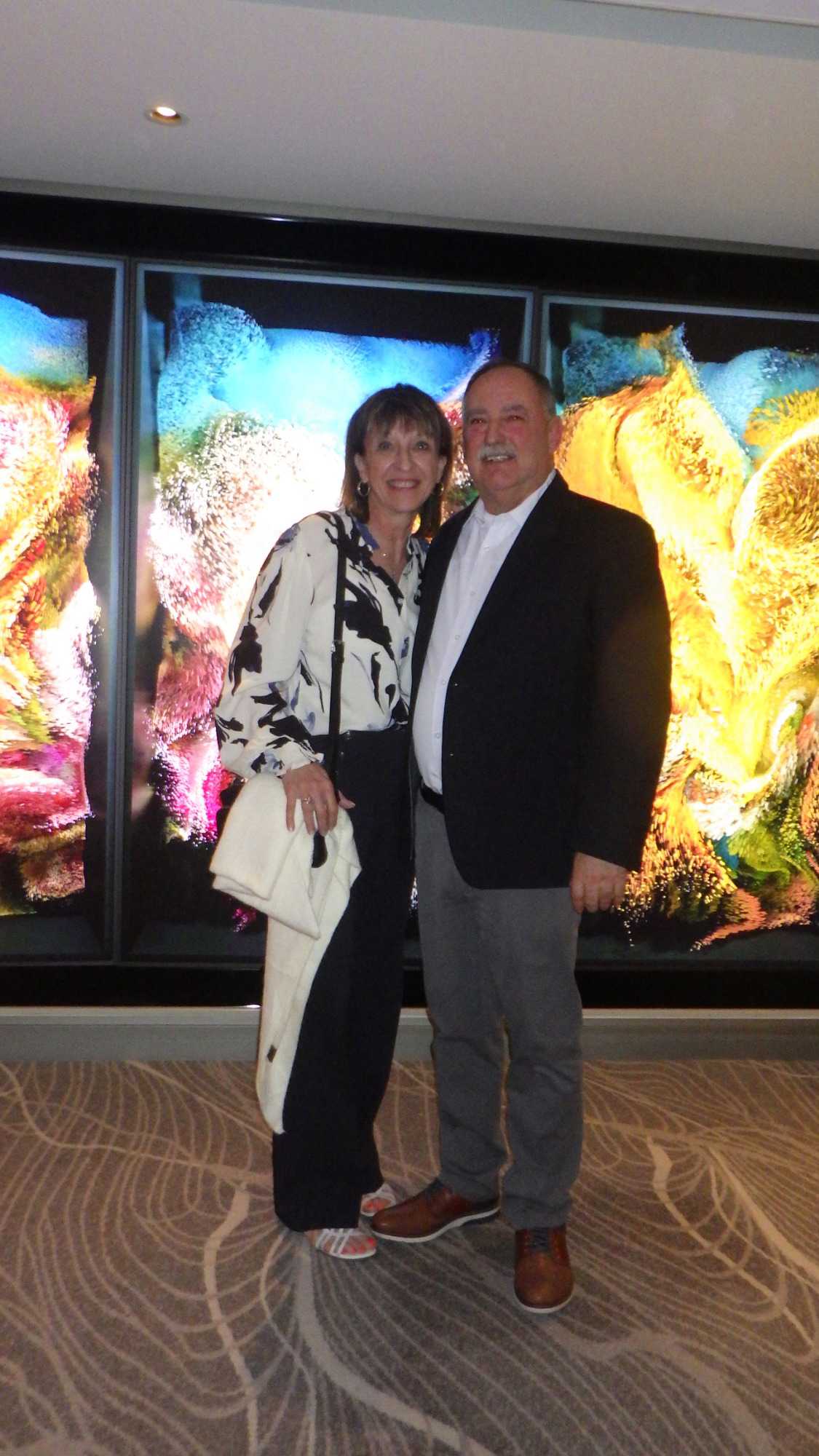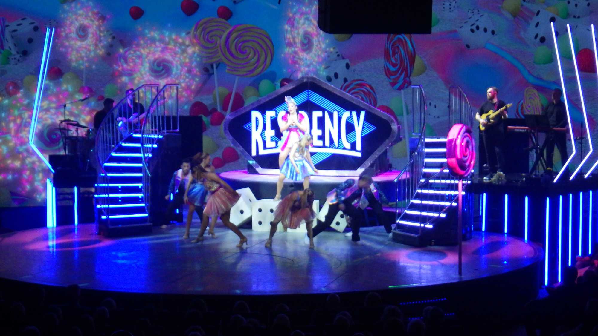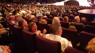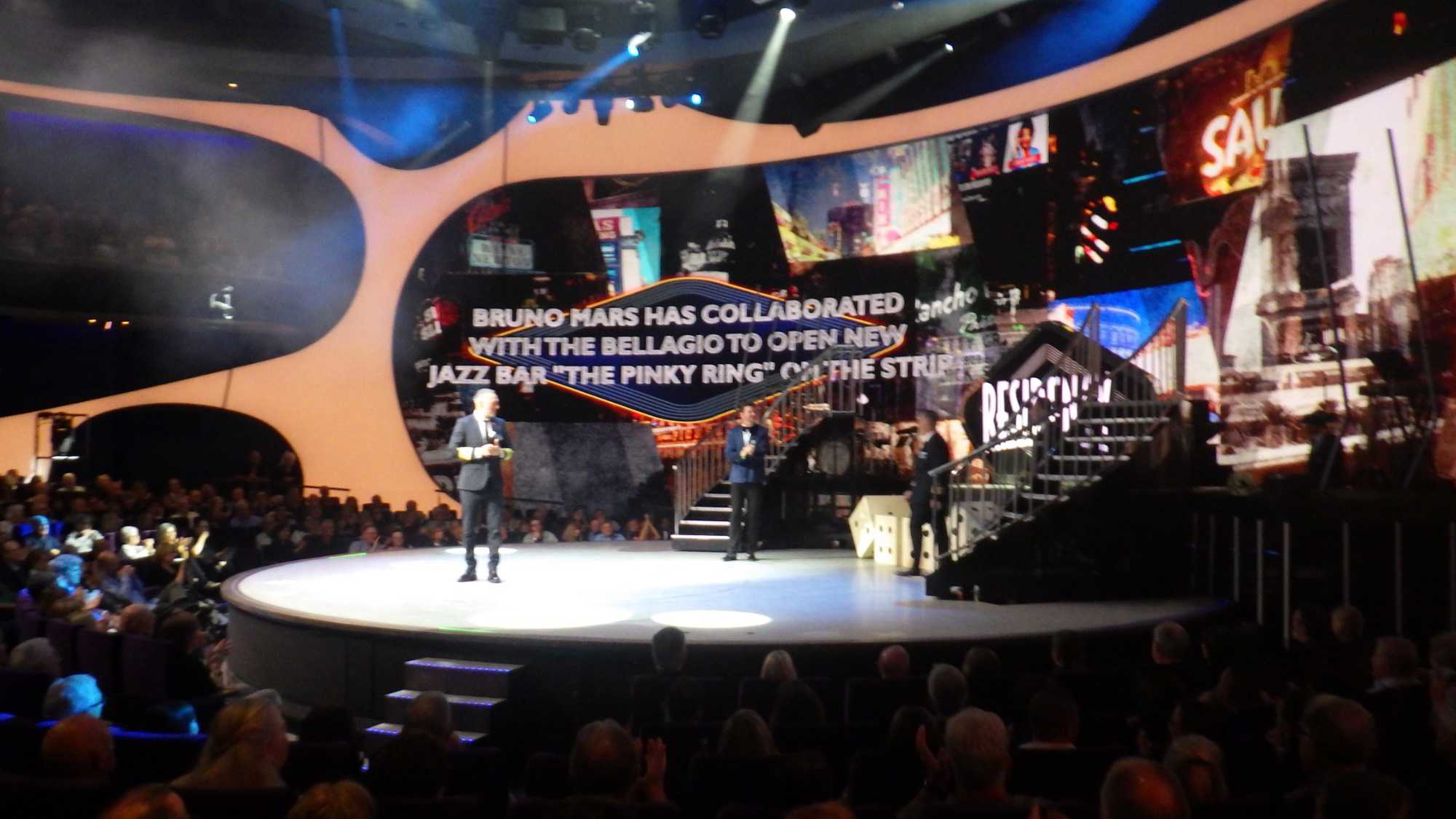 Après un excellent souper, comme toujours sur les navires de Celebrity, plusieurs d’entre nous poursuivent cette belle soirée au théâtre pour assister à un excellent spectacle de style Las Vegas. Le capitaine nous a souhaité la bienvenue avant le spectacle avec verve et grand art.