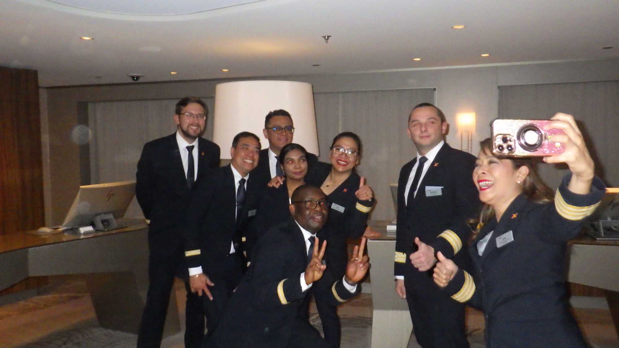 Ce soir, notre croisière commence vraiment en grand, chacun aura revêtu ses plus beaux atours pour une première soirée glamour hommes et femmes se mettent sur leur 36 pour briller de tous leurs feux. C’est vraiment agréable de voir nos belles dames et beaux messieurs chic and swell, comme on dit. Mmm, là, c’est le temps de les immortaliser sur photos!