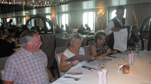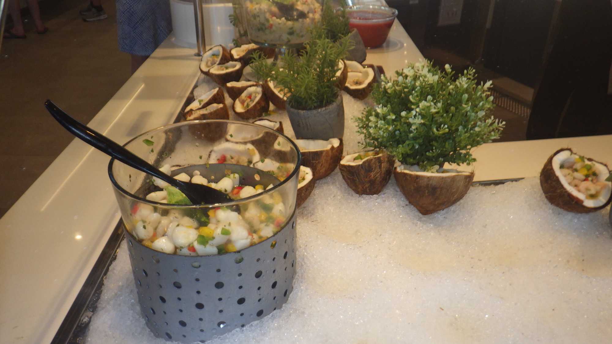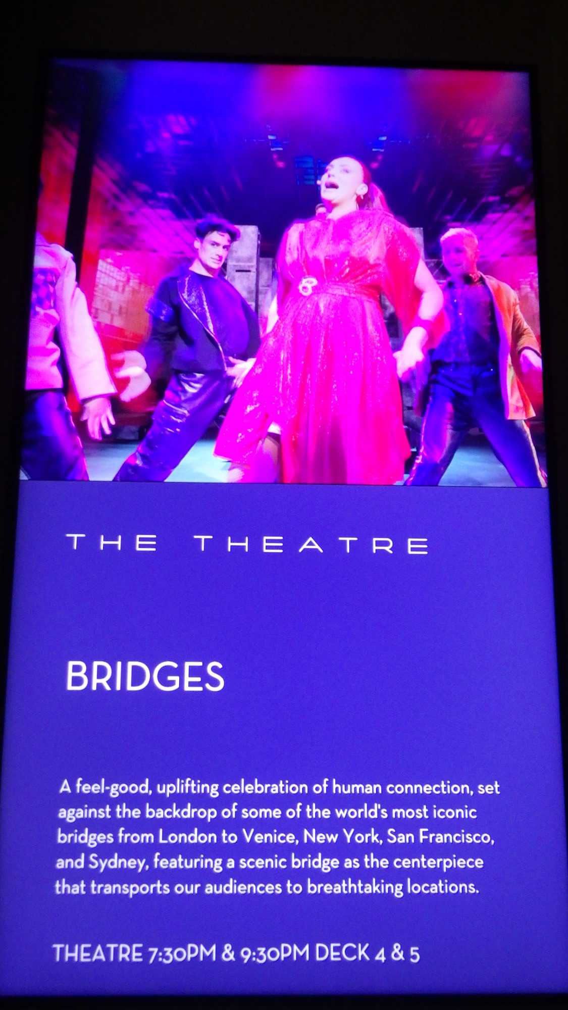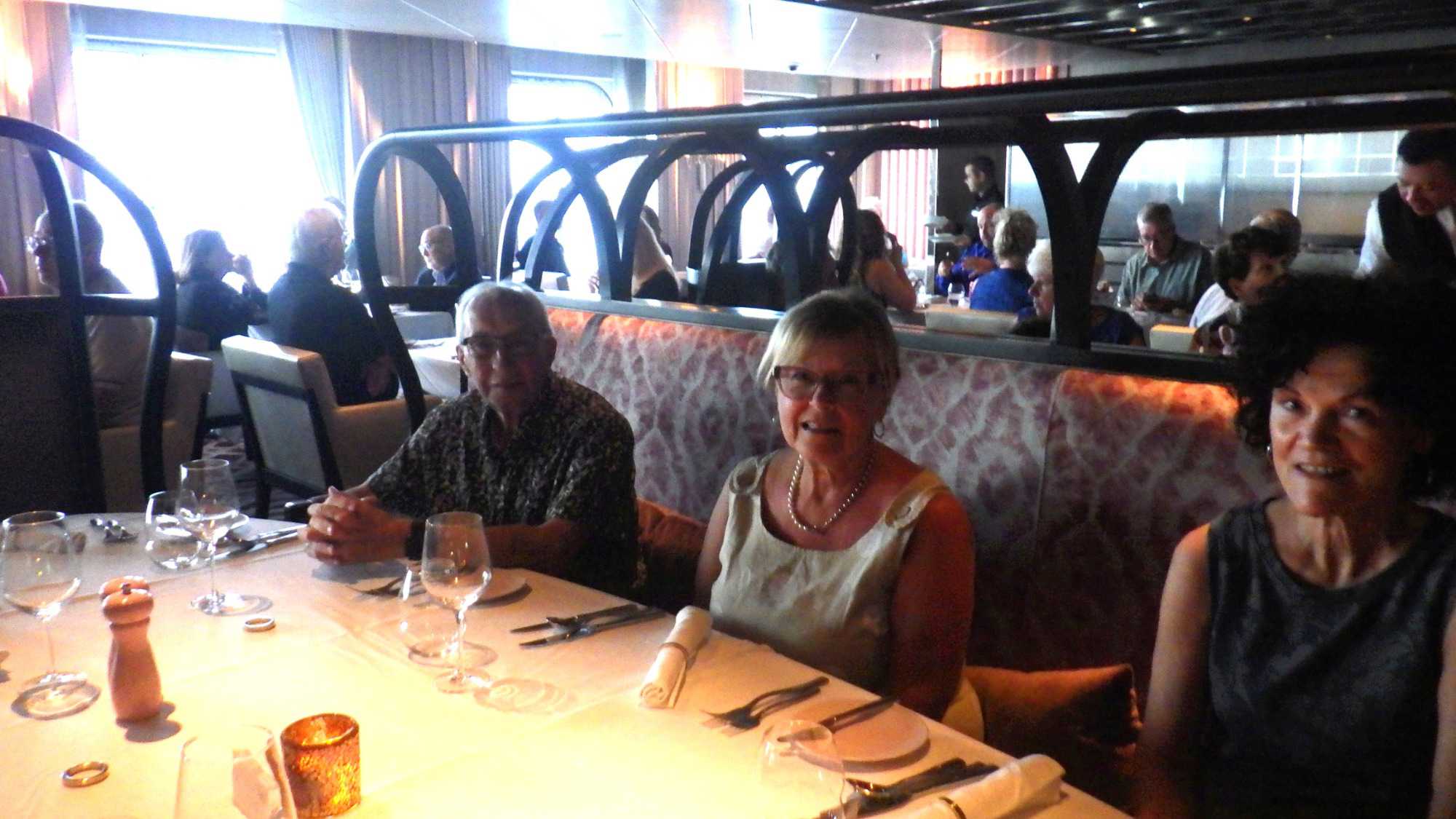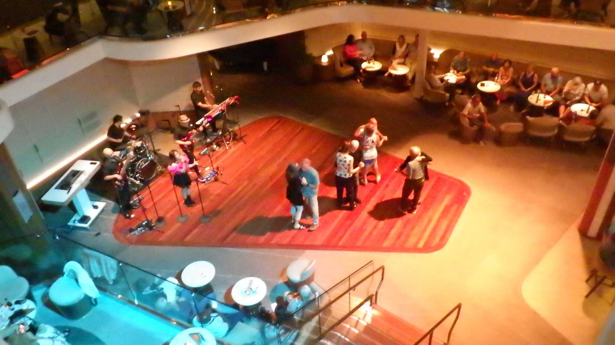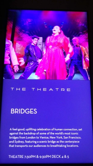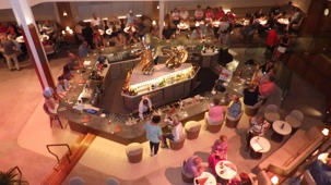 Les journées passent trop vite au soleil! Au souper, tous avaient repris leur rythme de… gourmands ou de gourmets je n’arrive toujours pas à comprendre comment l’appétit revient juste au bon moment, wow! Faut dire que les cuisines regorgent de denrées délicieusement bien apprêtées. Les plateaux et les assiettes mériteraient en soi un diaporama complet! Il a fallu marcher beaucoup et faire de belles promenades sur les différents ponts afin de faire descendre tous ces bons petits plats. Le souper, des entrées aux desserts, était fabuleux. Il y avait, comme tous les soirs, de très bons spectacles, le casino, les bars et d’excellents musiciens triés sur le volet un peu partout.