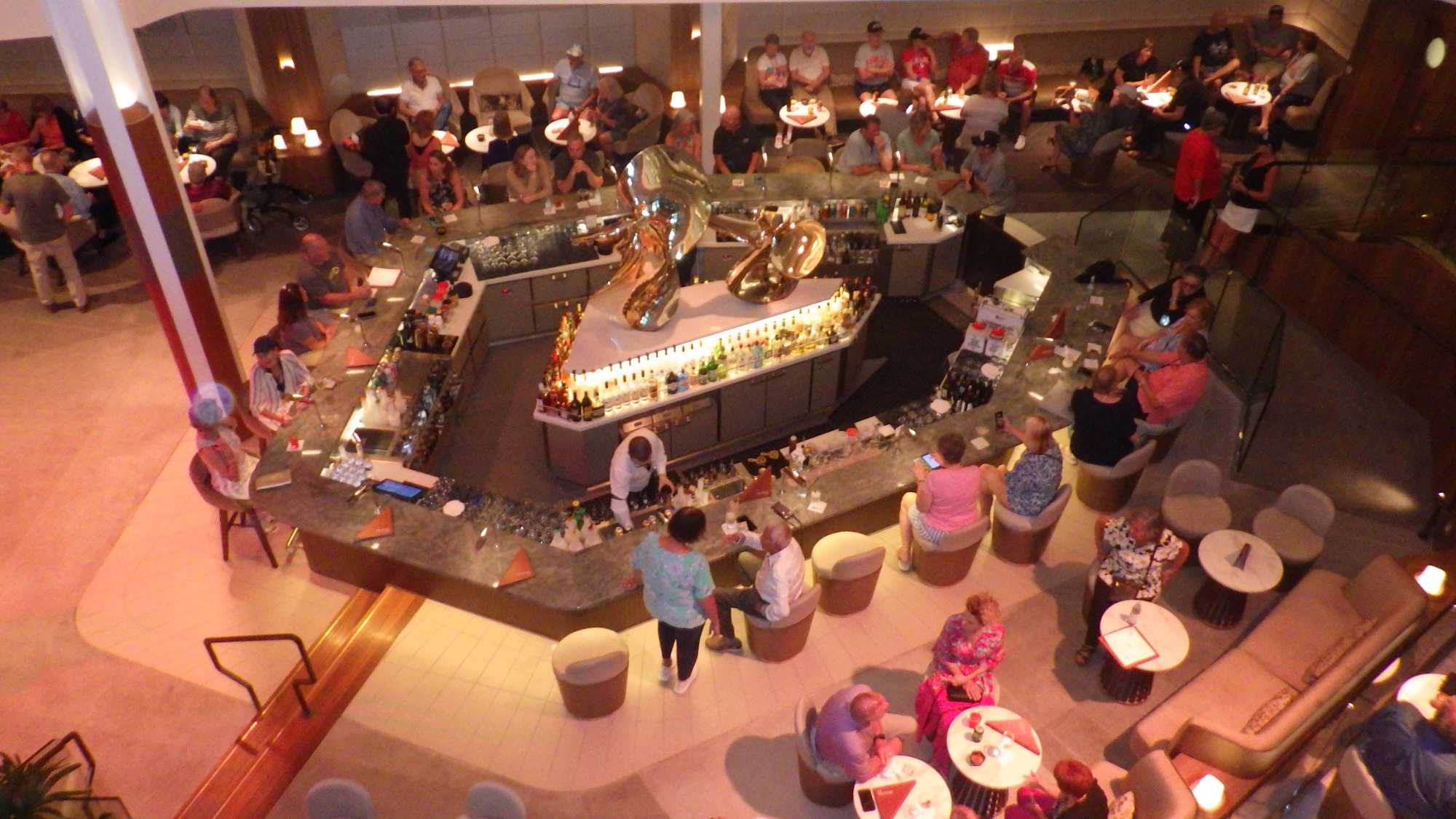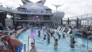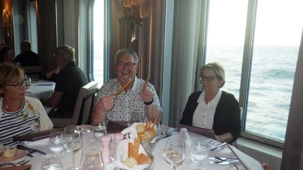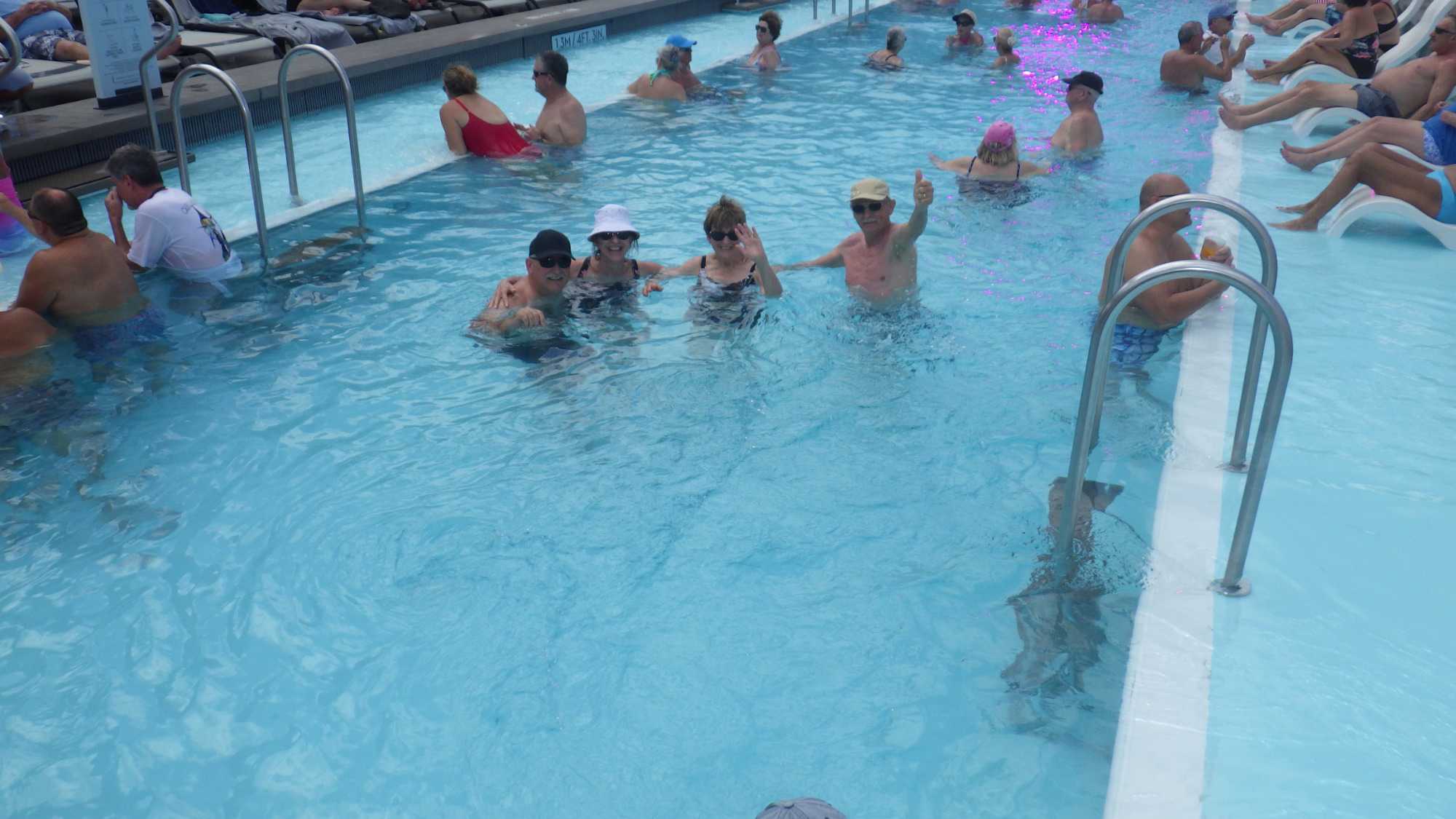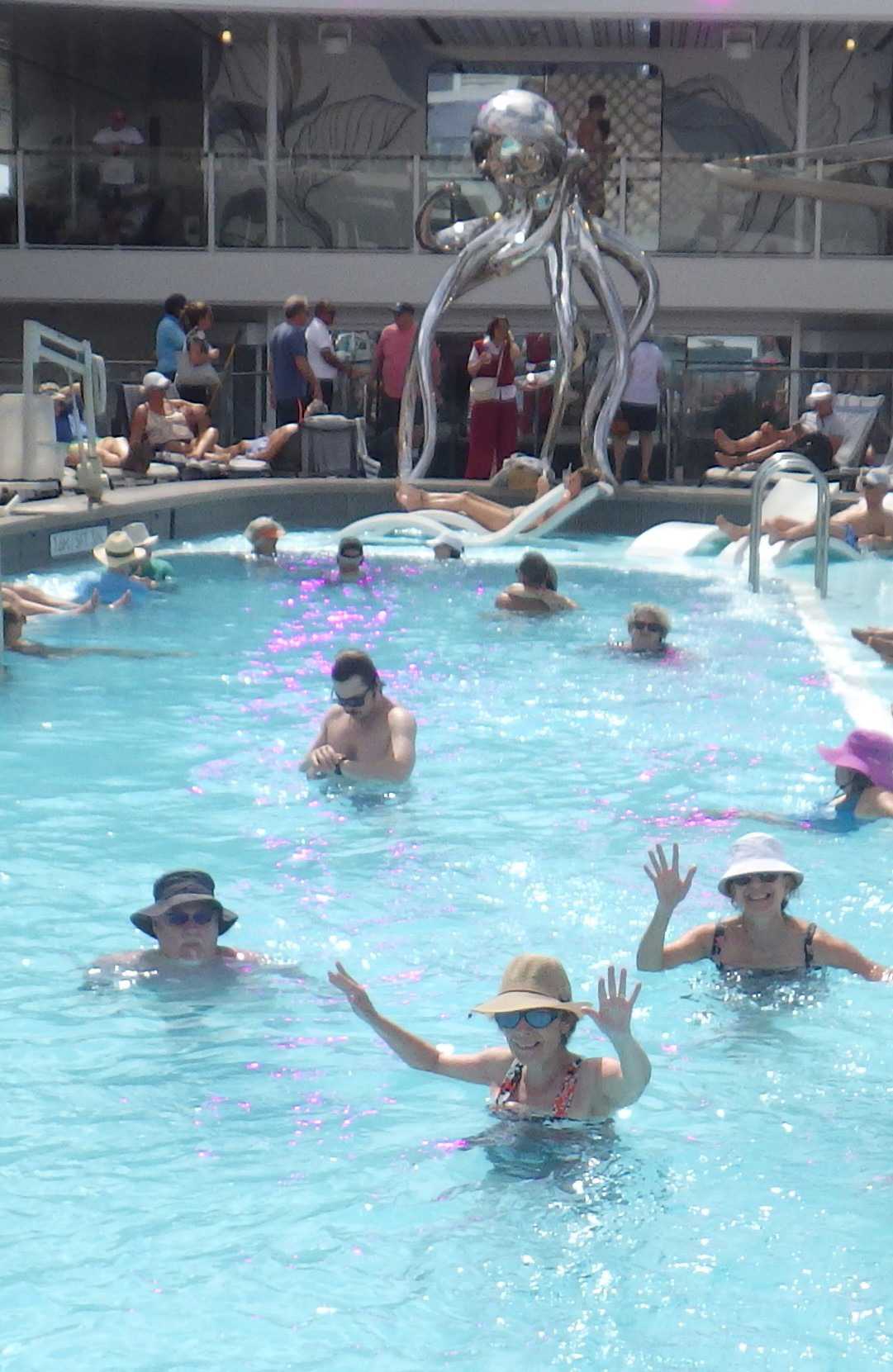 Nous profitons de cette journée cadeau en mer où chacun choisit son rythme… de croisière! Lecture, gym, danse, casino, jeux de dés, tournée des boutiques, conférences, massages, spas, dégustations de vins, cocktails ou mocktails, il y a vraiment de tout pour tous. Parmi les passe-temps populaires, les bains de soleil à l’extérieur sur le pont 14 ont remporté la palme. Bien des voyageurs adorent ça; ça change des manteaux, tuques et mitaines. Tant qu’à y être, pourquoi pas un petit drink, il est sûrement 17 heures quelque part dans le monde. Comme le disait la mère universelle de plusieurs de mes voyageurs lorsqu’ils allaient à la mer : Tiens-toi au bord! Mais plusieurs fins finauds pensent encore avoir entendu au bar! Jetez un coup d’œil aux photos ou demandez à un certain Yves et à sa famille si le temps est long à bord, vous verrez qu’ils vous diront qu’on ne s’ennuie jamais sur un navire en mer.