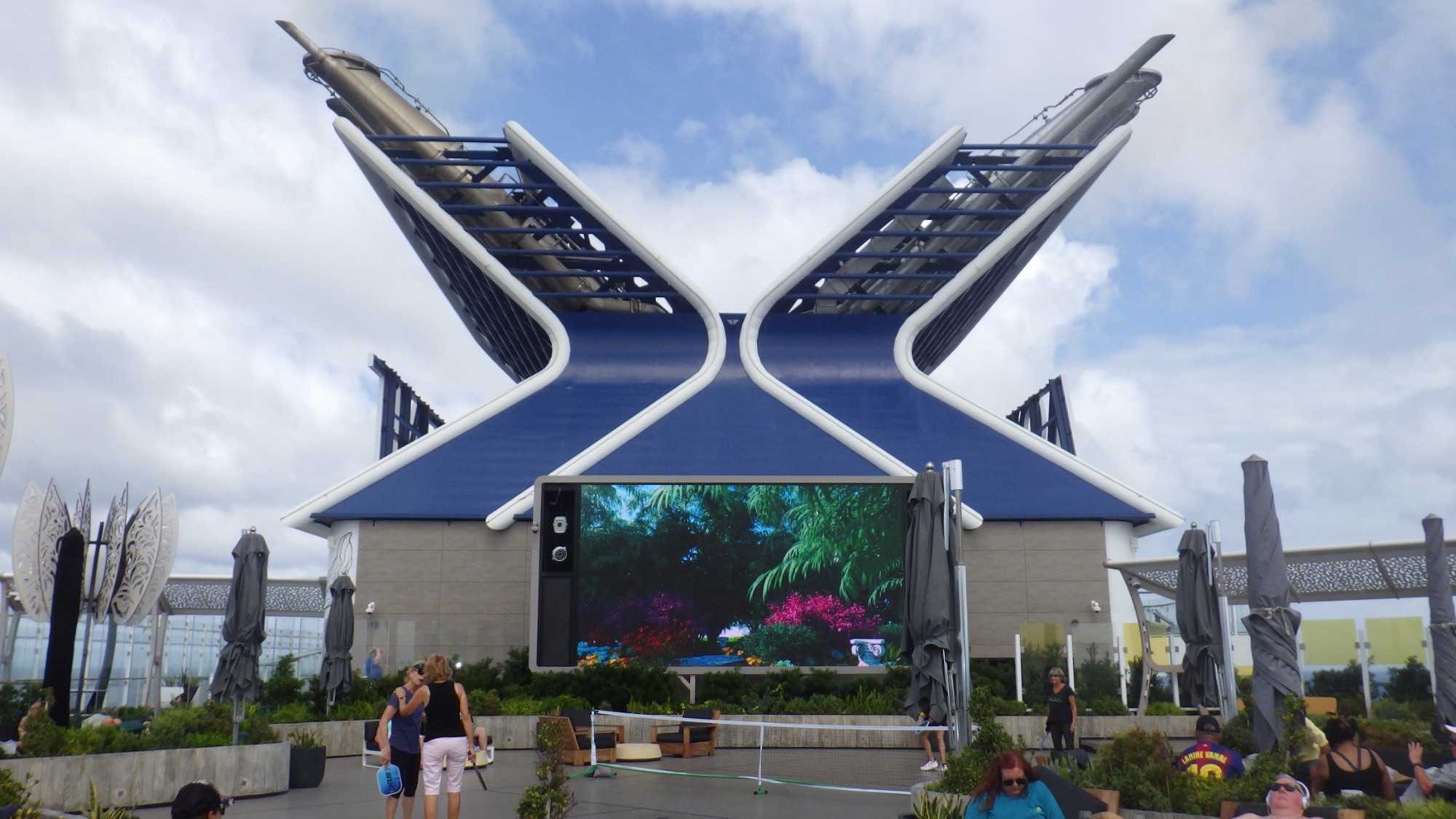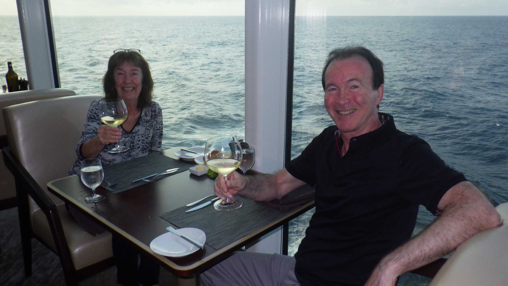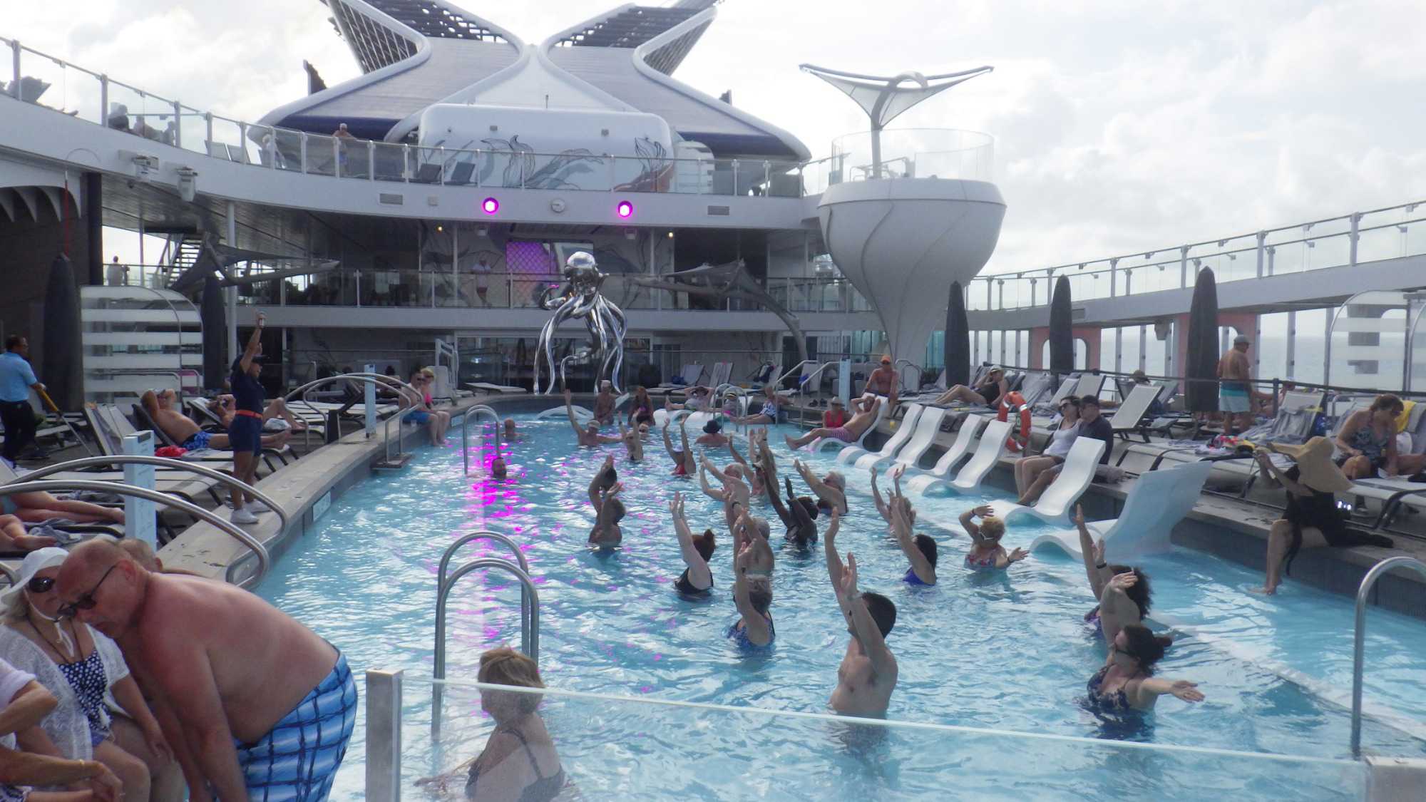 Je peux vous dire que ça fait un bien immense de pouvoir sortir dehors le matin pour respirer l’air du large à pleins poumons, devant un horizon qui s’étire à perte de vue et qui invite à l’introspection ou à la méditation sur notre pur bonheur d’être! Comme sur les navires de Celebrity, il y a du vrai gazon, je peux déambuler pieds nus et presque sentir la rosée du matin, un bonheur dont je ne me prive pas et qui fait du bien à l’âme. Oui, oui, je suis poète à mes heures!