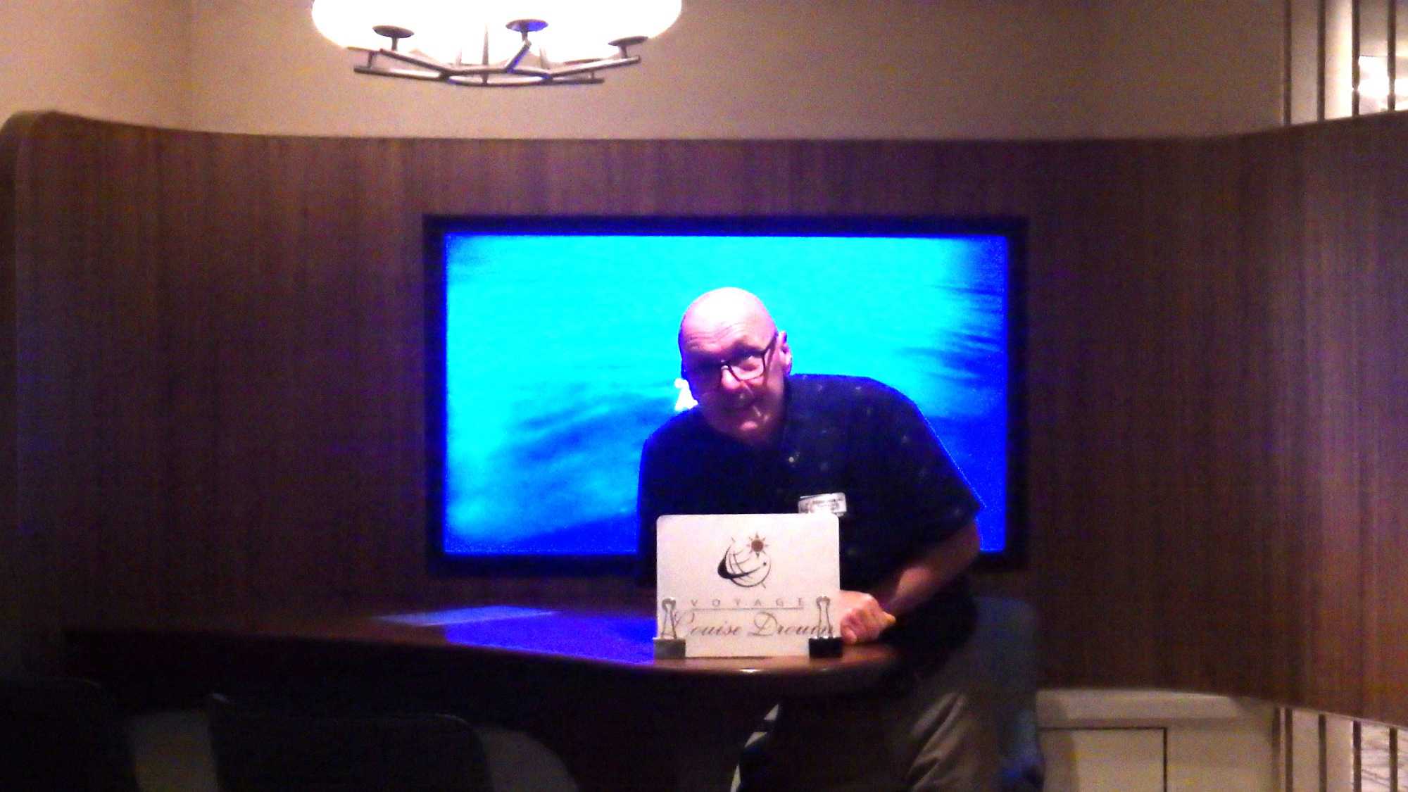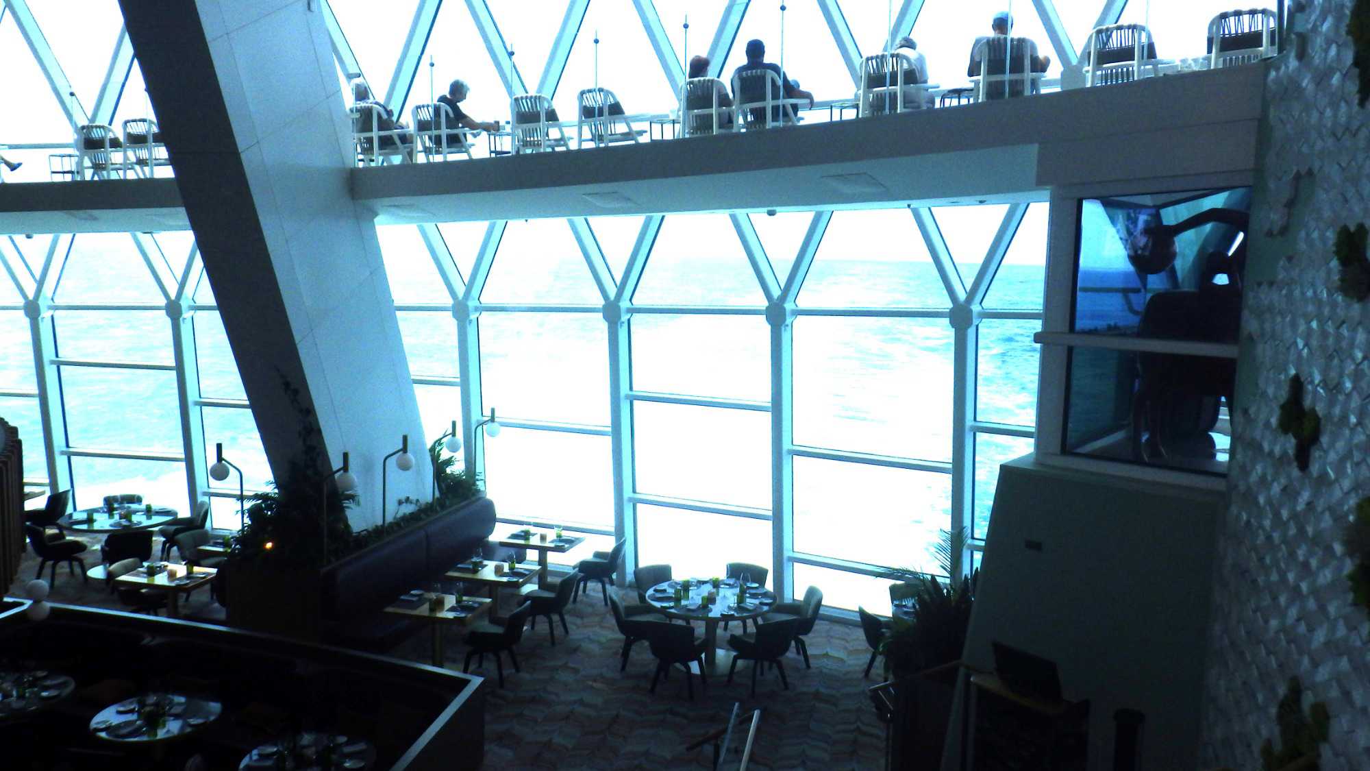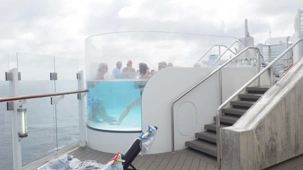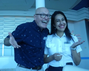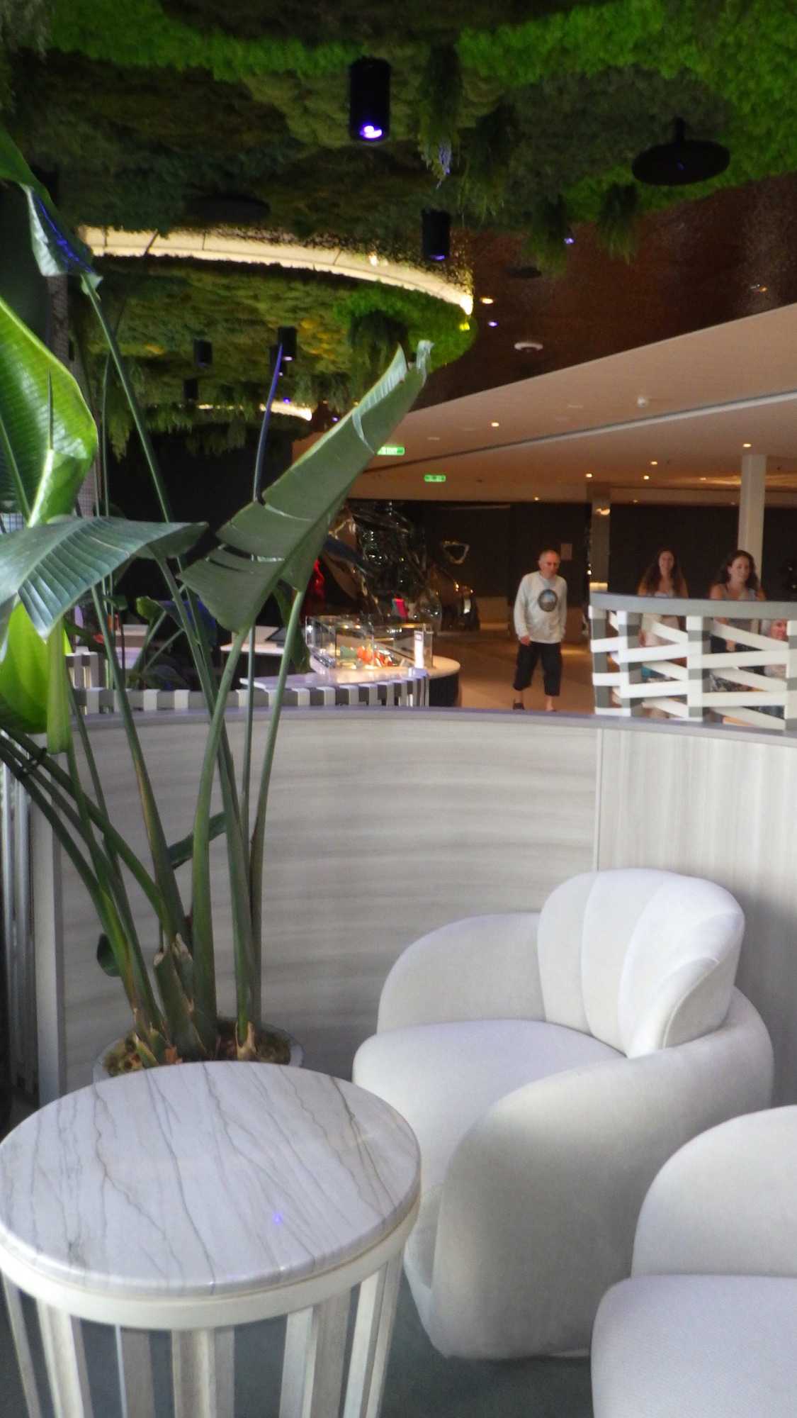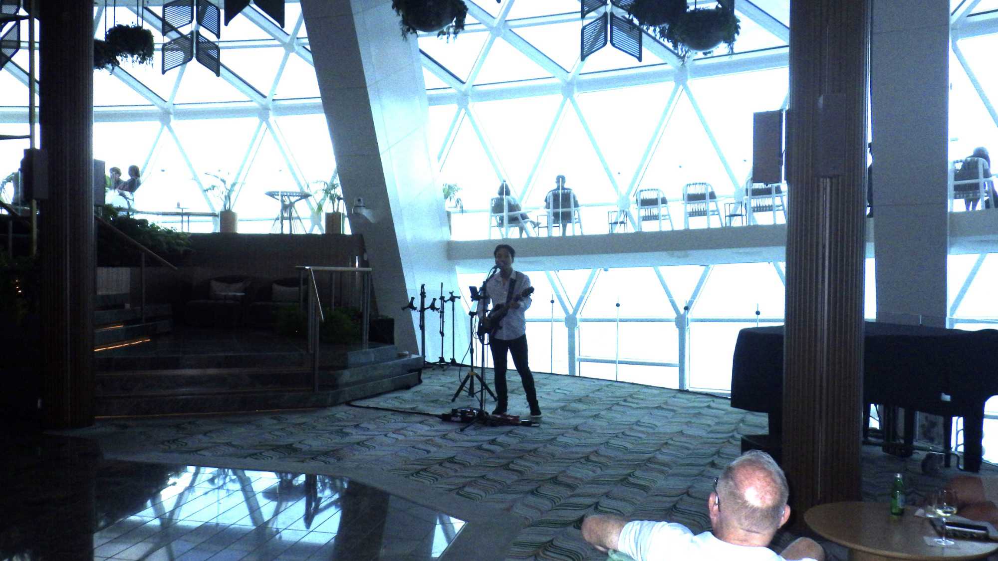 Je peux vous dire que ça fait un bien immense de pouvoir sortir dehors le matin pour respirer l’air du large à pleins poumons, devant un horizon qui s’étire à perte de vue et qui invite à l’introspection ou à la méditation sur notre pur bonheur d’être! Comme sur les navires de Celebrity, il y a du vrai gazon, je peux déambuler pieds nus et presque sentir la rosée du matin, un bonheur dont je ne me prive pas et qui fait du bien à l’âme. Oui, oui, je suis poète à mes heures!