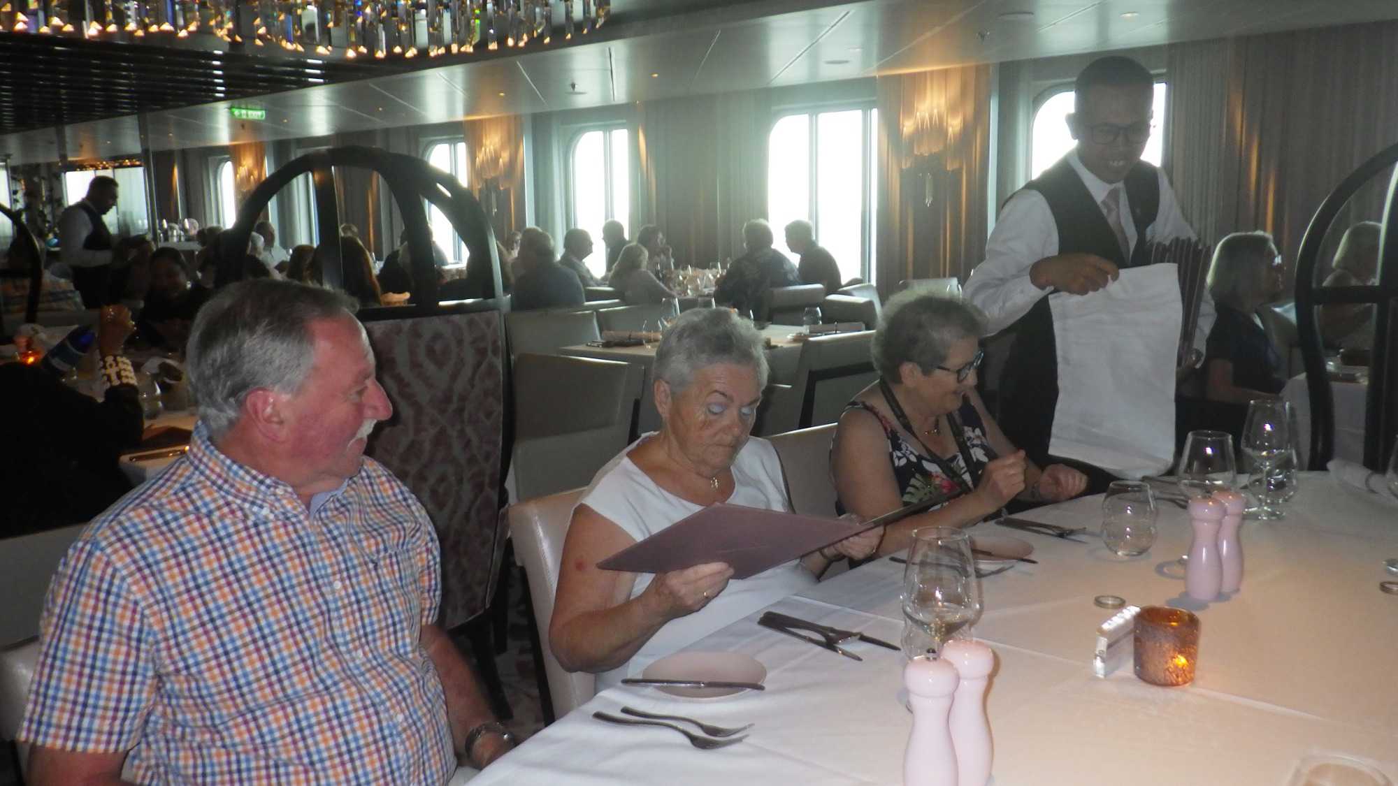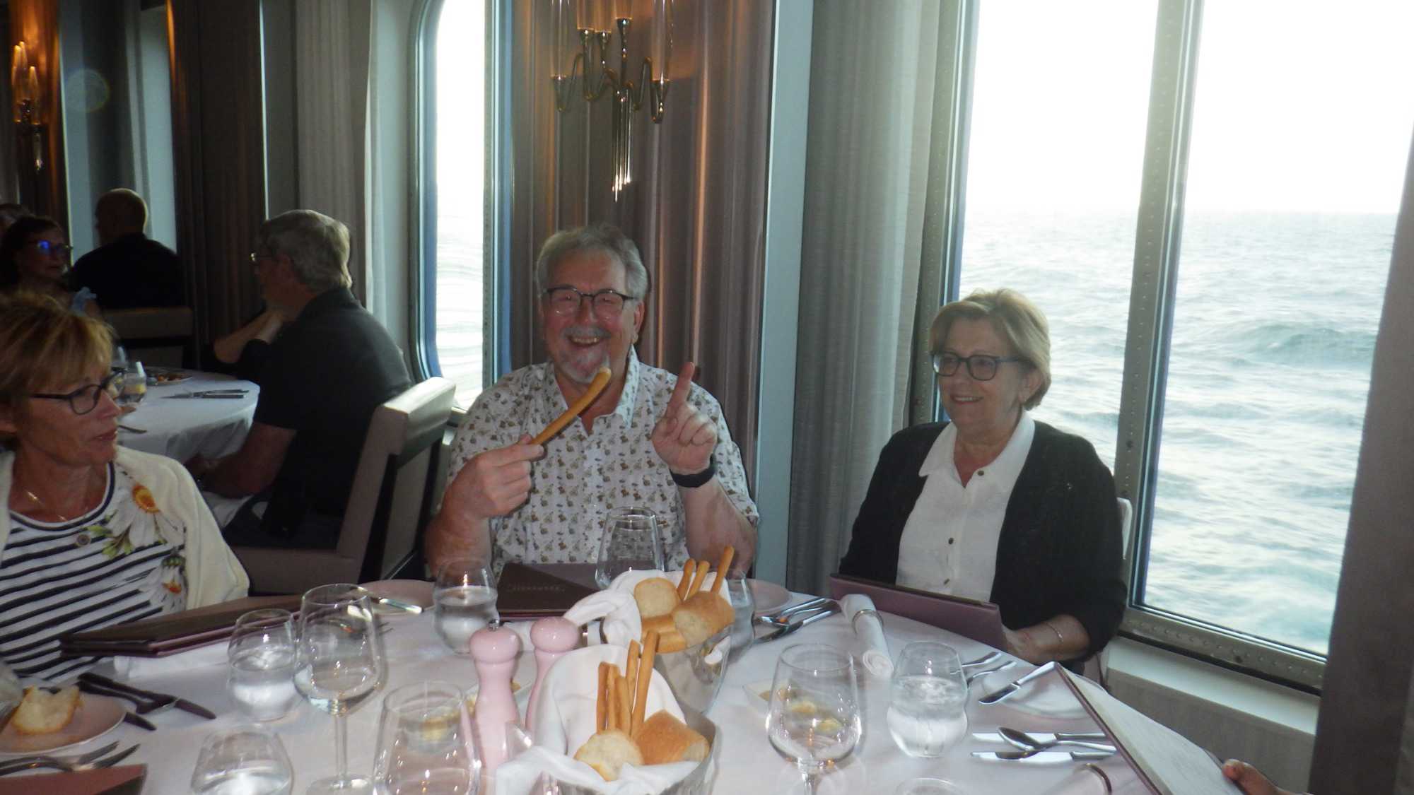 Aujourd’hui, nous passons une journée en mer sous un ciel magnifique, bleu et lumineux, avec un léger souffle d’air apaisant qui incite à la nonchalance sur des chaises longues au soleil ou qui éveille le désir de s’adonner à des loisirs estivaux. Les membres de notre groupe ne rencontrent aucune difficulté à savourer ces instants ensoleillés.