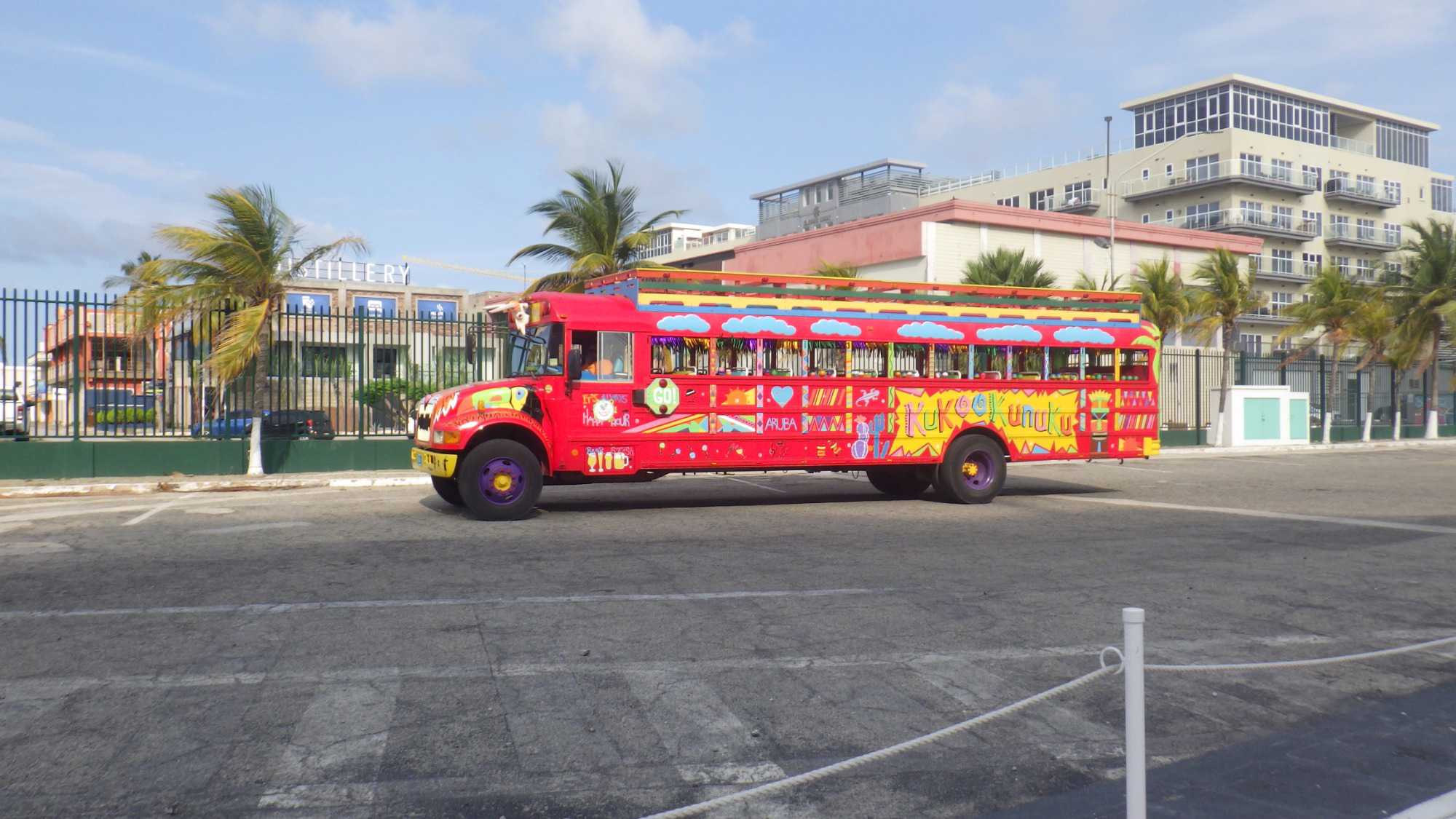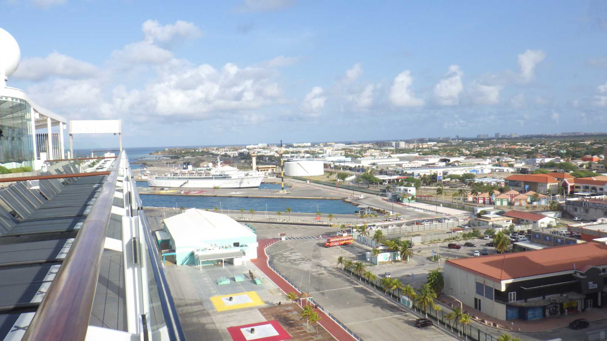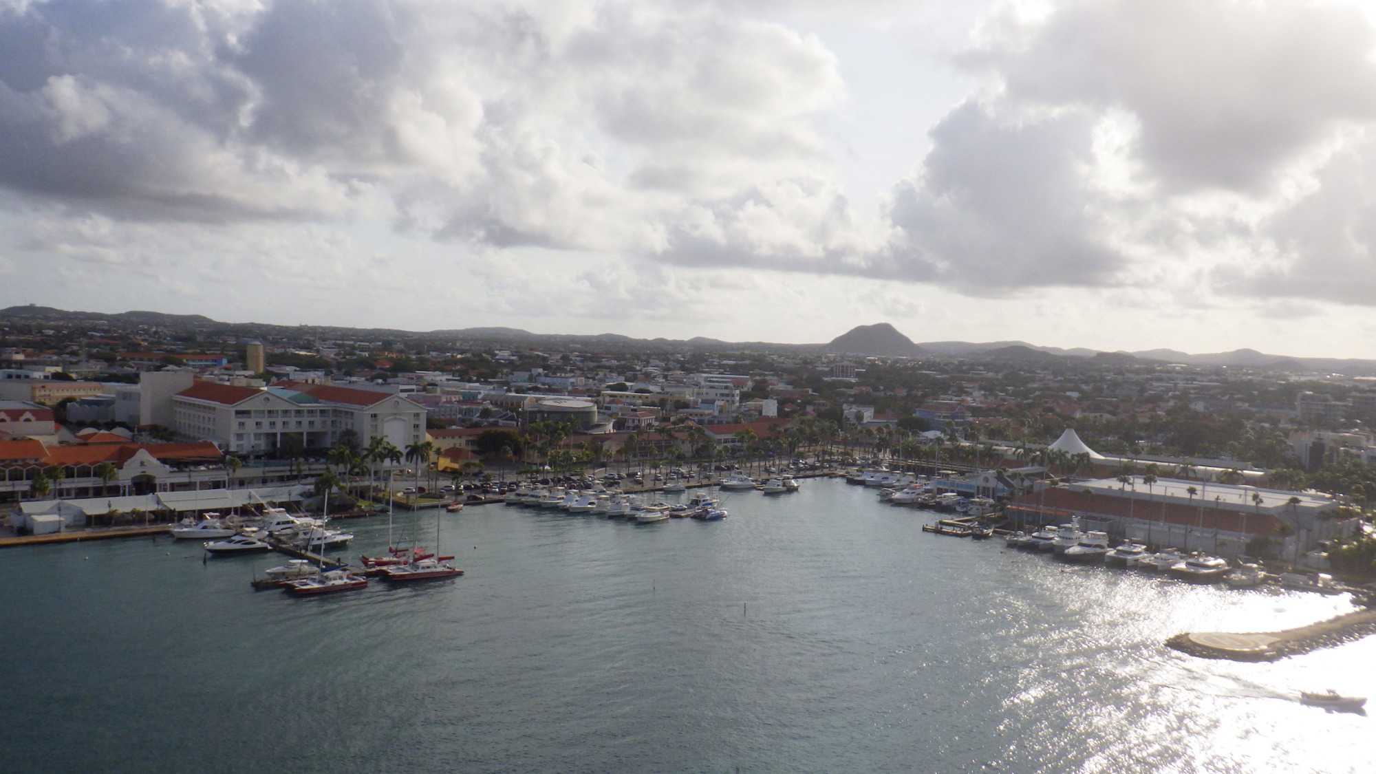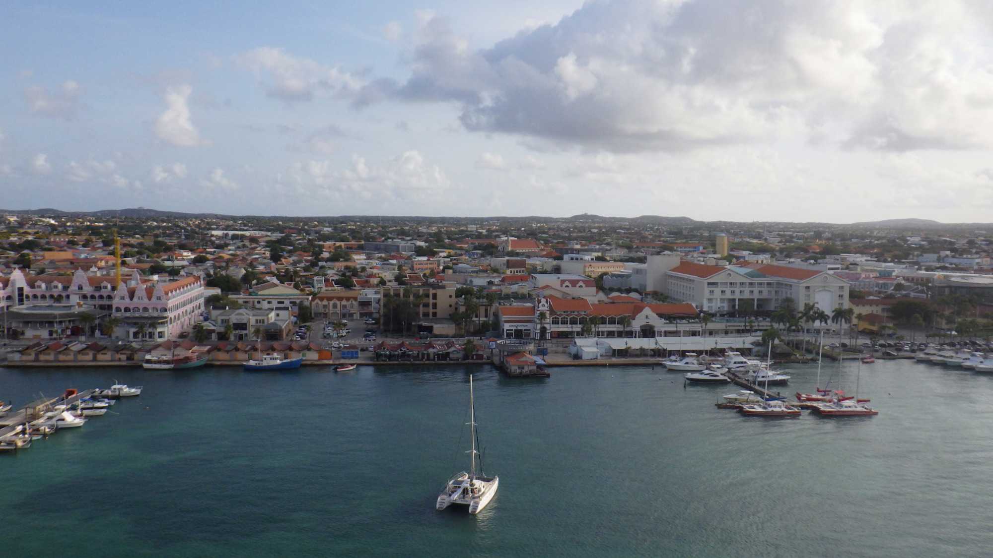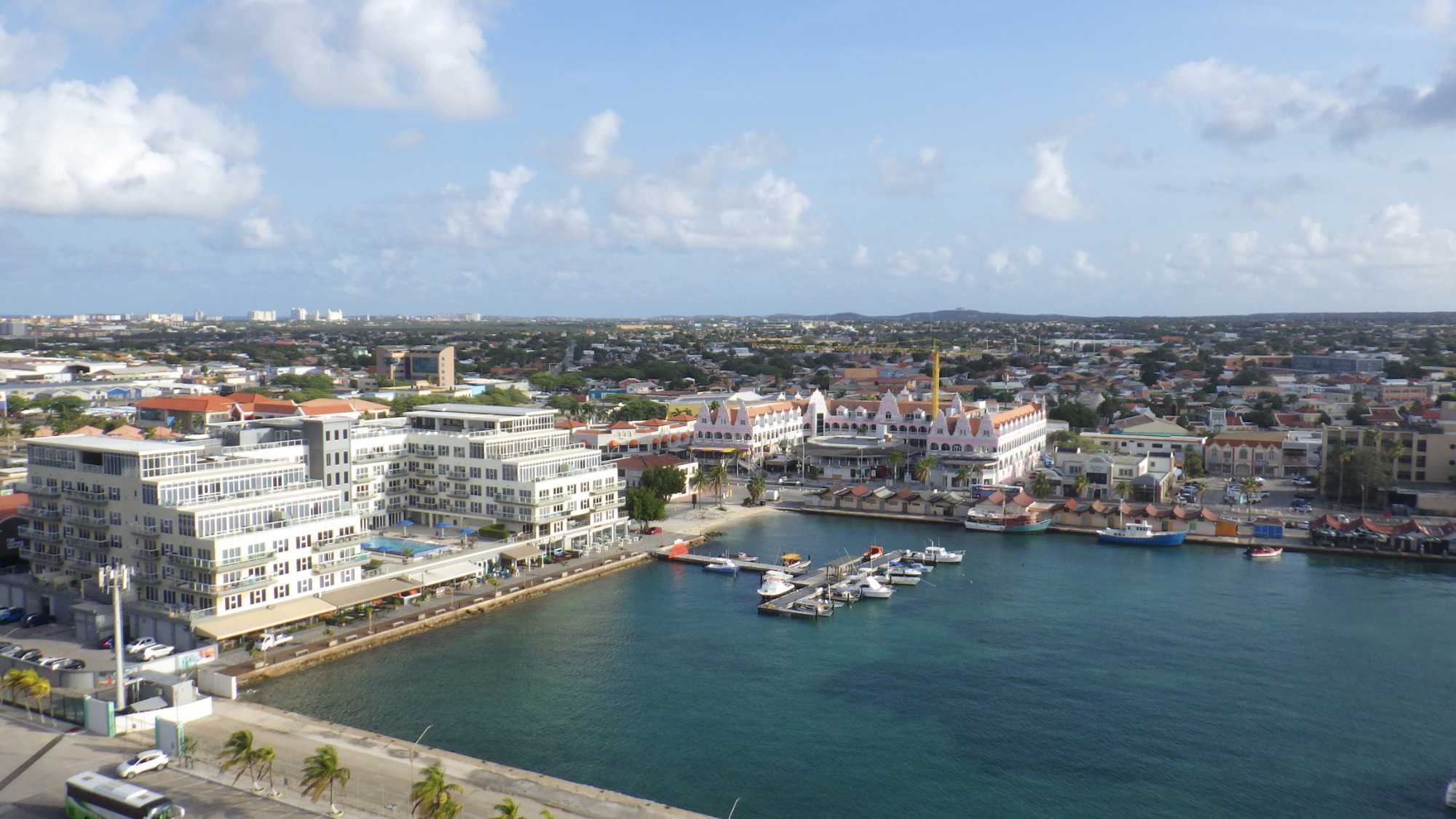 Le navire est accosté au port d’Oranjestad, la capitale d’Aruba, qui tire son nom de la couleur orange, symbole de la maison royale néerlandaise. Eh oui, nous voici dans une ile néerlandaise de la mer des Caraïbes, située au large des côtes du Venezuela et faisant partie des Petites Antilles.