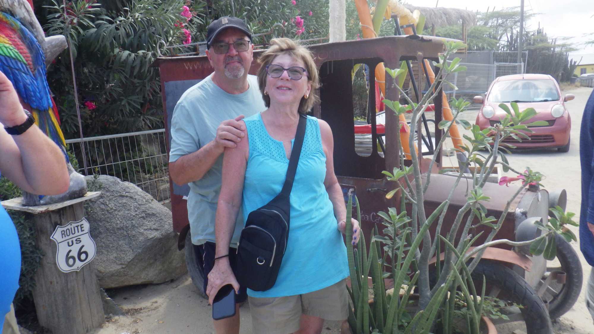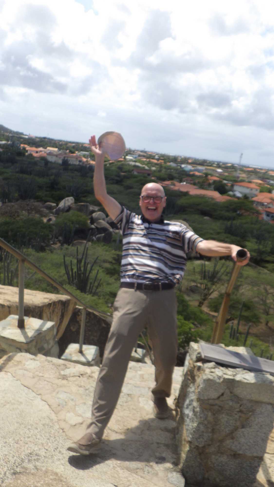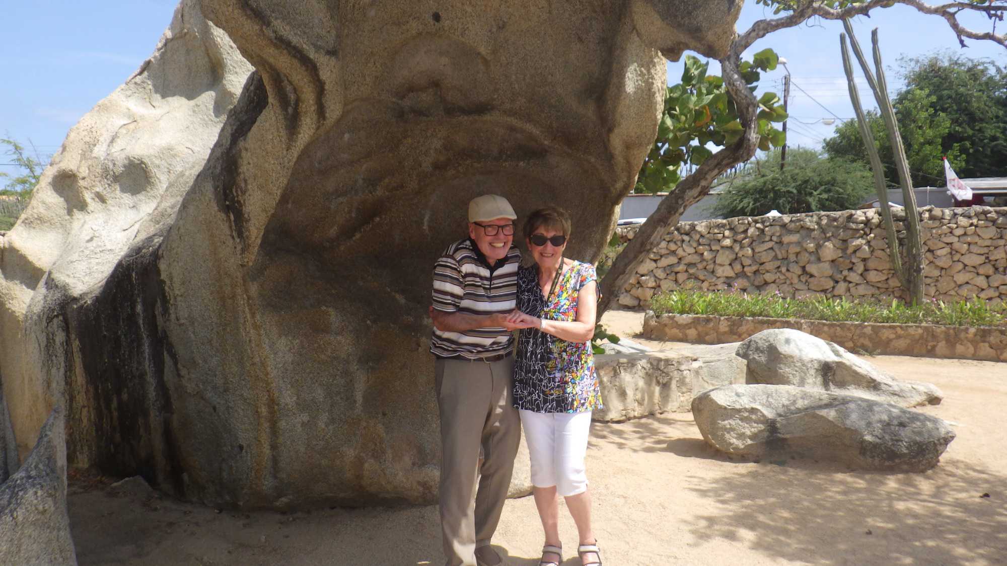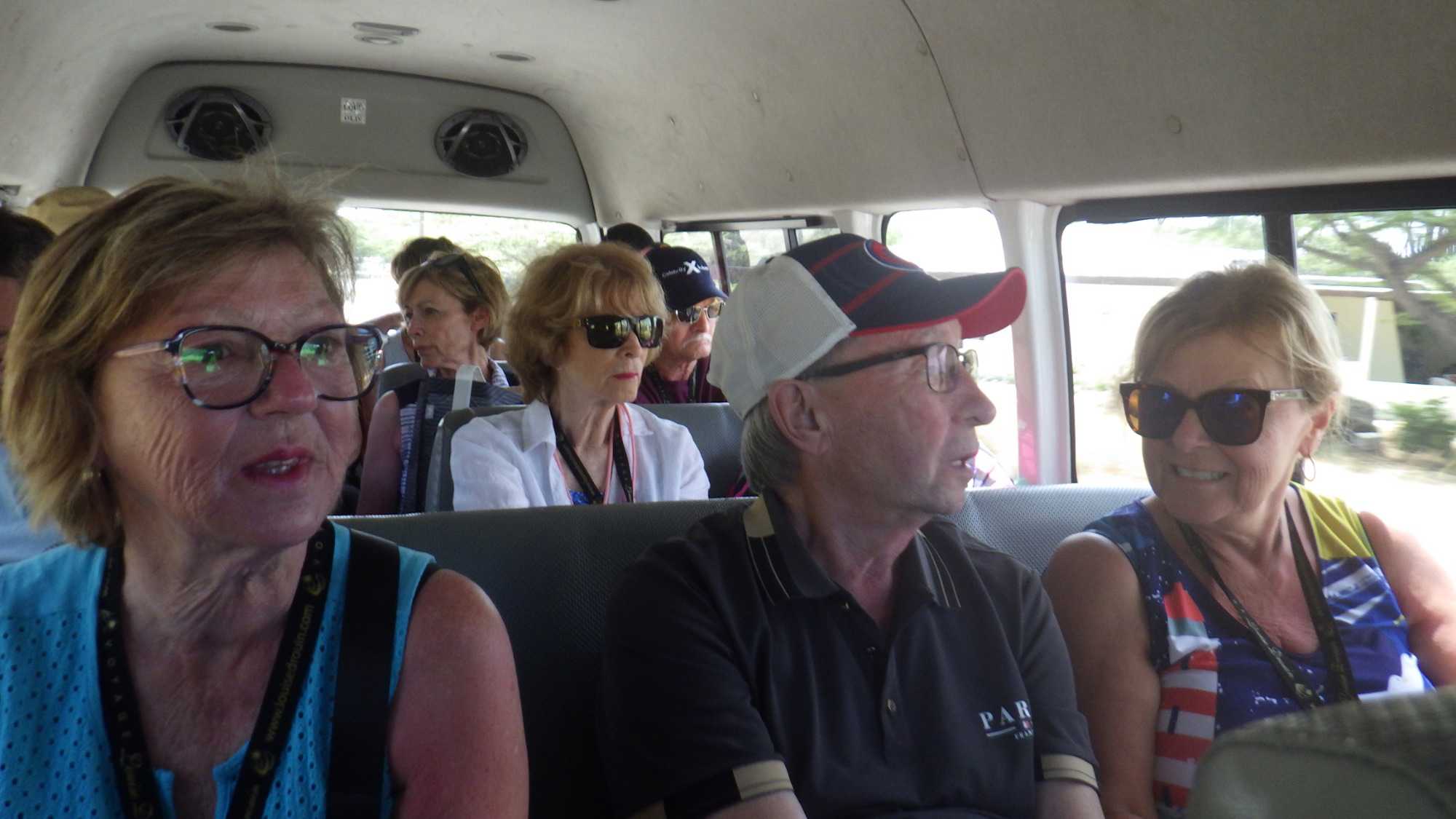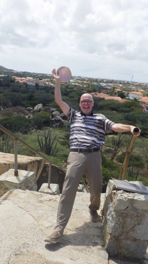 Après être sortis du port, nous avons rejoint notre guide, Ernest, une personne enthousiaste et enthousiasmante comme il n’y en a pas deux! Il nous déclare tout de go que nous sommes dans la meilleure ile des Caraïbes, l’ile Joyeuse par excellence, et il s’engage à faire en sorte que nous soyons toujours heureux durant toute notre visite. Je peux en effet vous affirmer qu’il a tenu son engagement haut la main, car nous n’avons eu aucun problème à garder notre bonne humeur toute la journée. Ernest, d’origine arubaine et hollandaise, est un personnage fascinant. Jugez-en par vous-mêmes. Pilote d’avion pendant 42 ans, il a surtout travaillé comme pilote de brousse en Guyane. Ensuite, pendant deux ans, il s’est retrouvé au Canada, dans la ville de Winnipeg, comme chauffeur de bus! Dès le début de la visite, nous sommes tous tombés sous son charme.