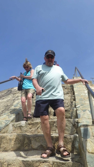 Nous continuons vers la pointe nord de l’ile pour rejoindre le California Lighthouse, d’où la vue sur la région et sur le bleu turquoise de la mer des Caraïbes est tout simplement saisissante, magistrale, éblouissante. Le cœur s’arrête et on est saisi de vertige par tant de beauté! Ouf! pour nous permettre de prolonger ces émotions fortes, nous sommes allés au restaurant italien juste à côté afin de profiter de la terrasse pour faire des photos. Ce côté de l’ile est inhabité et le bord de mer est splendide, cependant, il y fait extrêmement chaud… Crème et chapeau sont de mise!