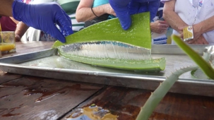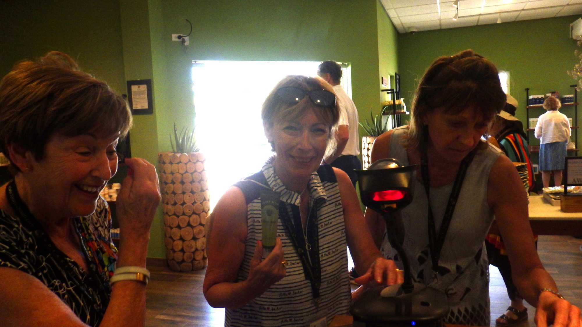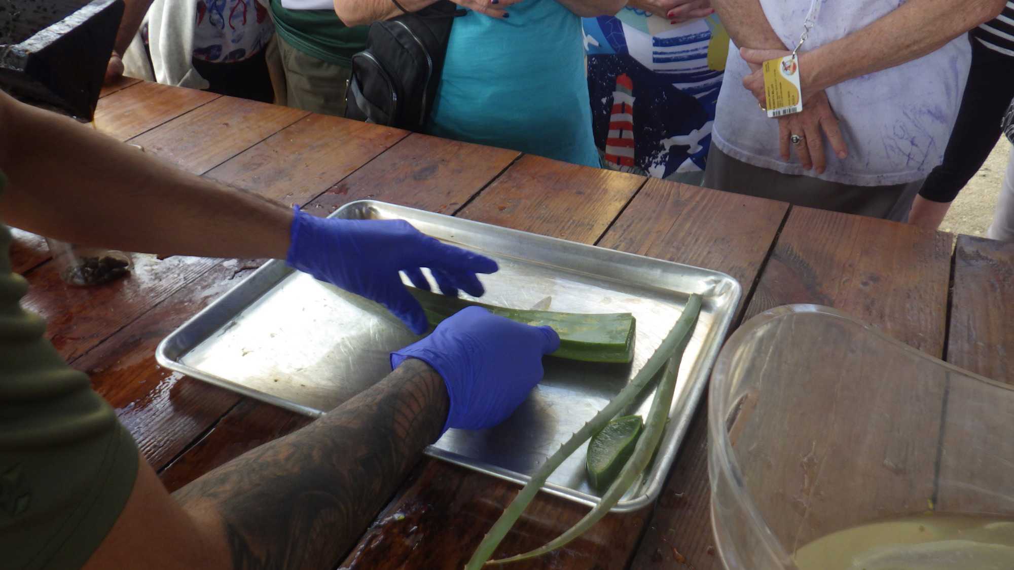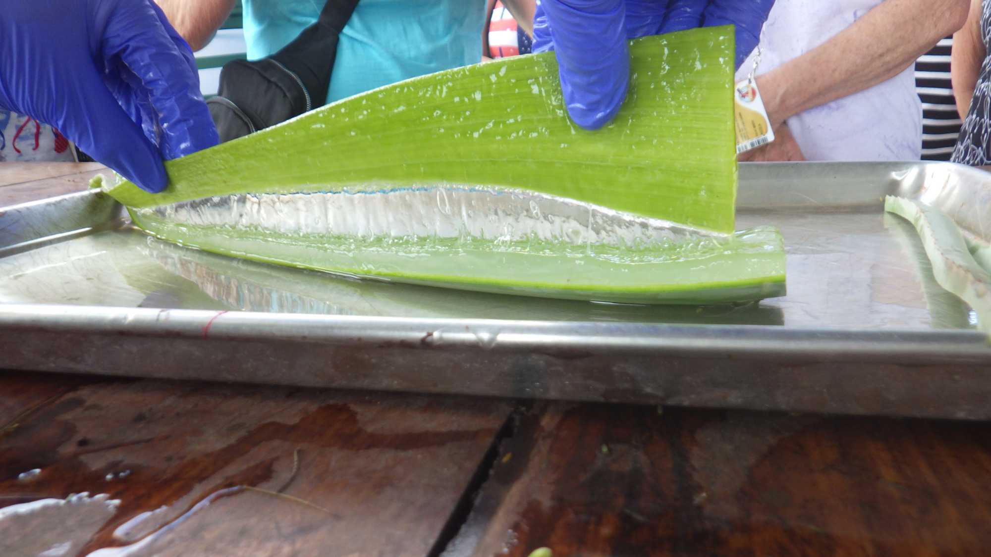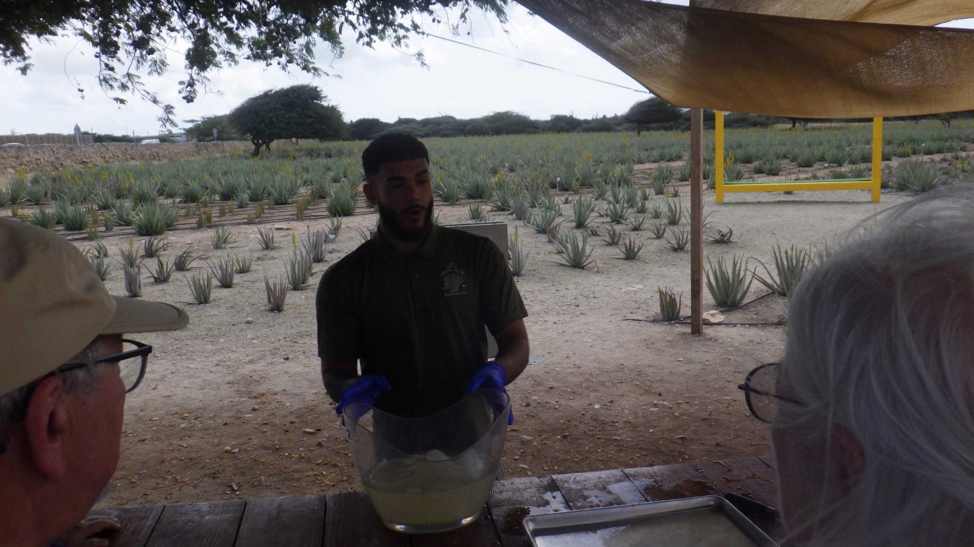 Ce matin, notre premier arrêt se fait à la plantation et à la fabrique d’aloès, de renommée internationale pour la qualité de ses produits. La visite guidée nous permet de découvrir les nombreuses propriétés médicinales de cette plante ainsi que les différentes étapes de transformation : découpe, extraction, lavage, centrifugation, salle de mixage, laboratoire et boutique. Une visite très intéressante avec un guide dynamique.