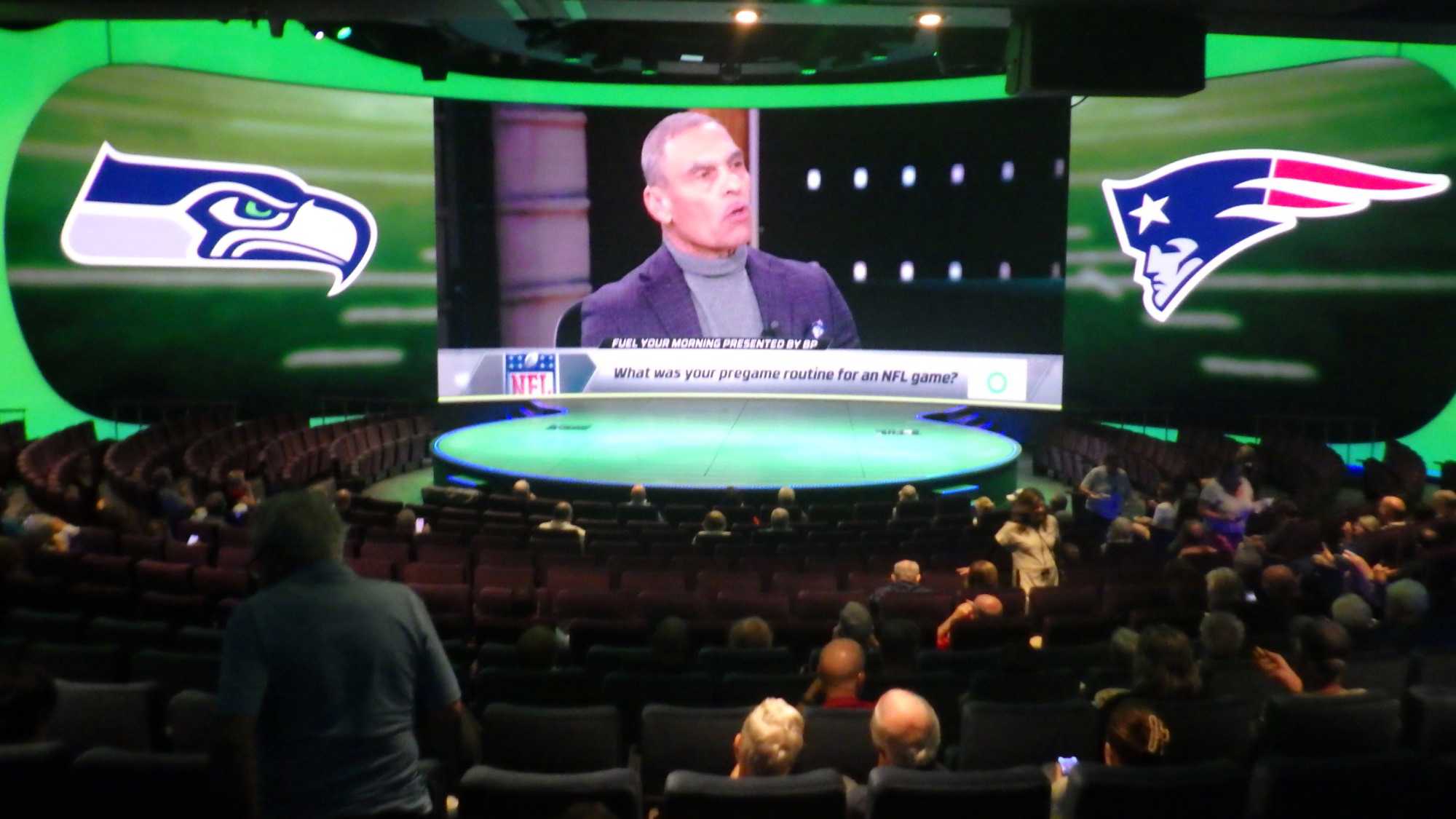 Nous sommes retournés au navire ravis et comblés par notre journée. Et cette journée était loin de se terminer! En soirée, nous avions, comme vous, la présentation du Super Bowl dans le théâtre bondé à pleine capacité, Seahawks contre Patriots, avec comme d’habitude à chaque Big Game, la bière, le vin, les ailes piquantes, les nachos, les frites, les hot-dogs, le gâteau pour les gagnants. Une chance qu’il n’y a qu’un Super Bowl par année, sinon on devrait garder un médecin de garde après chaque match, ouf! hi hi hi! Ce fut un bon match pour les fans de Seattle, les autres ont pleuré et crié en maudit, ouf! Et que dire du spectacle de la mi-temps avec Bad Bunny!