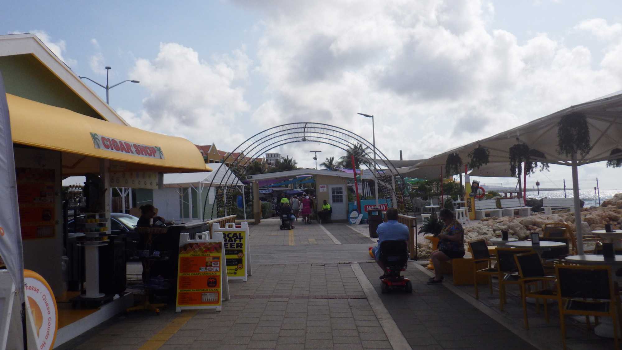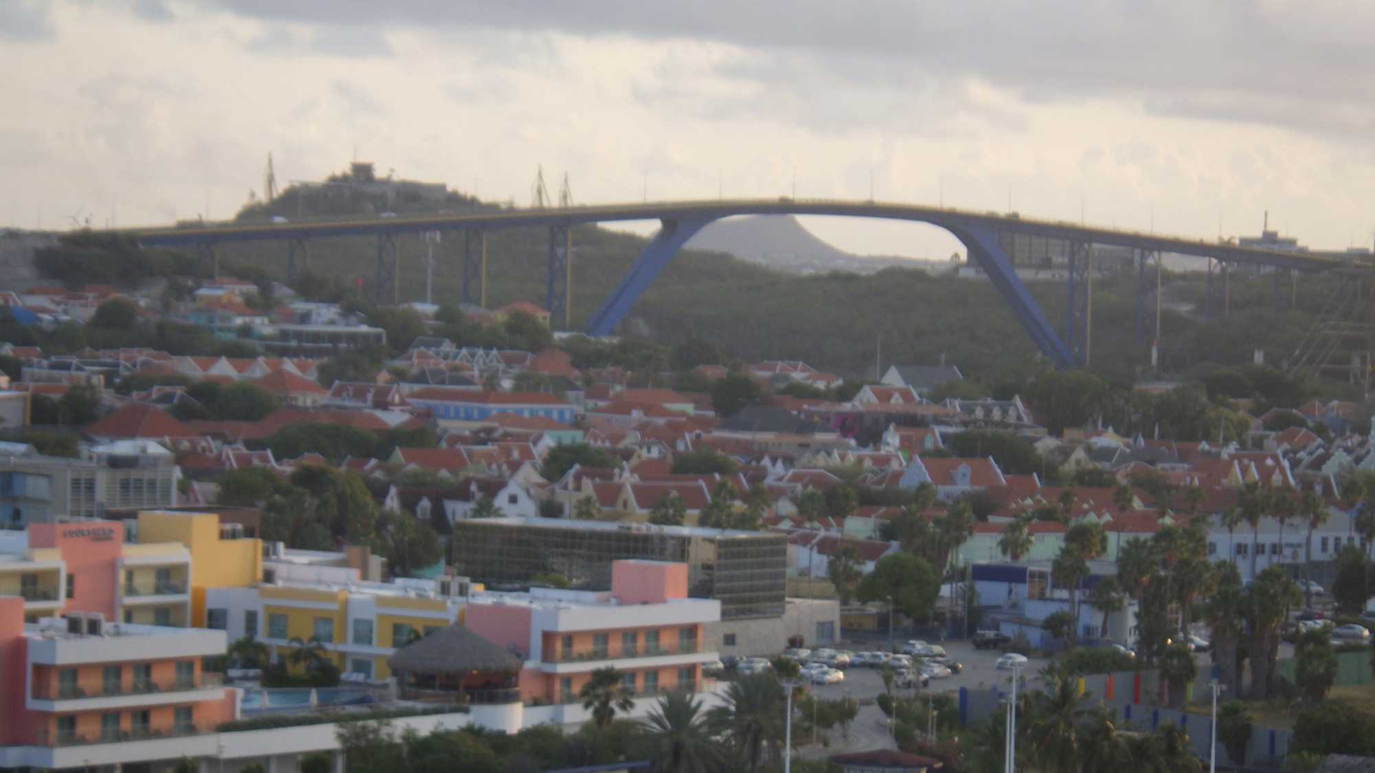 Du haut du grand pont surplombant le port, la vue serait spectaculaire : nous verrions notre navire Celebrity Ascent amarré, les bâtiments colorés, l’ancienne raffinerie de pétrole et le marché flottant où les produits arrivent directement du Venezuela. Comme l’île est trop aride pour l’agriculture, la plupart des denrées sont importées. Aujourd’hui, l’économie repose surtout sur le tourisme.