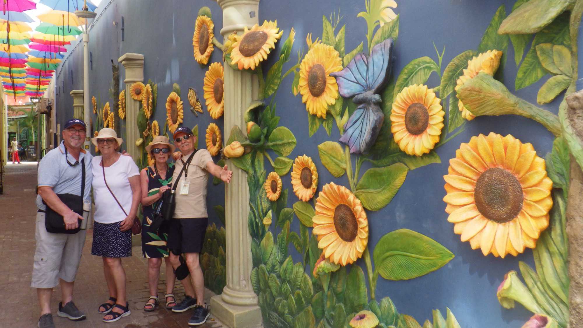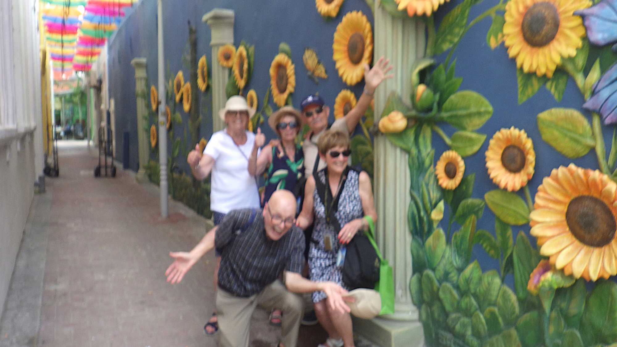Nous flânons dans le quartier de Punda, au cœur de la vieille ville. Les rues étroites regorgent de boutiques, de galeries et de maisons coloniales. Nous photographions les façades pastel, les fenêtres à volets, les enseignes artisanales. L’atmosphère est joyeuse, colorée et vivante. Les voyageurs sont contents et très heureux de ce tour d’orientation.
