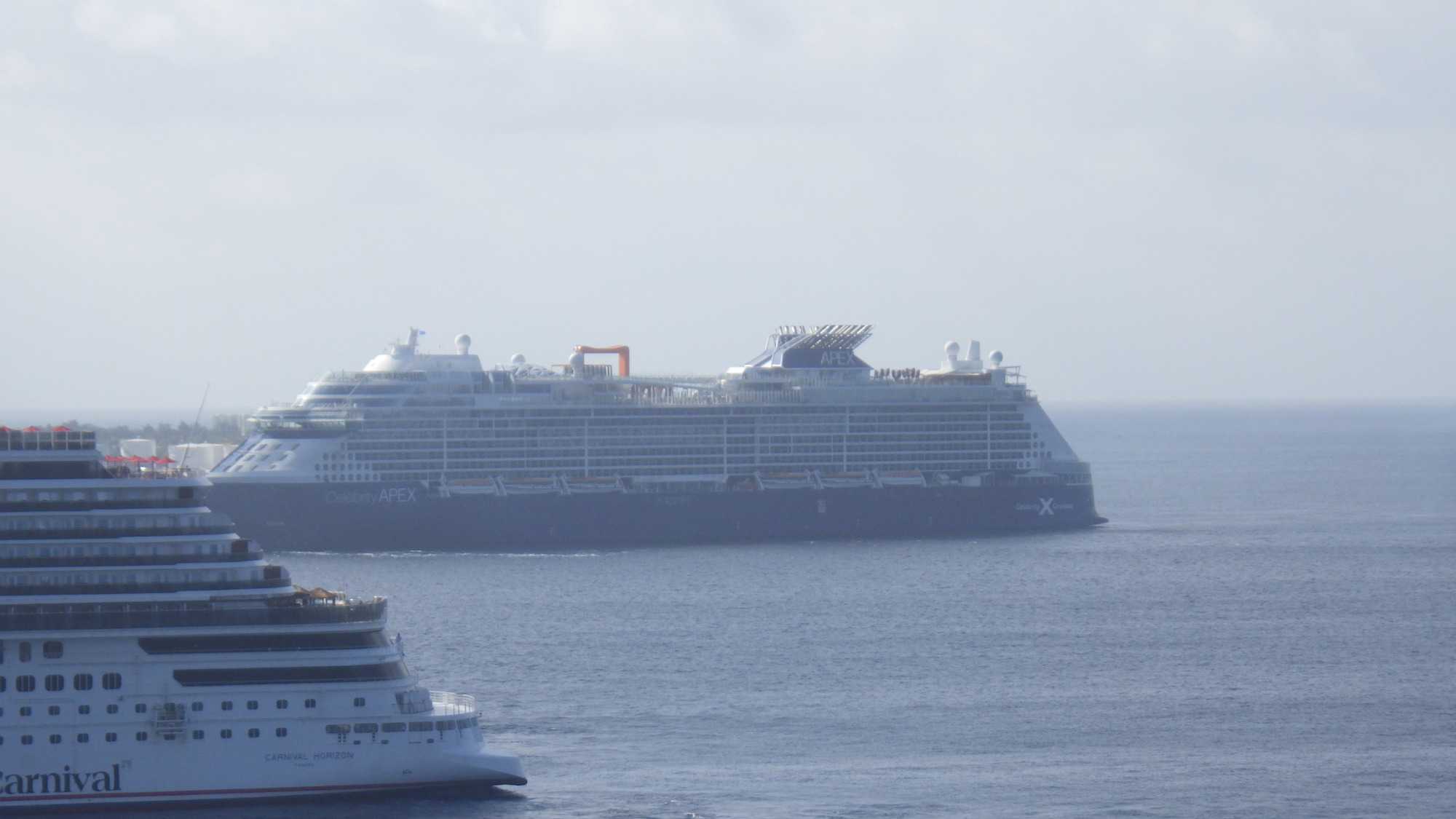 La journée a bien commencé, déjà, sur le pont du navire, nous voyons la ville au loin ainsi que trois autres navires autour de nous en attente de débarquement. Comme c’est la dernière partie du voyage, toutes et tous veulent en profiter au max et l’offre d’activités est au rendez-vous. Certaines personnes choisissent d’aller nager avec les raies; d’autres iront nager avec des tortues géantes et plusieurs me suivront pour une excursion dans la ville.