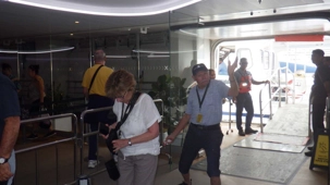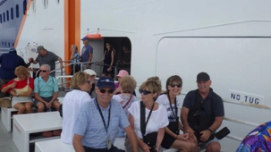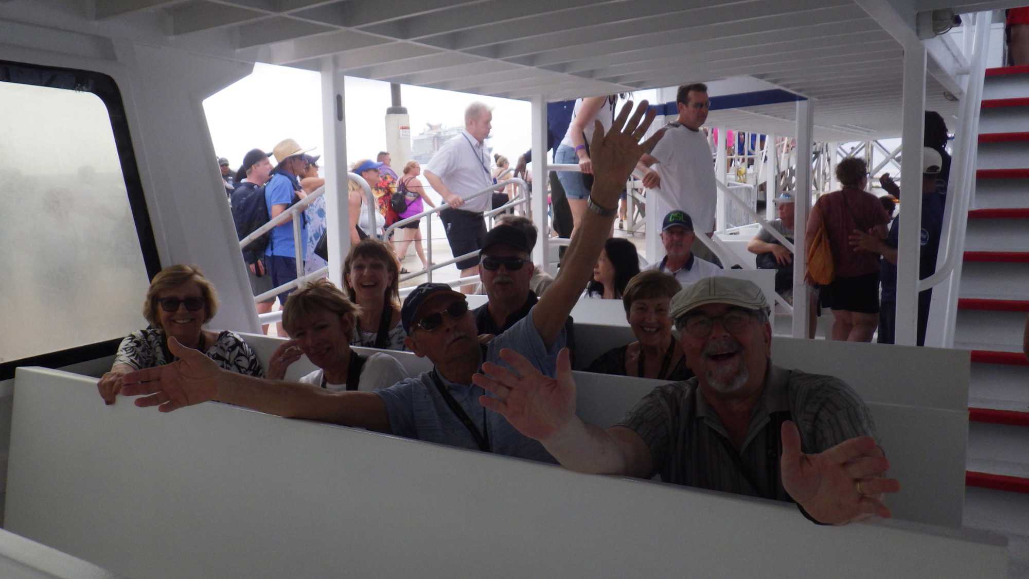 Lorsque la navette a quitté le navire pour glisser sur l’eau turquoise, j’ai senti l’énergie du groupe monter, plusieurs en étaient à leur première expérience de navettes. Le vent chaud, et oups! quelques gouttes de pluie à travers les nuages nous surprennent et, au loin, les couleurs vives de la capitale attirent l’œil.