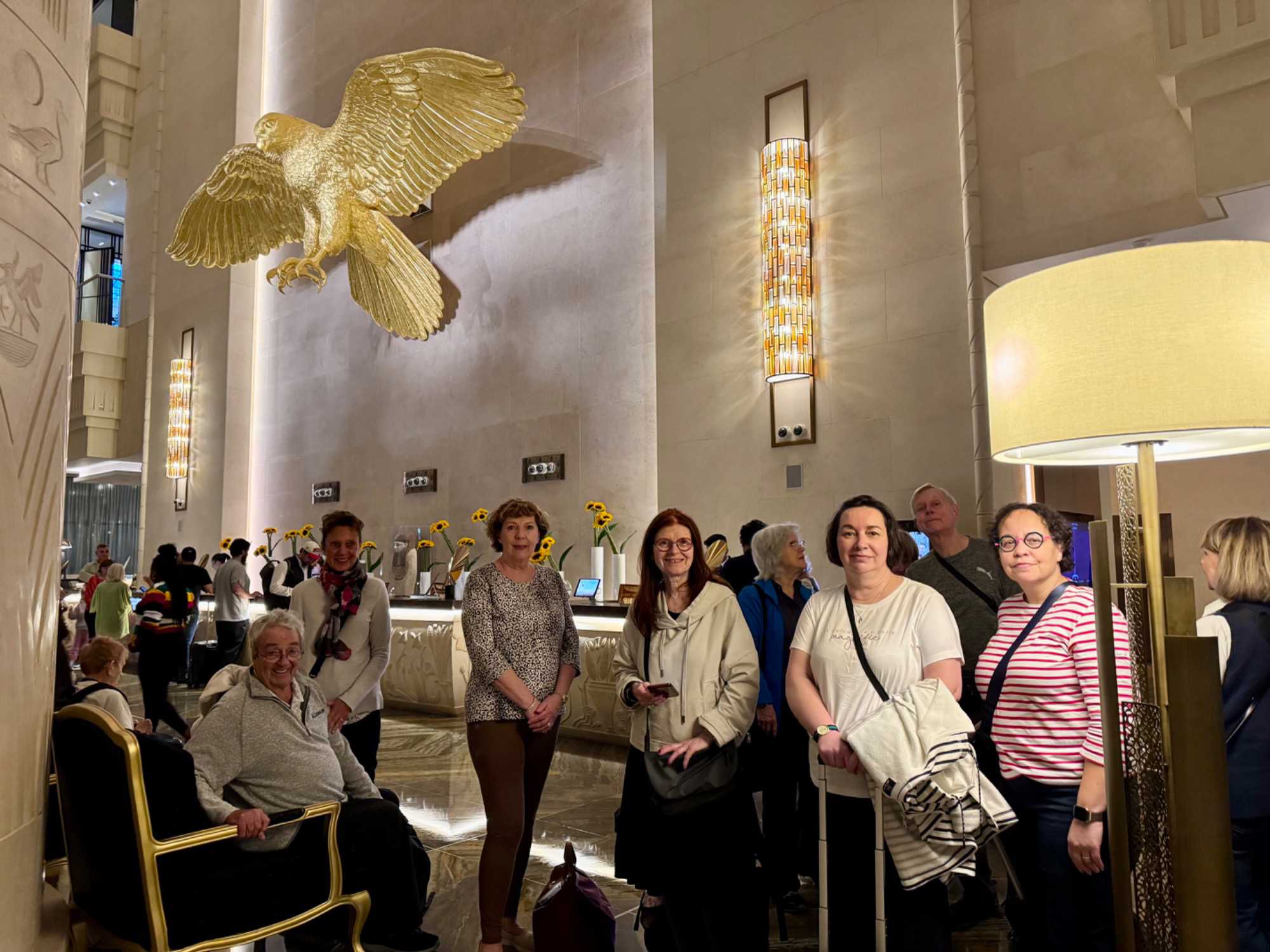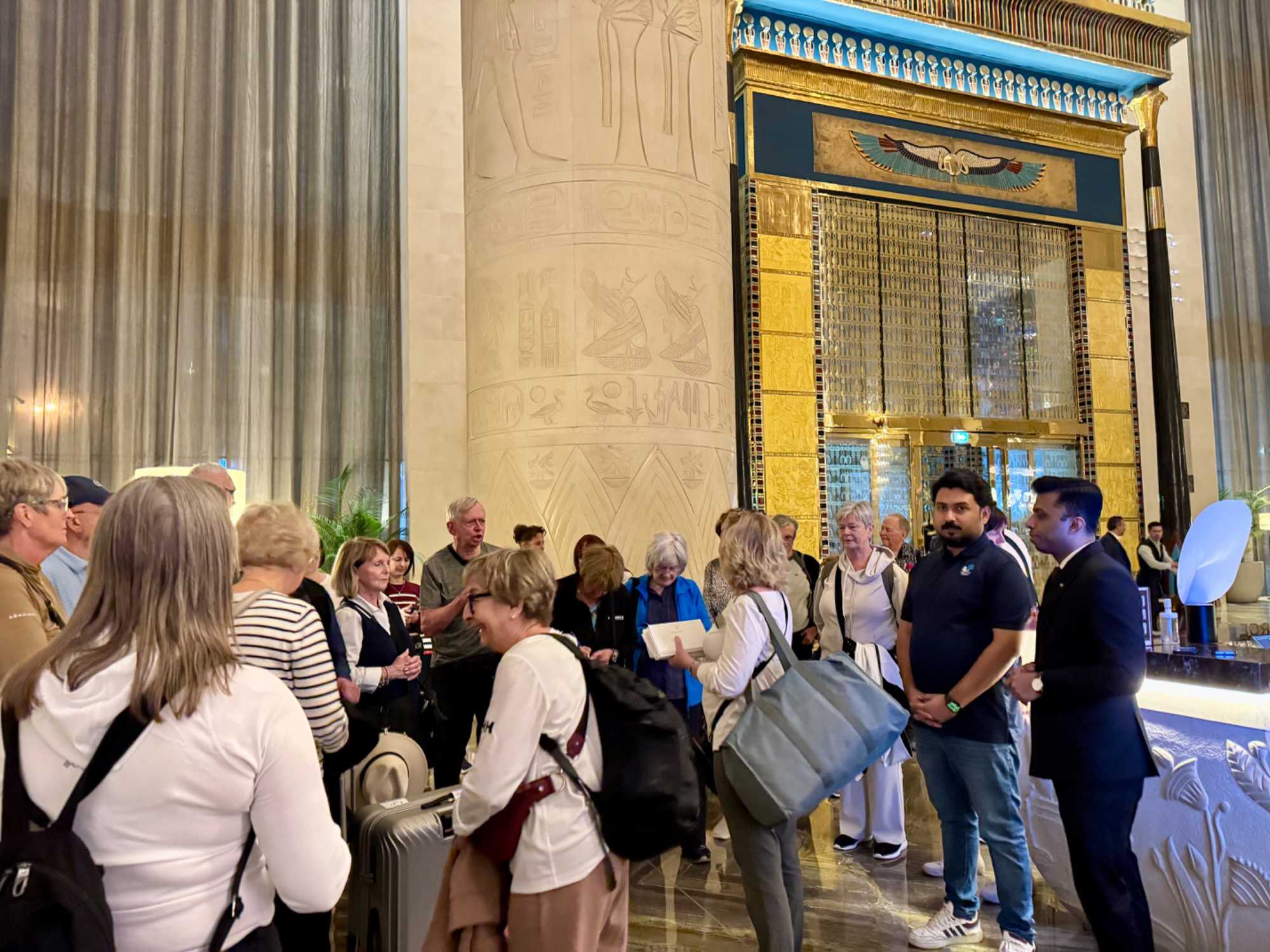 À l’hôtel, l’installation dans nos luxueuses chambres se fait dans le calme et le confort. Chacun prend le temps de s’installer, de se rafraîchir et de reprendre tranquillement ses repères après ce long voyage. La soirée se déroule sans programme officiel, laissant place au repos et à la détente, essentiels pour bien débuter les journées à venir.