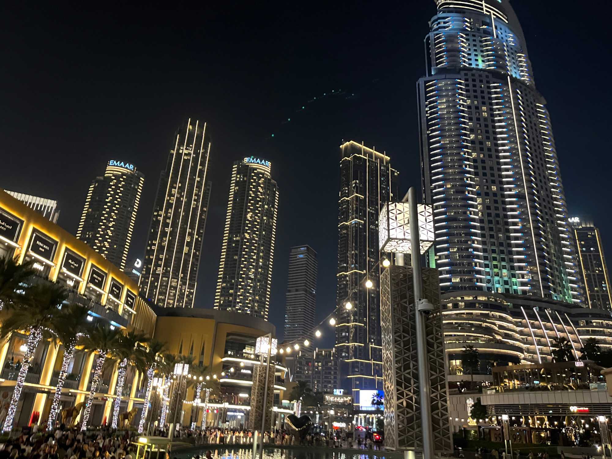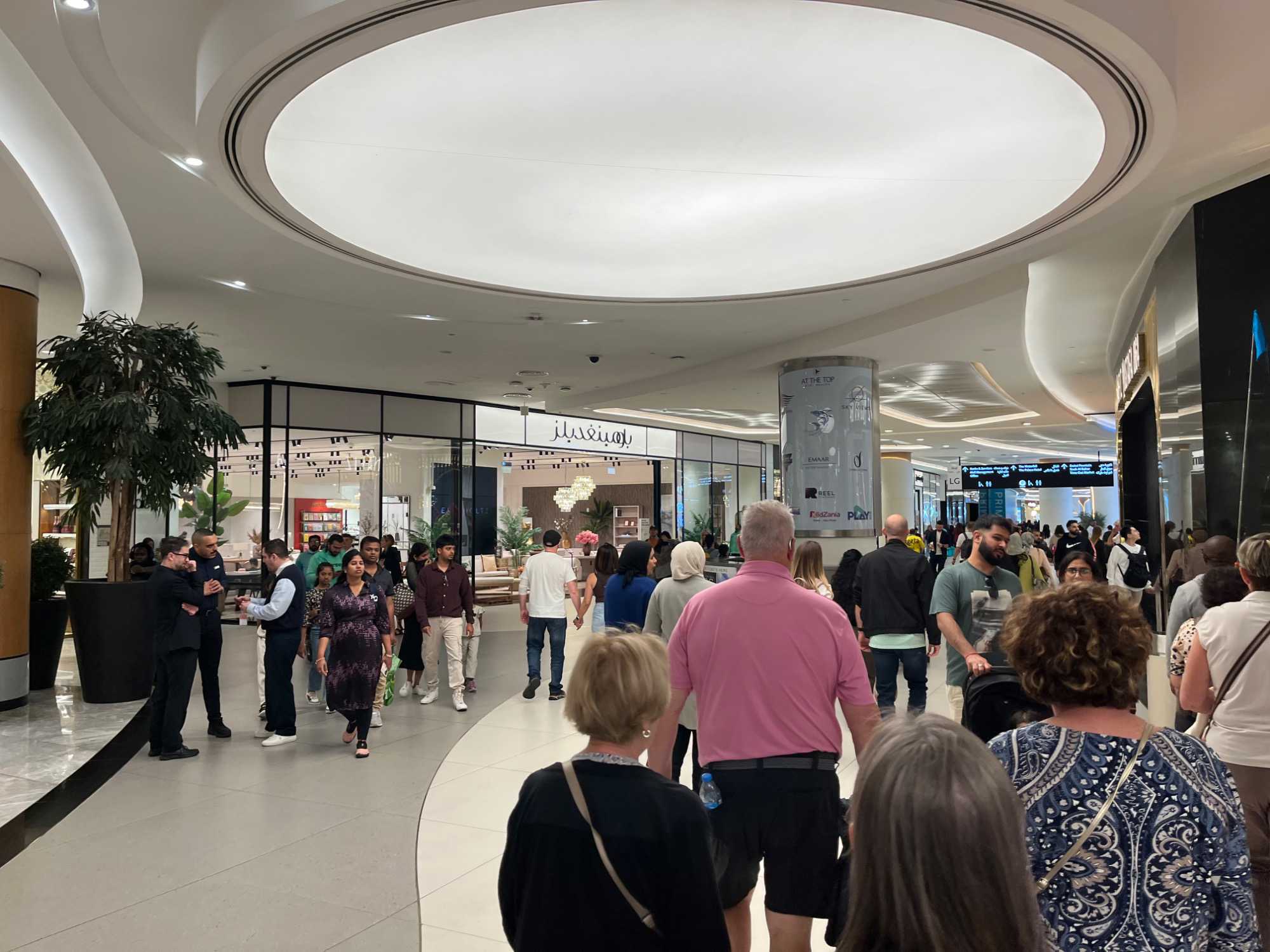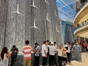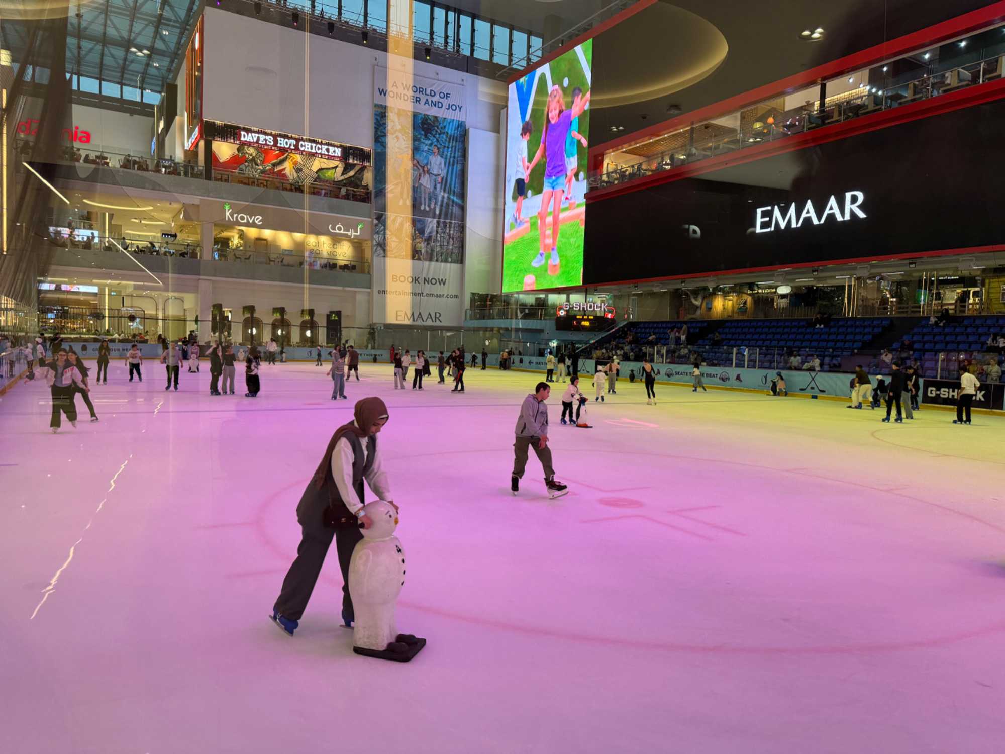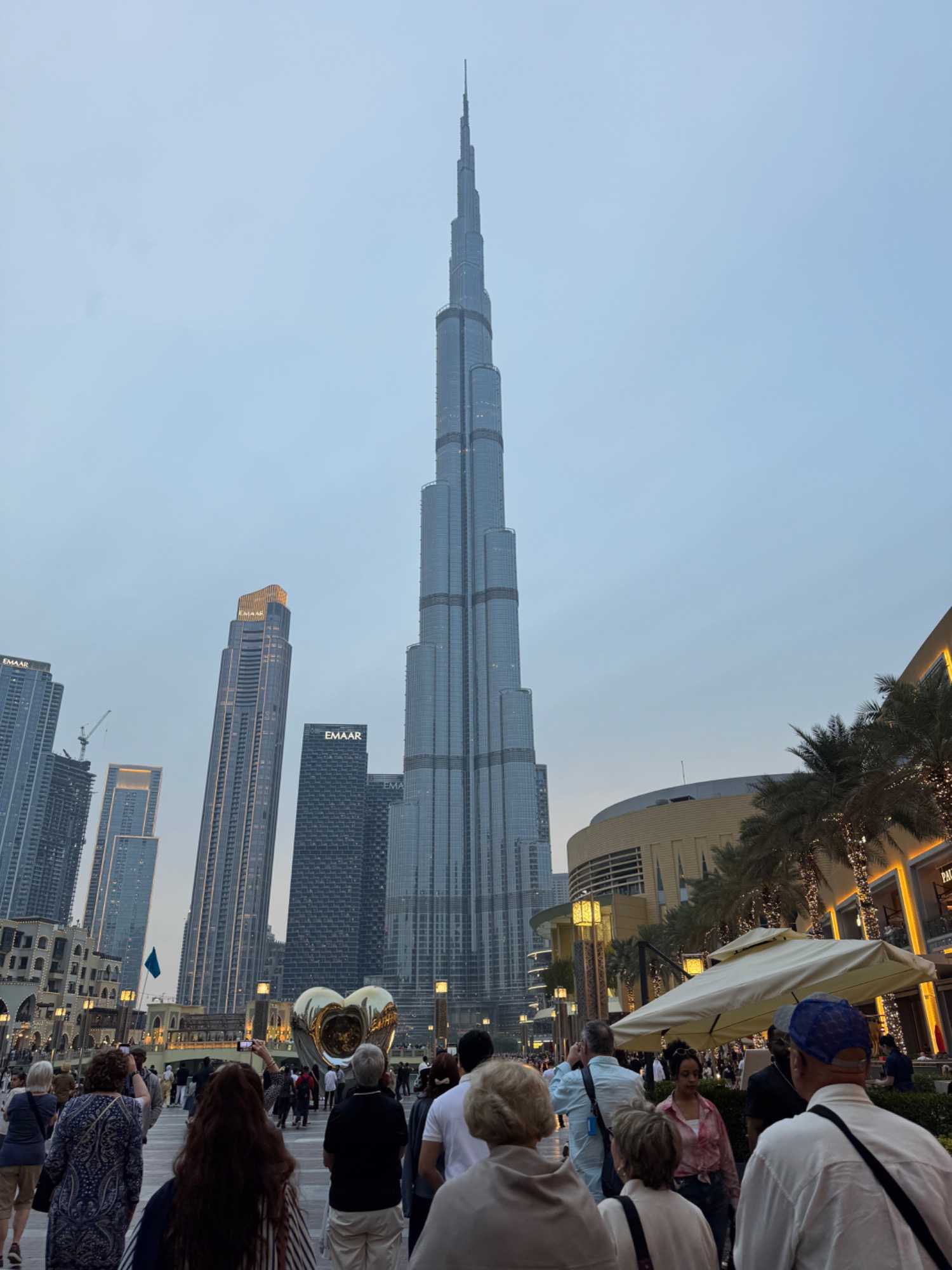 En fin d’après-midi, nous repartons vers le Dubaï Mall, souvent cité comme le plus grand centre commercial au monde par sa superficie d’environ 1,1 million de mètres carrés ! Achille nous mentionne que c’est la destination de shopping et de loisirs la plus visitée au monde accueillant plus de 100 millions de visiteurs par an. On s’arrête quelques minutes pour y voir l’aquarium et la patinoire intérieure.