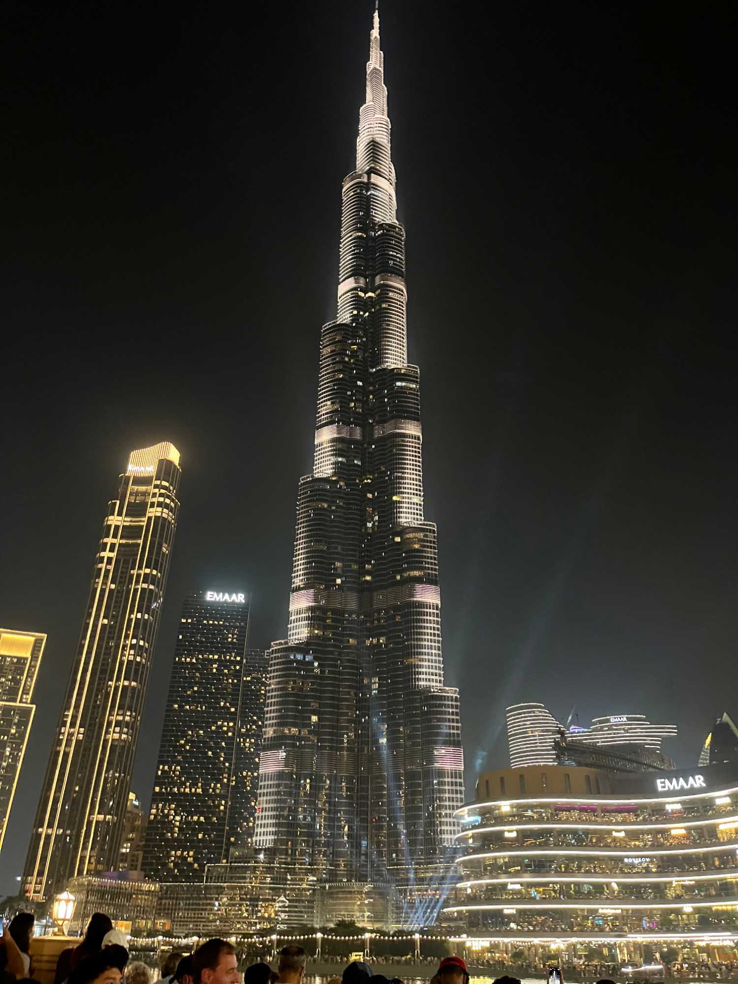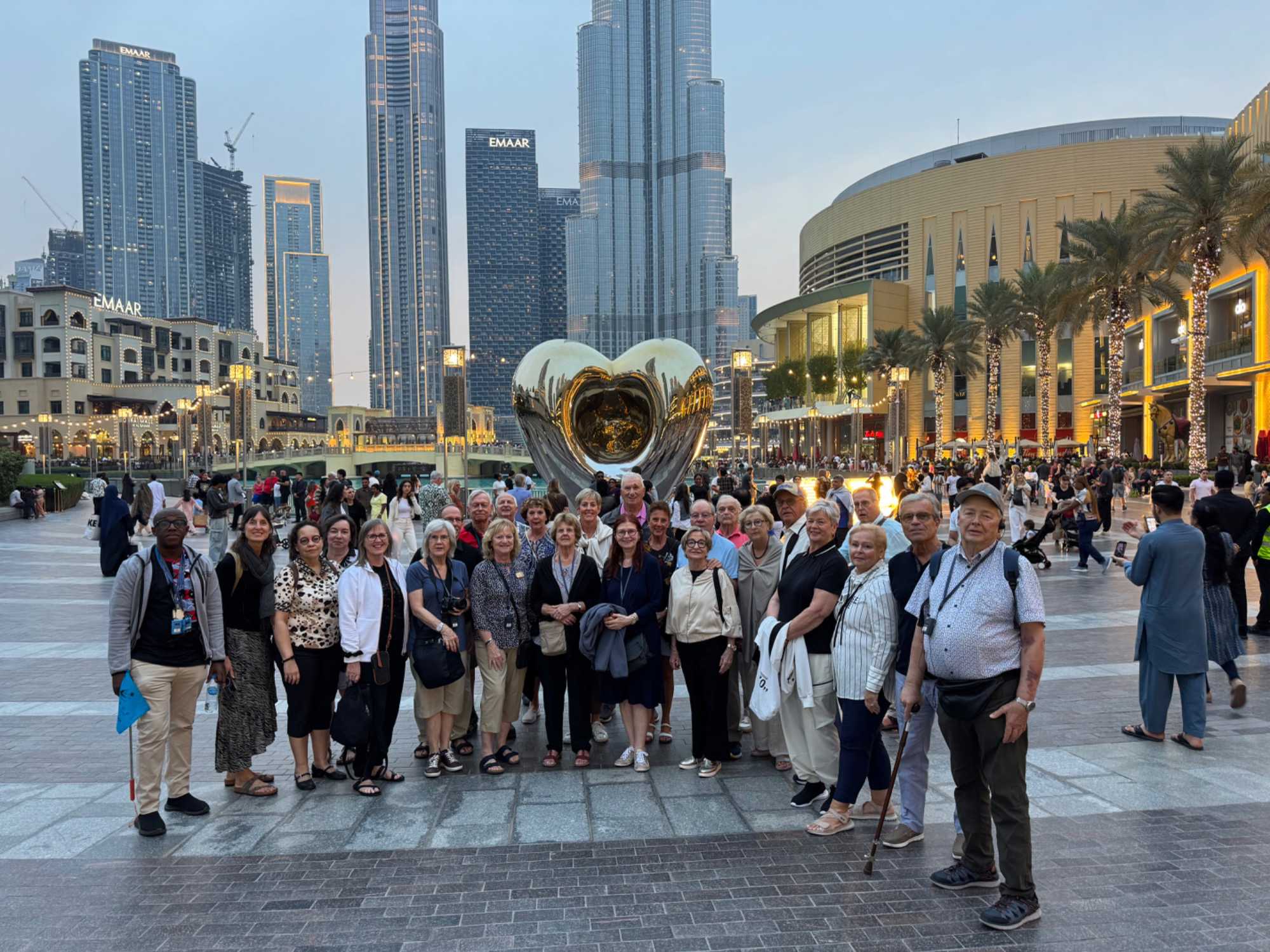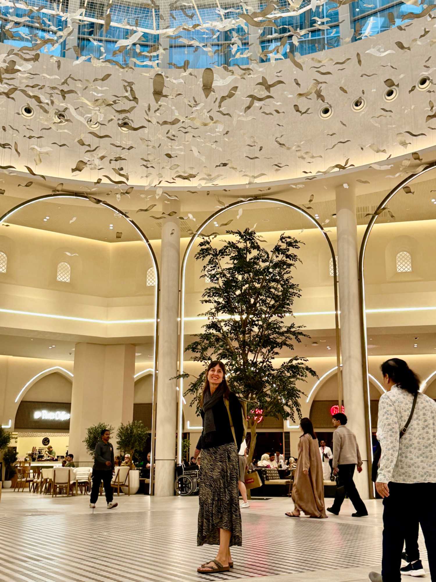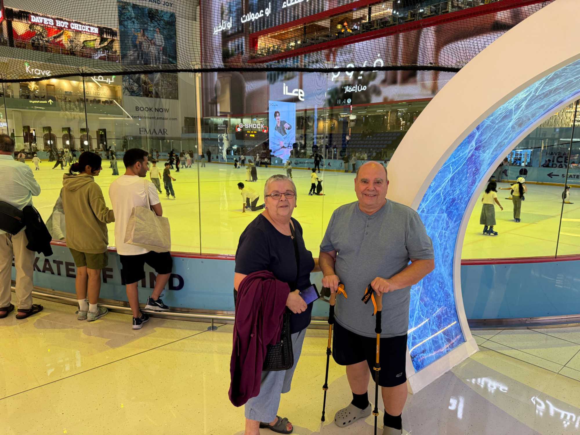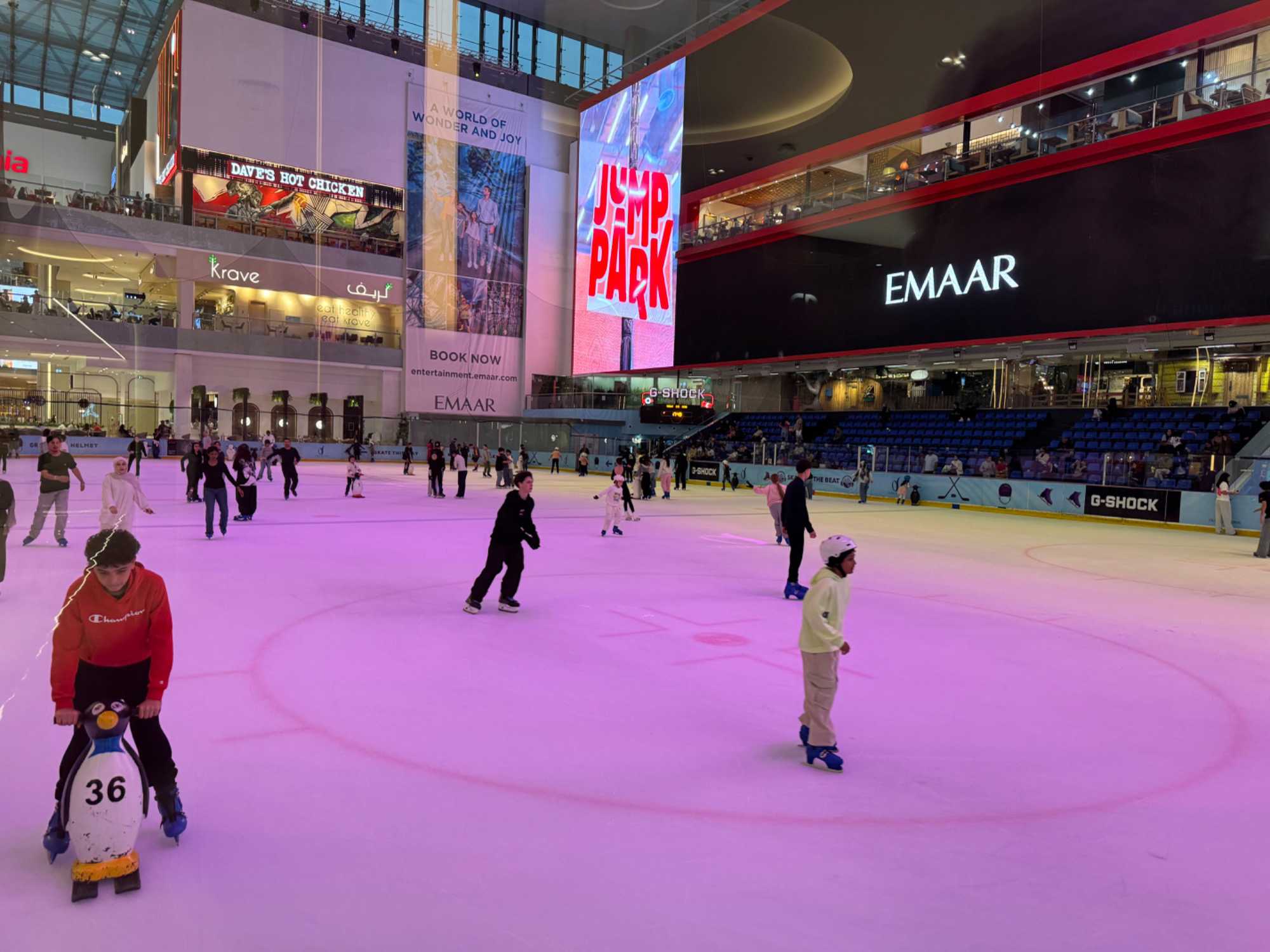 En fin d’après-midi, nous repartons vers le Dubaï Mall, souvent cité comme le plus grand centre commercial au monde par sa superficie d’environ 1,1 million de mètres carrés ! Achille nous mentionne que c’est la destination de shopping et de loisirs la plus visitée au monde accueillant plus de 100 millions de visiteurs par an. On s’arrête quelques minutes pour y voir l’aquarium et la patinoire intérieure.