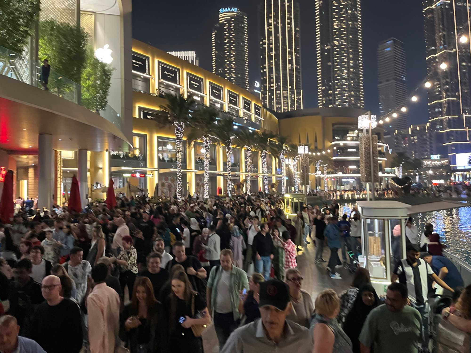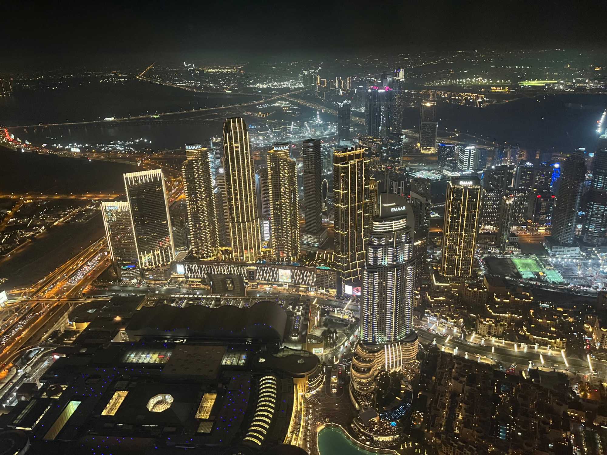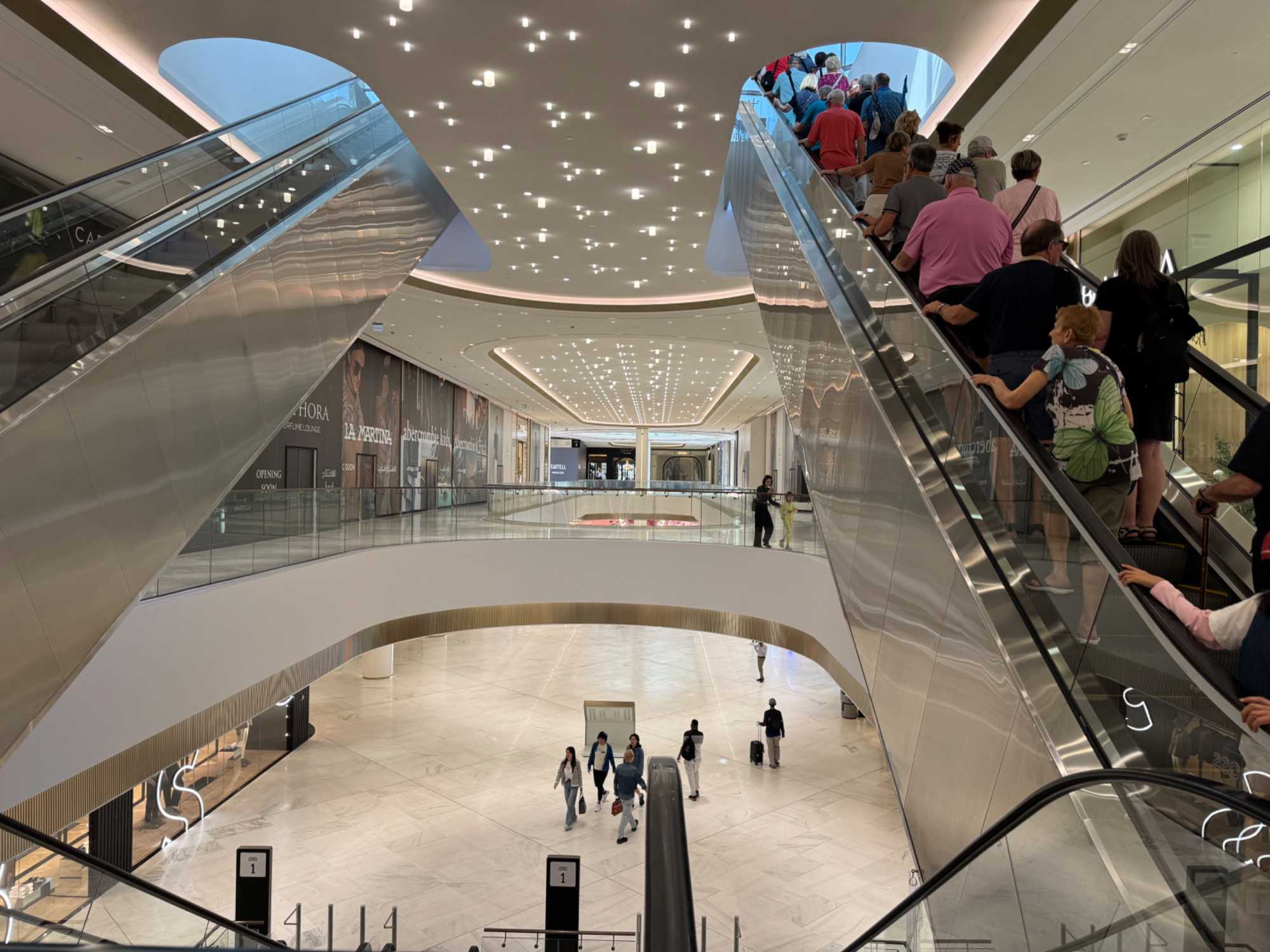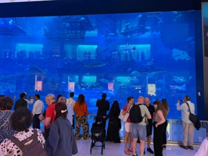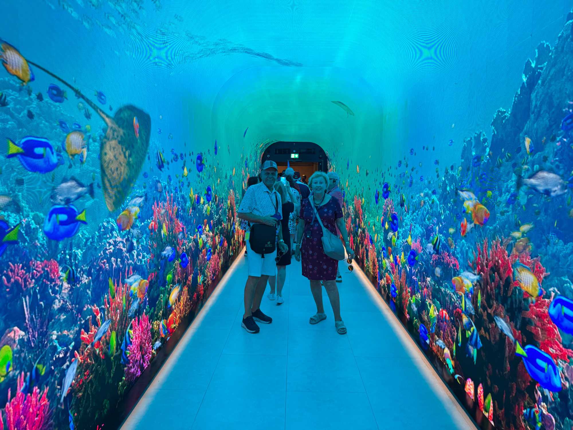 En fin d’après-midi, nous repartons vers le Dubaï Mall, souvent cité comme le plus grand centre commercial au monde par sa superficie d’environ 1,1 million de mètres carrés ! Achille nous mentionne que c’est la destination de shopping et de loisirs la plus visitée au monde accueillant plus de 100 millions de visiteurs par an. On s’arrête quelques minutes pour y voir l’aquarium et la patinoire intérieure.