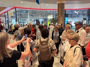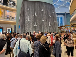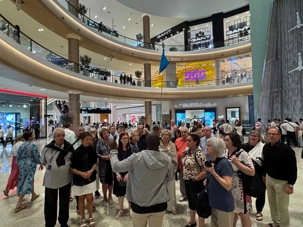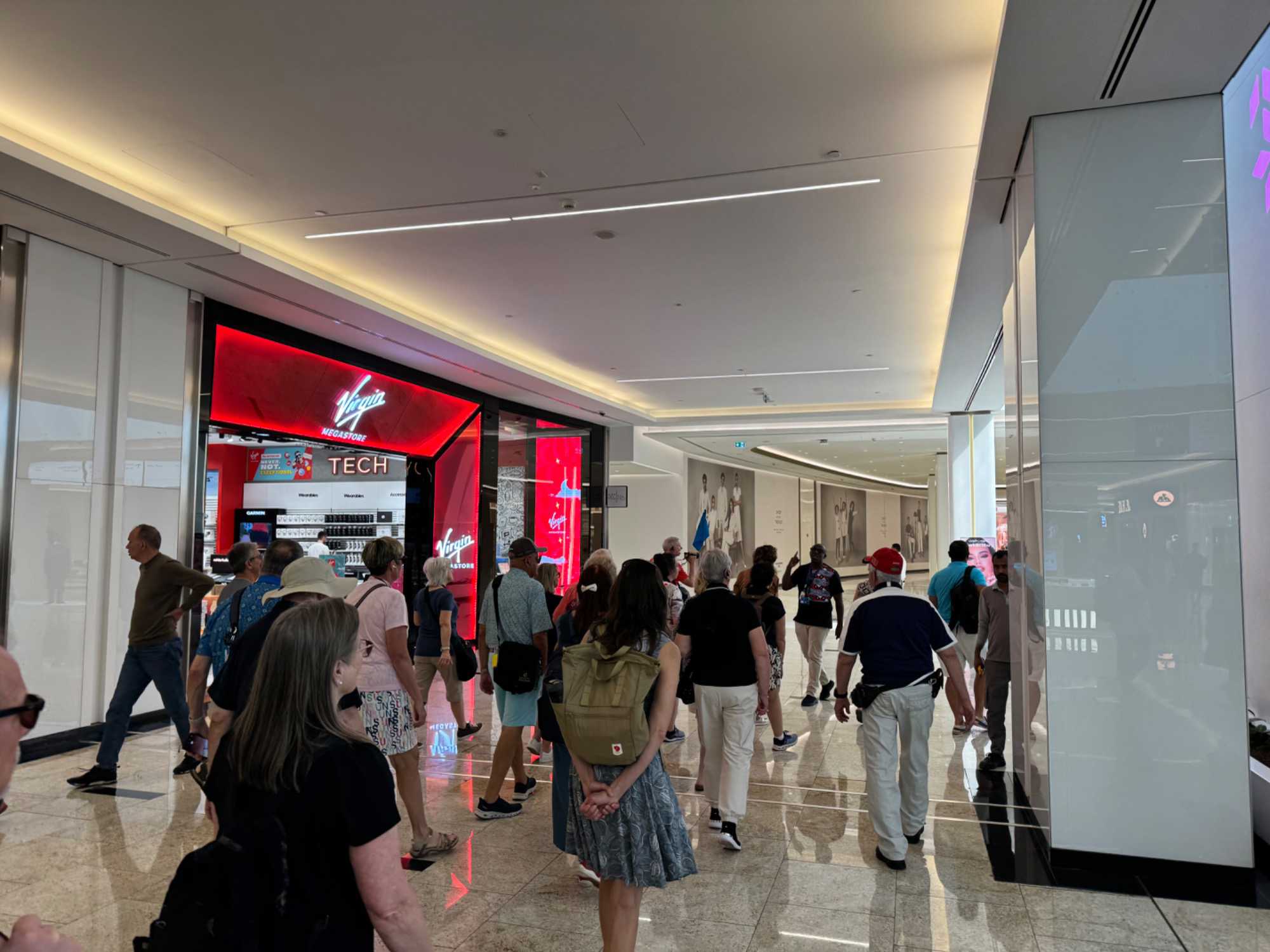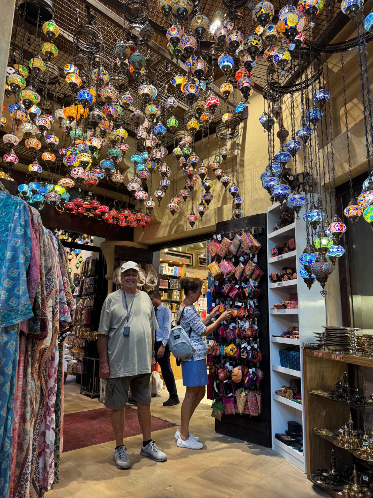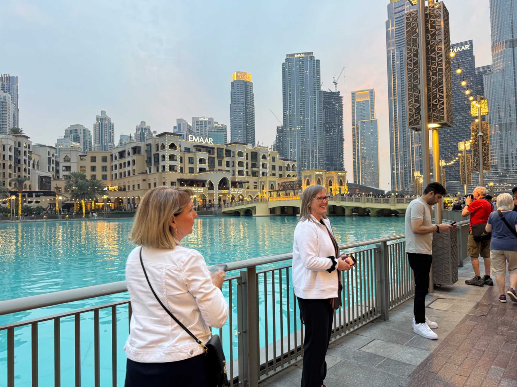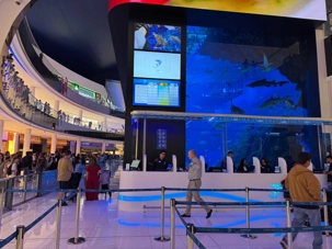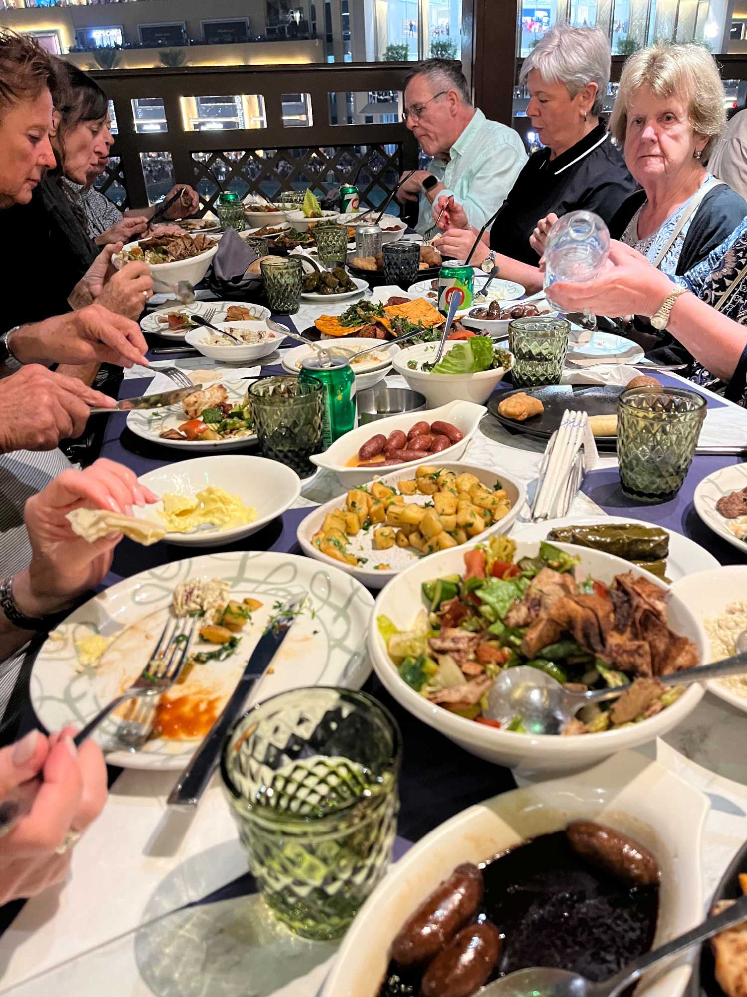 En fin d’après-midi, nous repartons vers le Dubaï Mall, souvent cité comme le plus grand centre commercial au monde par sa superficie d’environ 1,1 million de mètres carrés ! Achille nous mentionne que c’est la destination de shopping et de loisirs la plus visitée au monde accueillant plus de 100 millions de visiteurs par an. On s’arrête quelques minutes pour y voir l’aquarium et la patinoire intérieure.