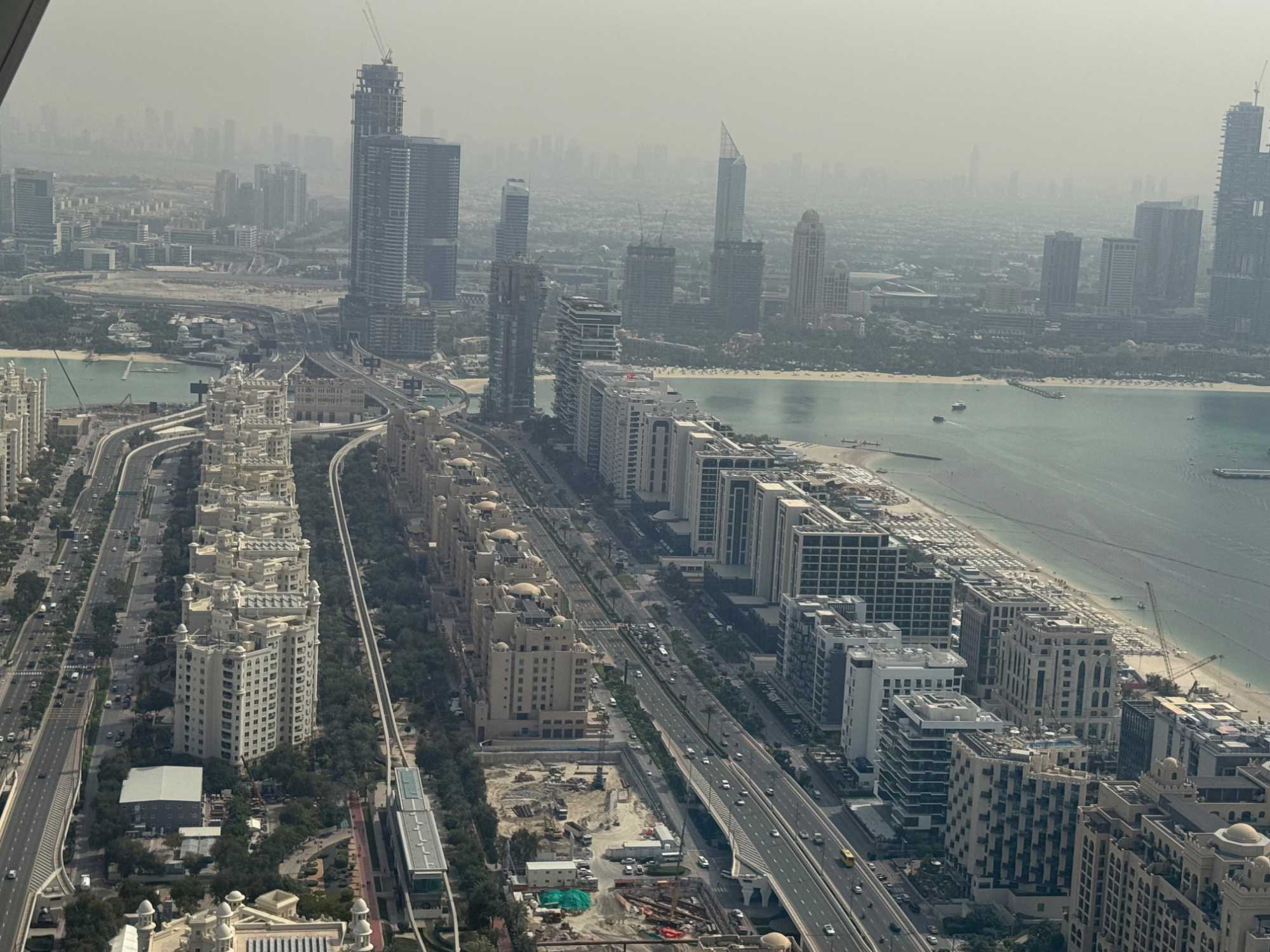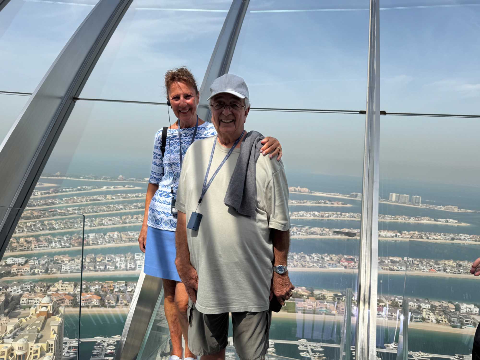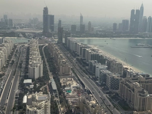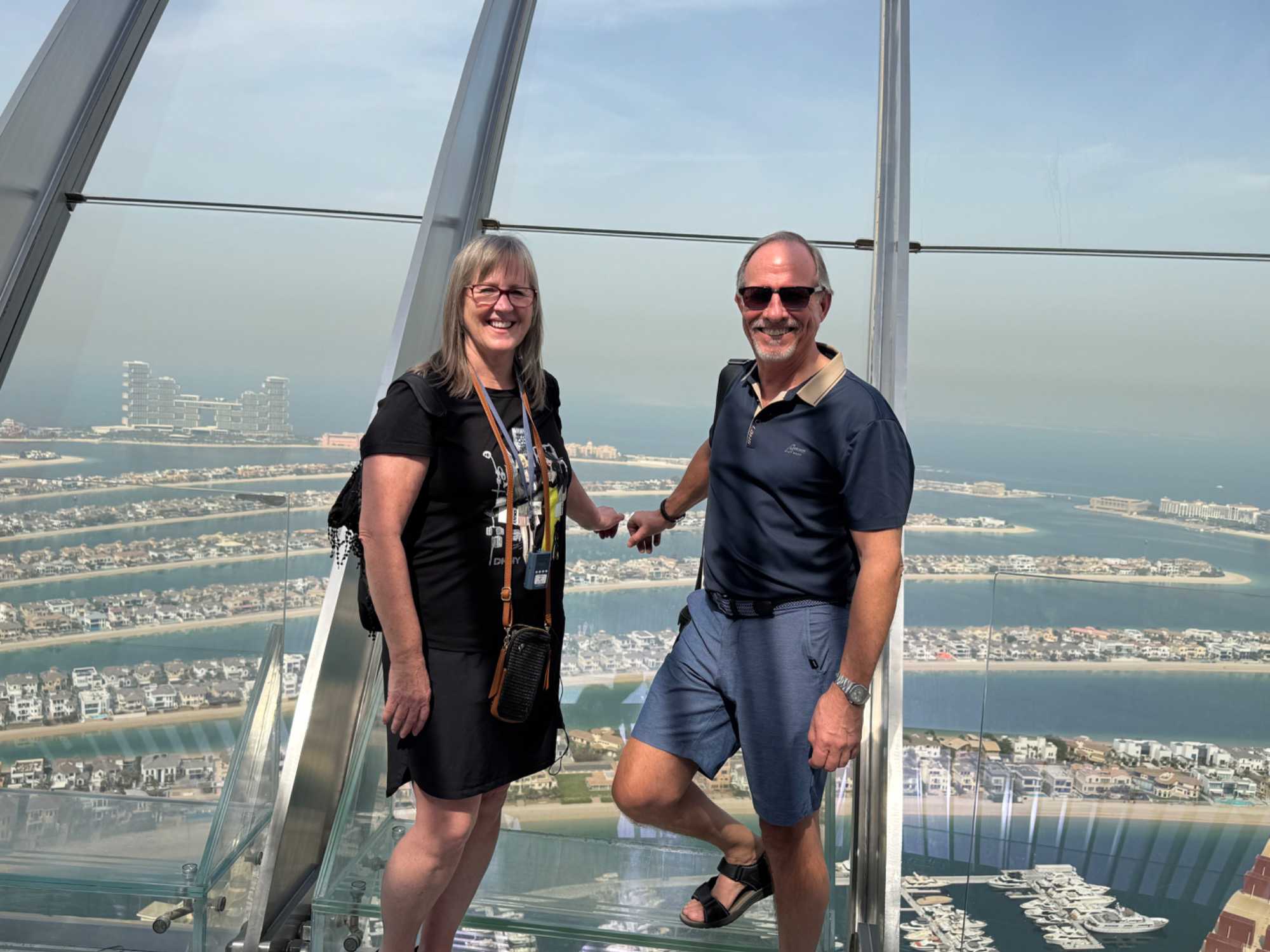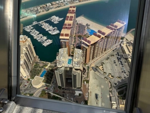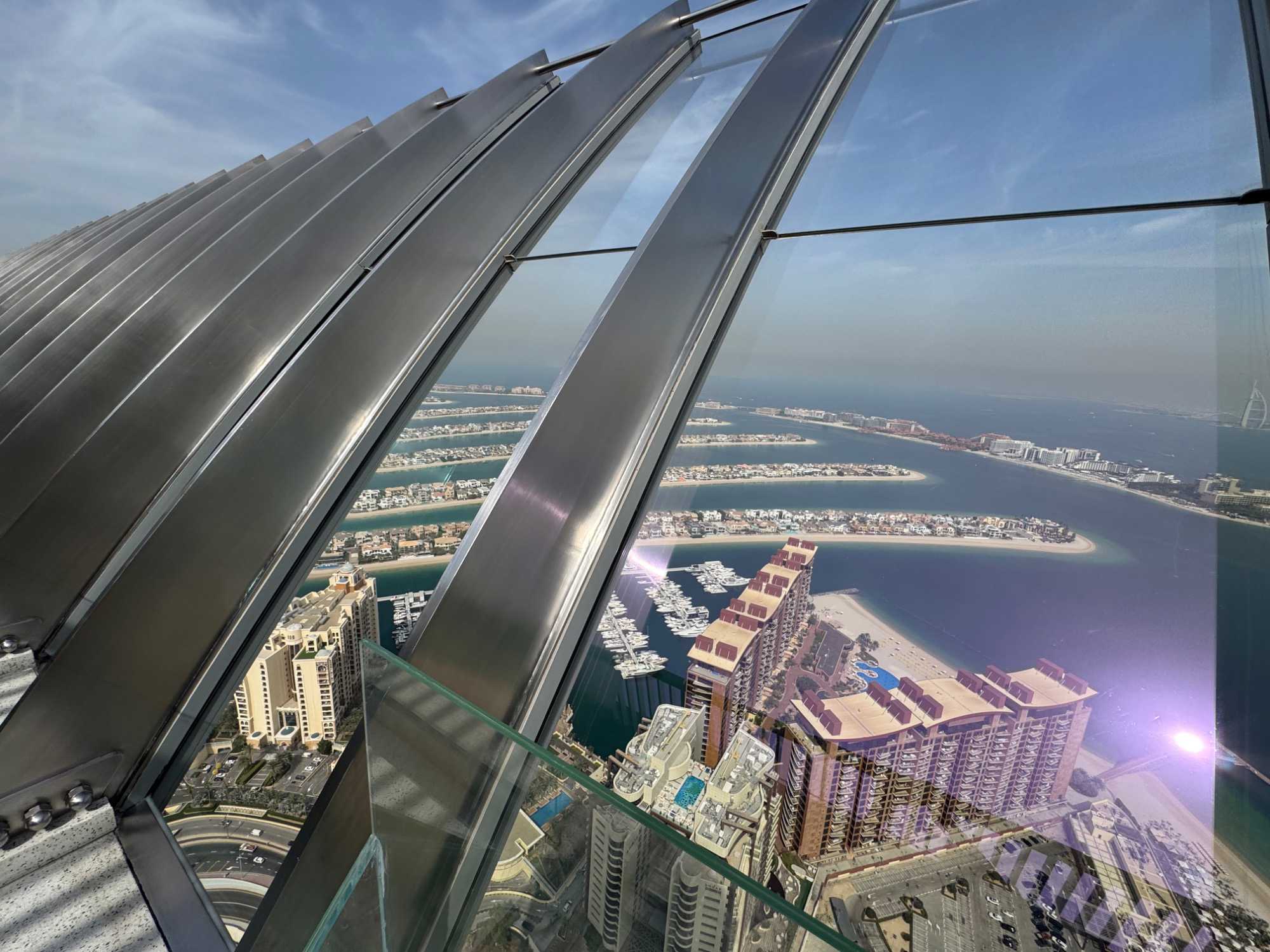 La matinée se poursuit avec la montée du Palm Tower, située au cœur du Nakheel Mall, pour découvrir The View at The Palm. Nous montons jusqu’à sa plateforme d’observation située à environ 240 mètres d’altitude. De là-haut, la vue panoramique permet d’admirer l’île artificielle de Palm Jumeirah, cet île en forme de palmier, impressionnante par son ampleur et sa conception.
