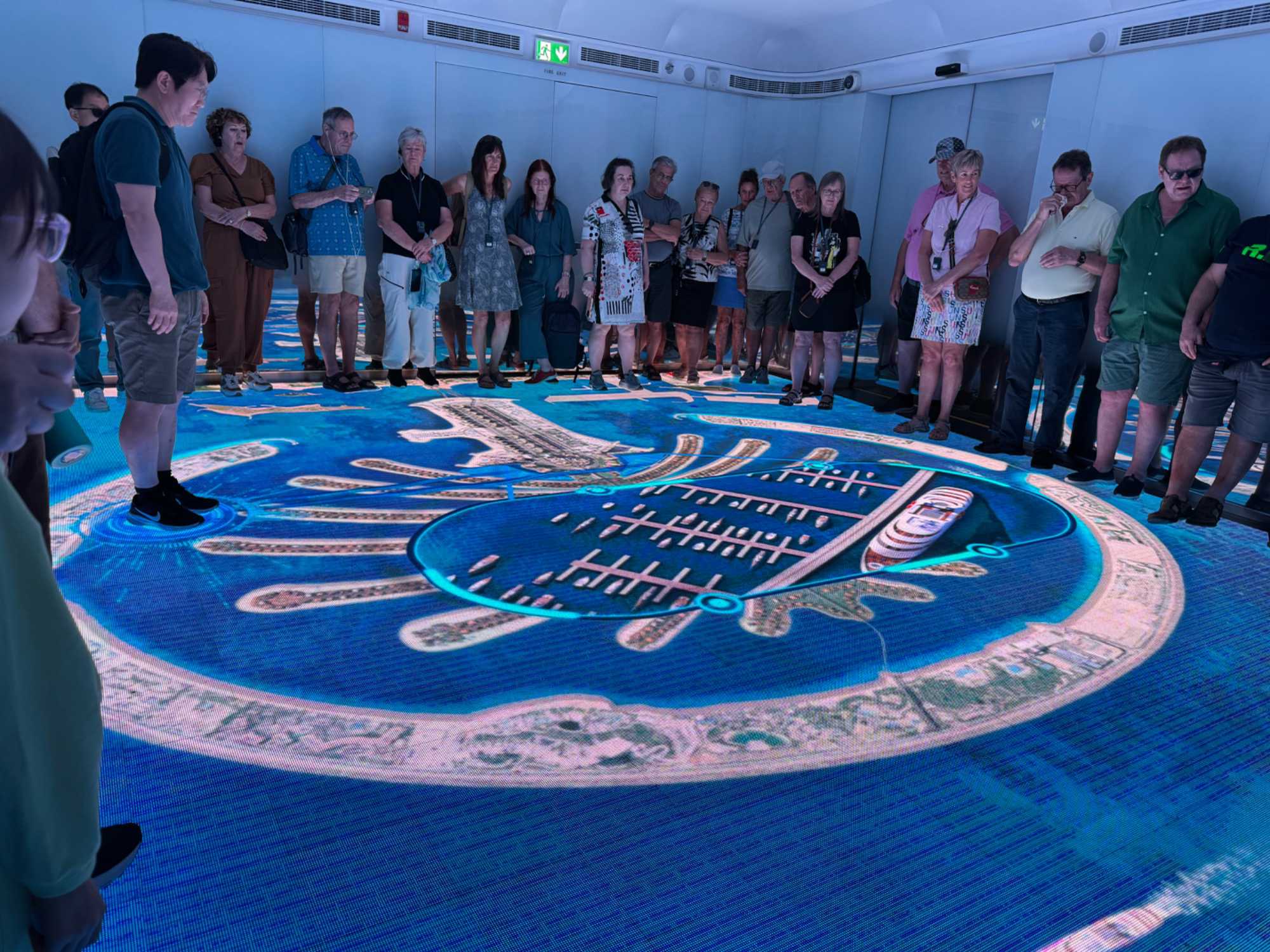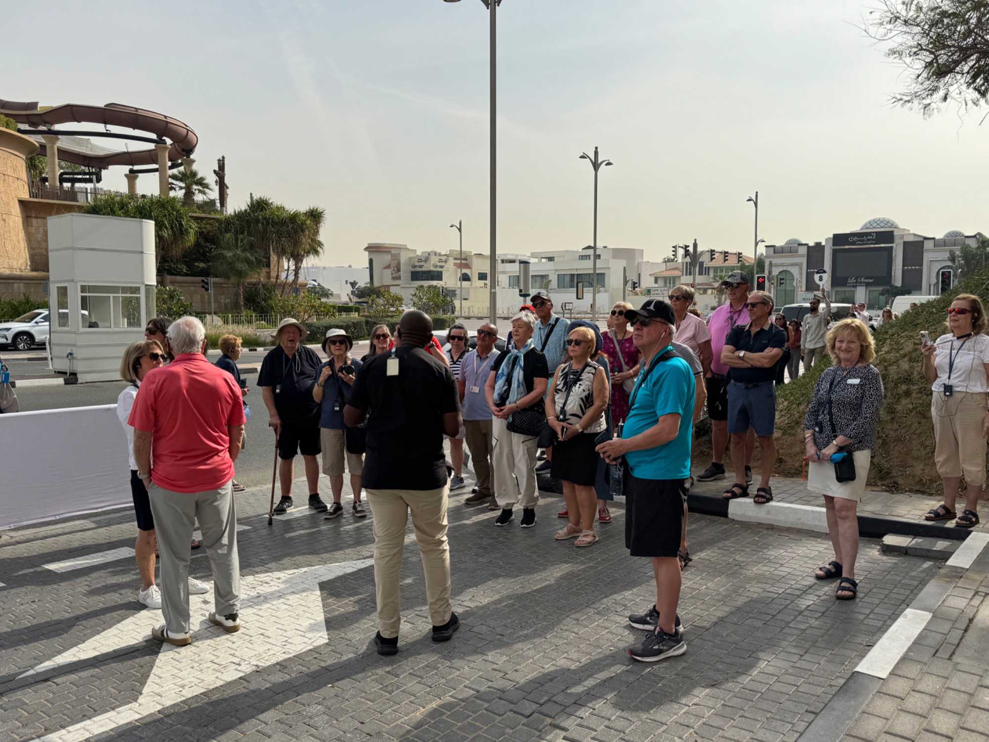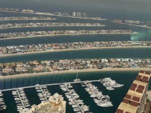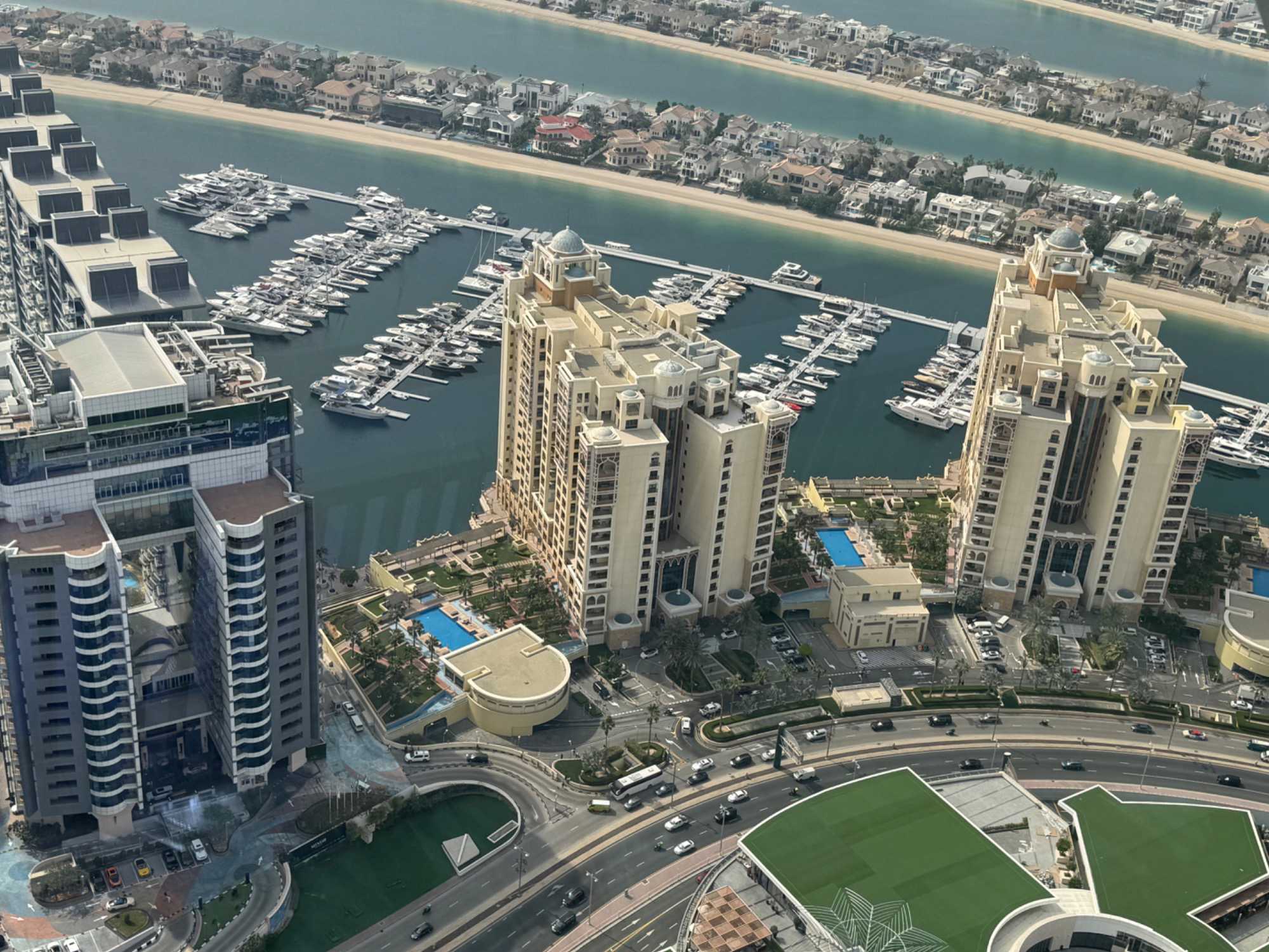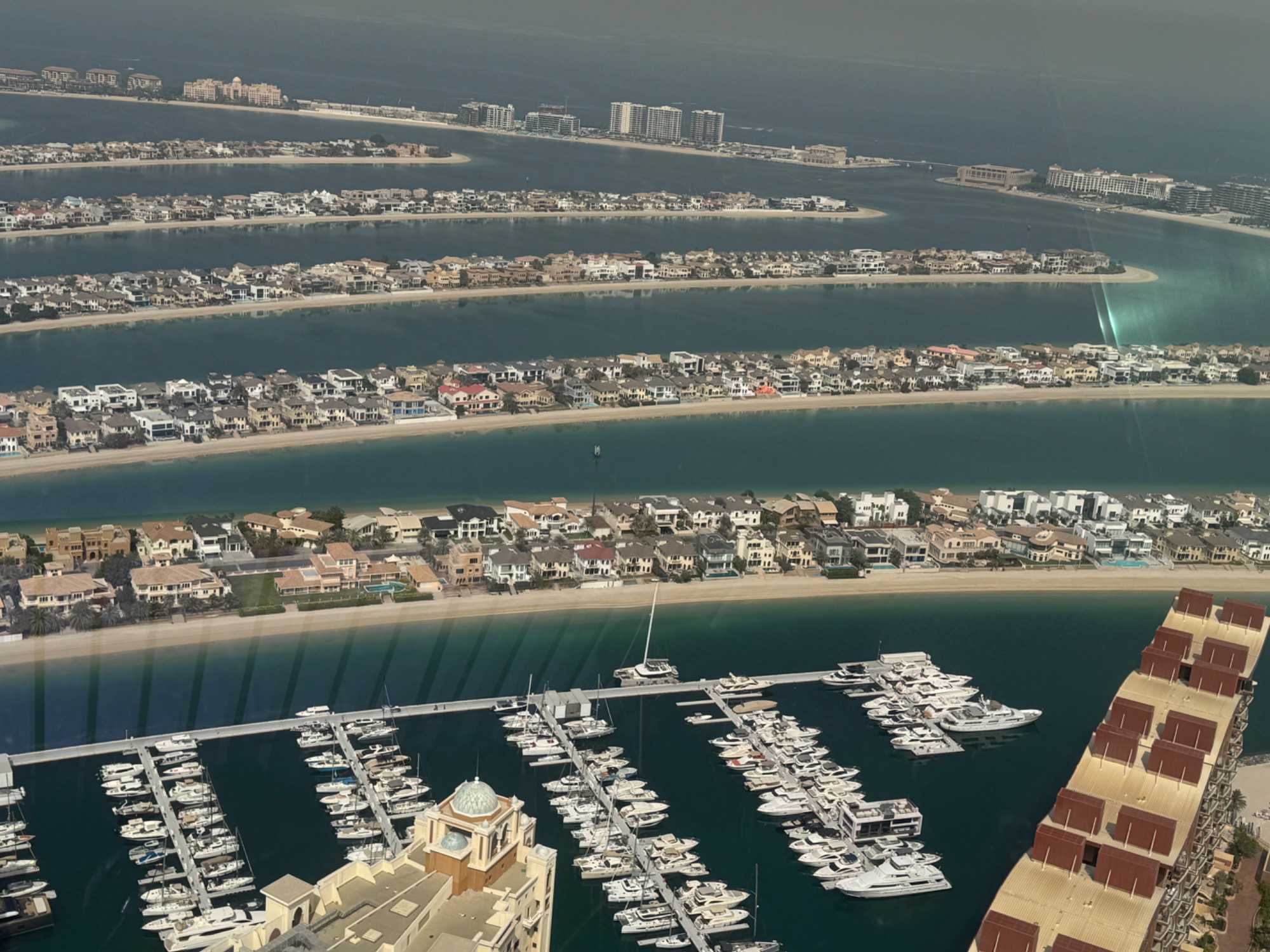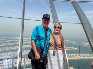 La matinée se poursuit avec la montée du Palm Tower, située au cœur du Nakheel Mall, pour découvrir The View at The Palm. Nous montons jusqu’à sa plateforme d’observation située à environ 240 mètres d’altitude. De là-haut, la vue panoramique permet d’admirer l’île artificielle de Palm Jumeirah, cet île en forme de palmier, impressionnante par son ampleur et sa conception.