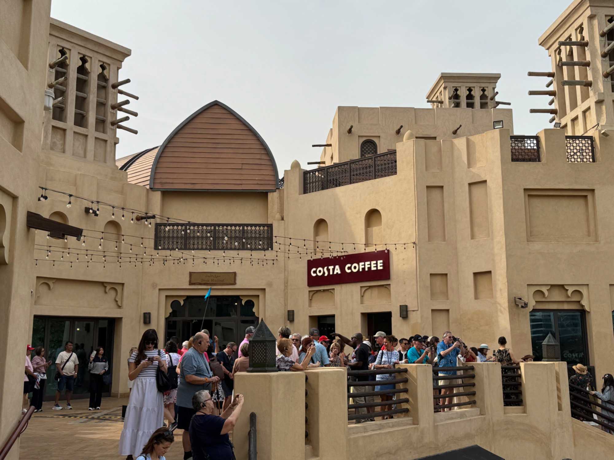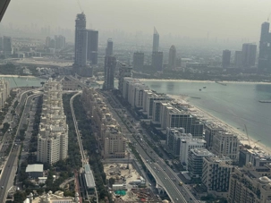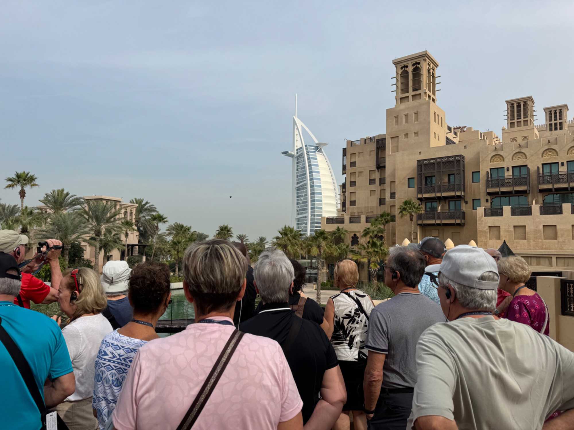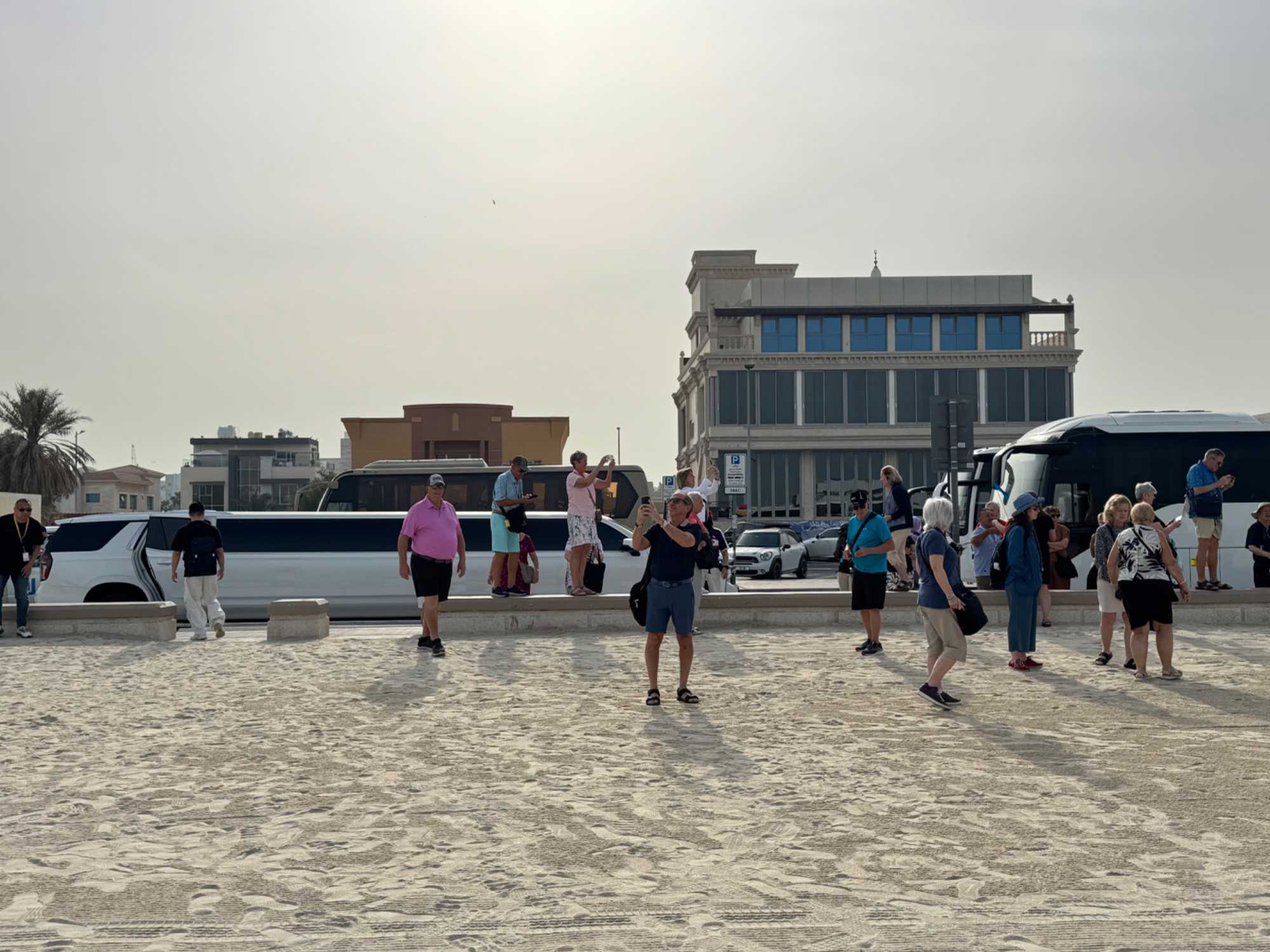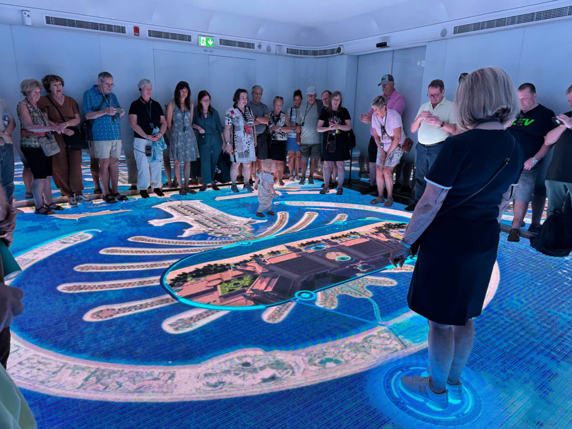 La matinée se poursuit avec la montée du Palm Tower, située au cœur du Nakheel Mall, pour découvrir The View at The Palm. Nous montons jusqu’à sa plateforme d’observation située à environ 240 mètres d’altitude. De là-haut, la vue panoramique permet d’admirer l’île artificielle de Palm Jumeirah, cet île en forme de palmier, impressionnante par son ampleur et sa conception.