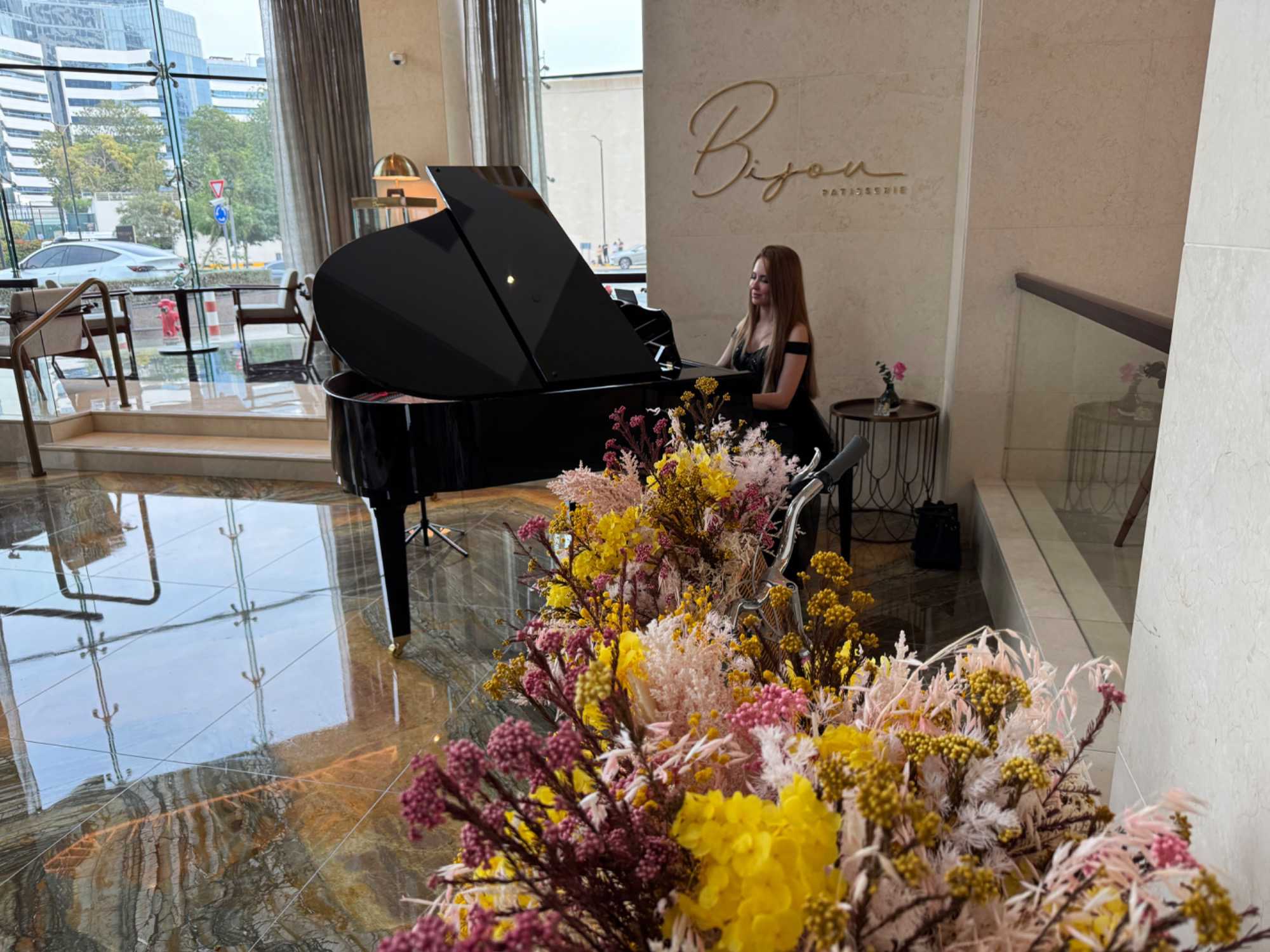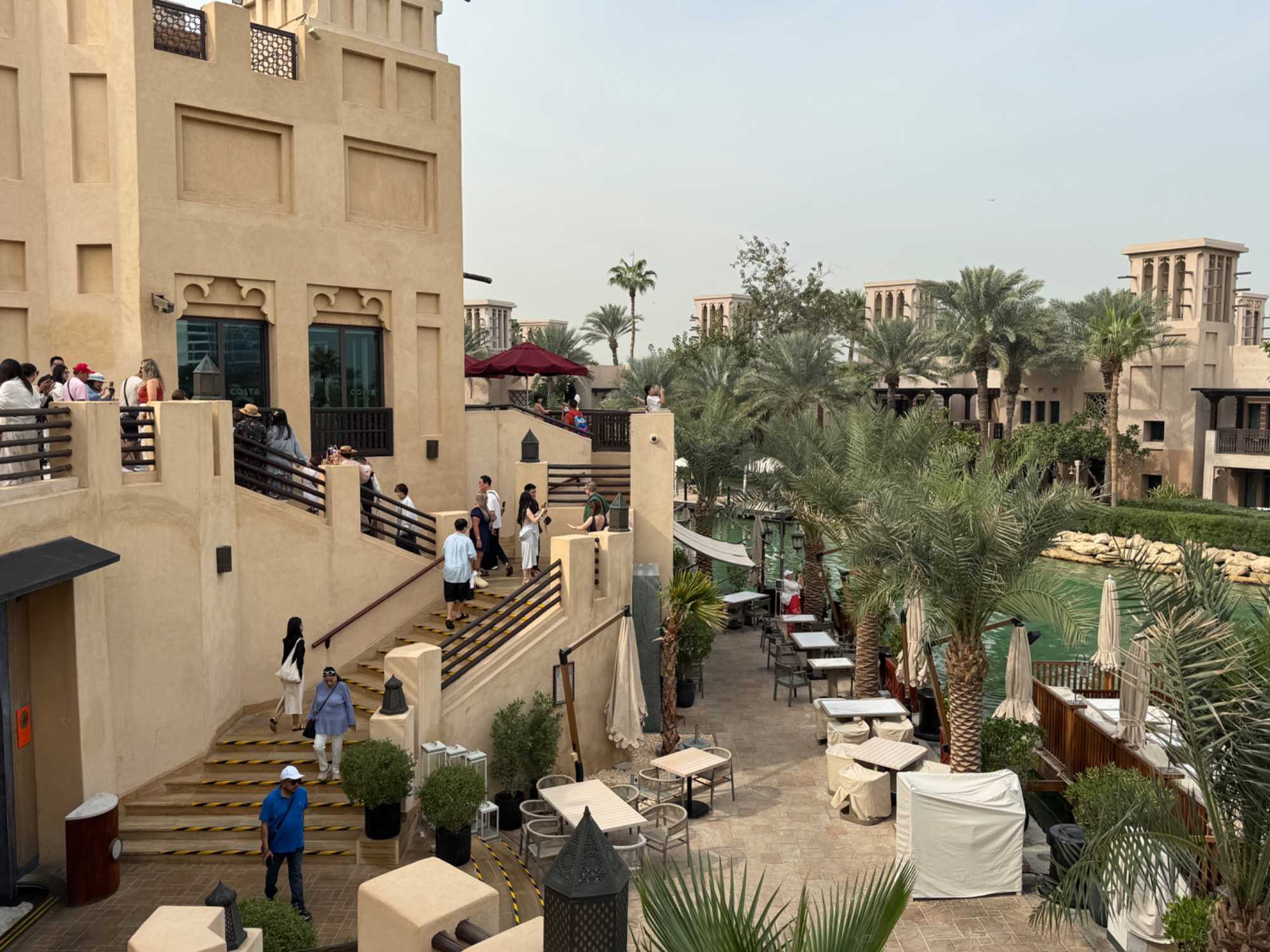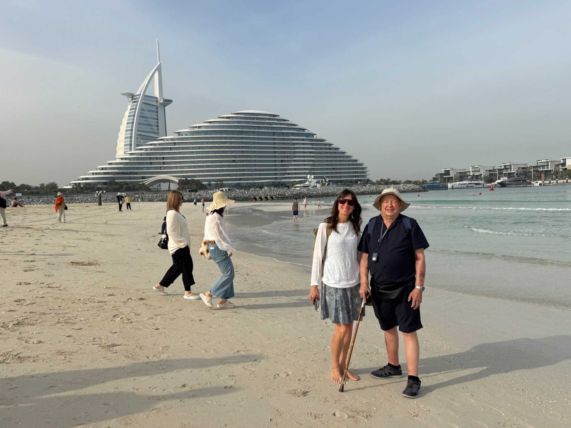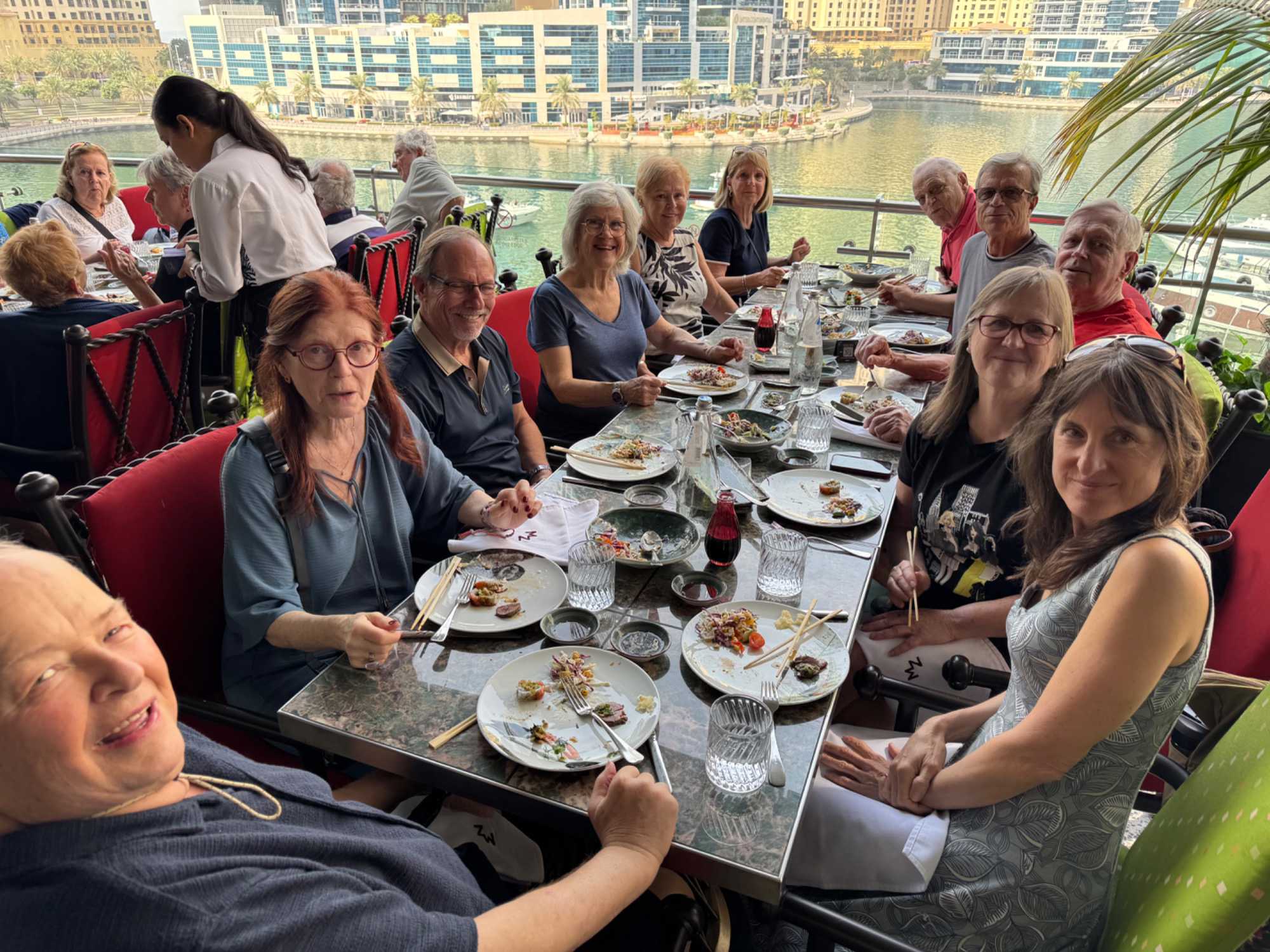 Nous allons ensuite vers la marina de Dubaï, ce quartier ultramoderne où les gratte-ciels se reflètent dans les eaux calmes du canal, bordé de yachts luxueux et de promenades animées. L’ambiance y est à la fois élégante et dynamique.
