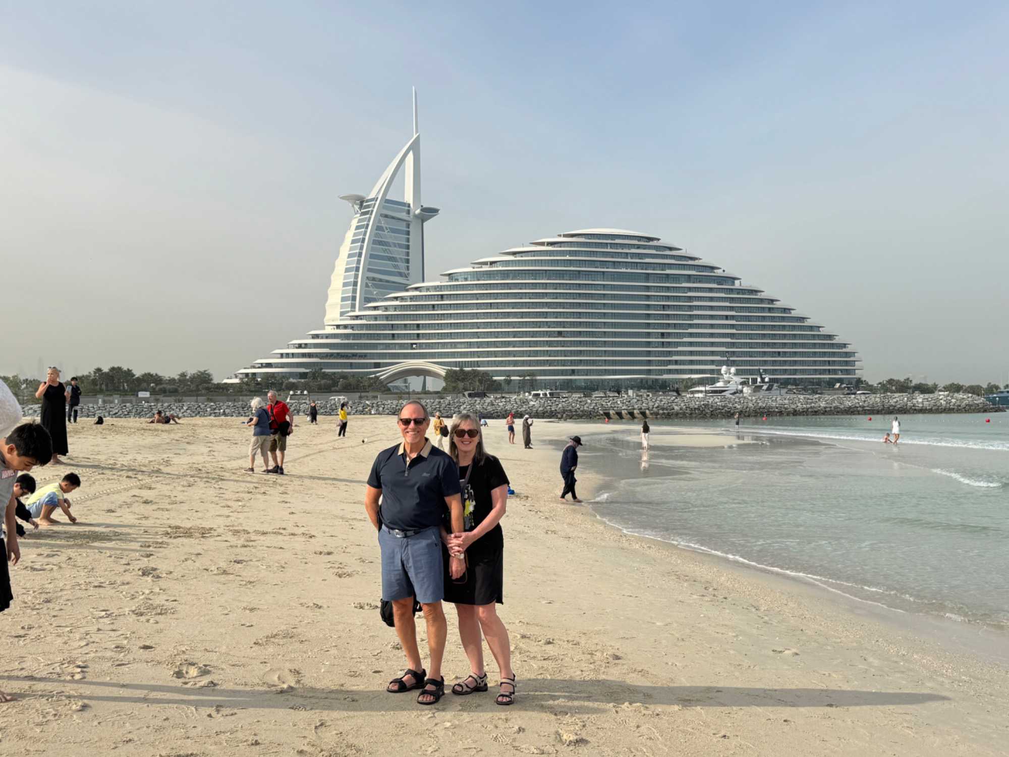 Après un excellent déjeuner à l’hôtel Sofitel Dubaï The Obelisk, nous partons à la découverte du Dubaï moderne et ses réalisations spectaculaires, en compagnie de nos guides Achille et Mohsen. La journée débute par un arrêt photo à la plage devant le célèbre Burj Al Arab, cet hôtel emblématique, est largement considéré comme le premier et l’unique hôtel « 7 étoiles » au monde. Elle est construite en forme de voile sur une île artificielle à quelques centaines de mètres du rivage. Véritable symbole du luxe extrême et de l’audace architecturale de Dubaï, il demeure l’un des monuments les plus iconiques de la ville.