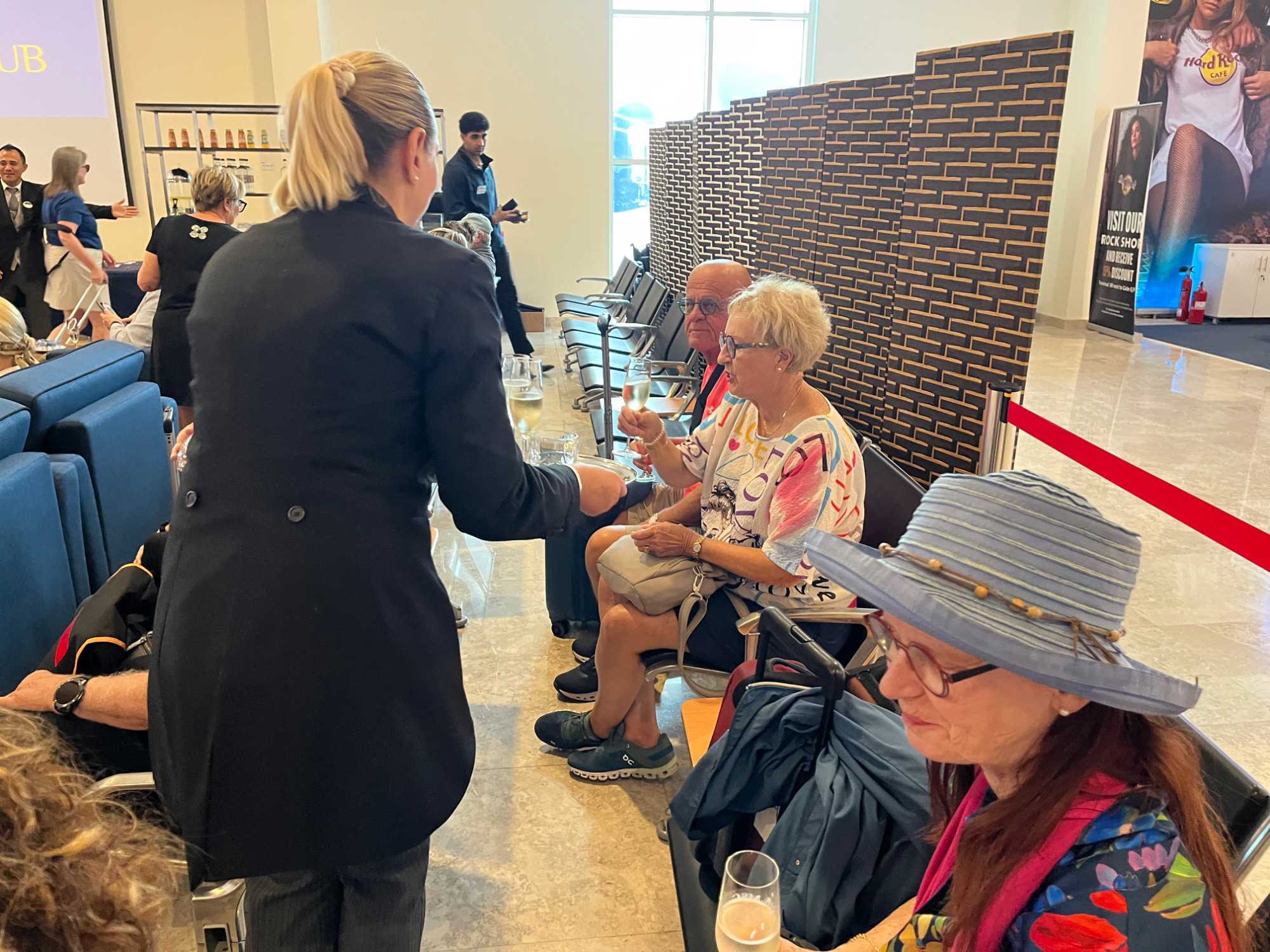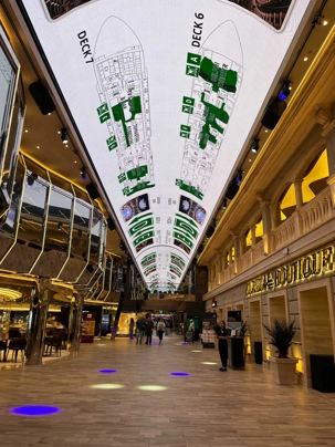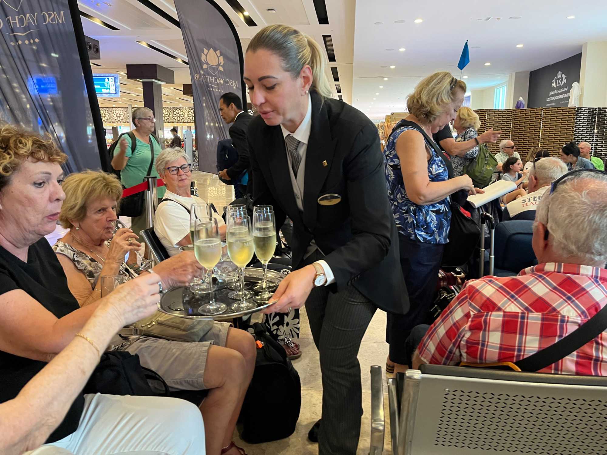 À notre arrivée au terminal, l’embarquement se déroule avec fluidité et élégance. En tant que voyageurs du Yacht Club, nous bénéficions d’un service personnalisé et d’une prise en charge privilégiée. Une fois installés dans nos cabines élégantes et confortables, véritables havres de tranquillité, notre majordome attitré vient à notre rencontre directement dans la cabine. Il prend le temps de nous souhaiter la bienvenue et de nous expliquer en détail les nombreux services exclusifs offerts tout au long de la croisière, confirmant dès les premiers instants le caractère hautement personnalisé de l’expérience Yacht Club.