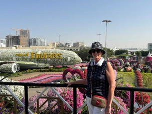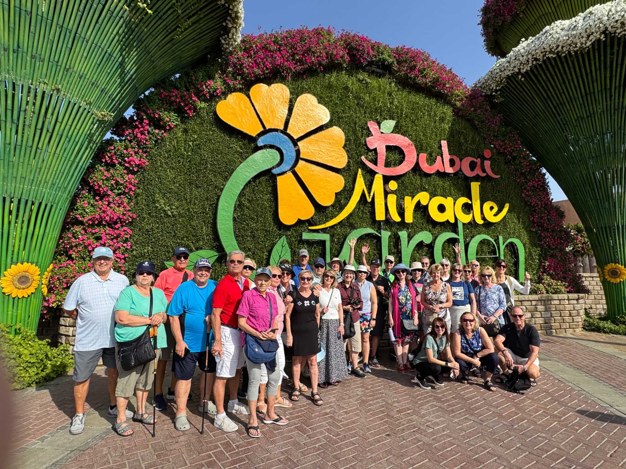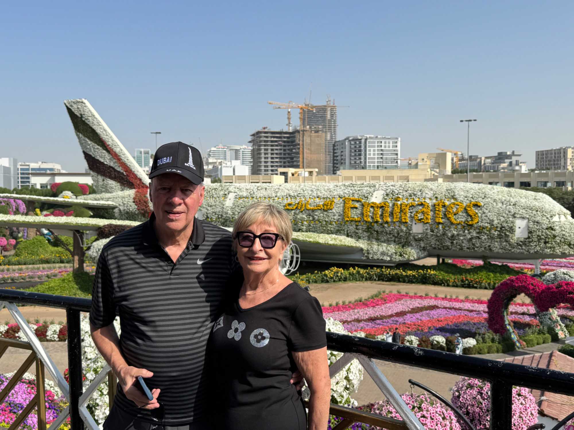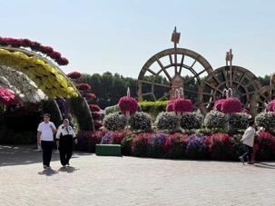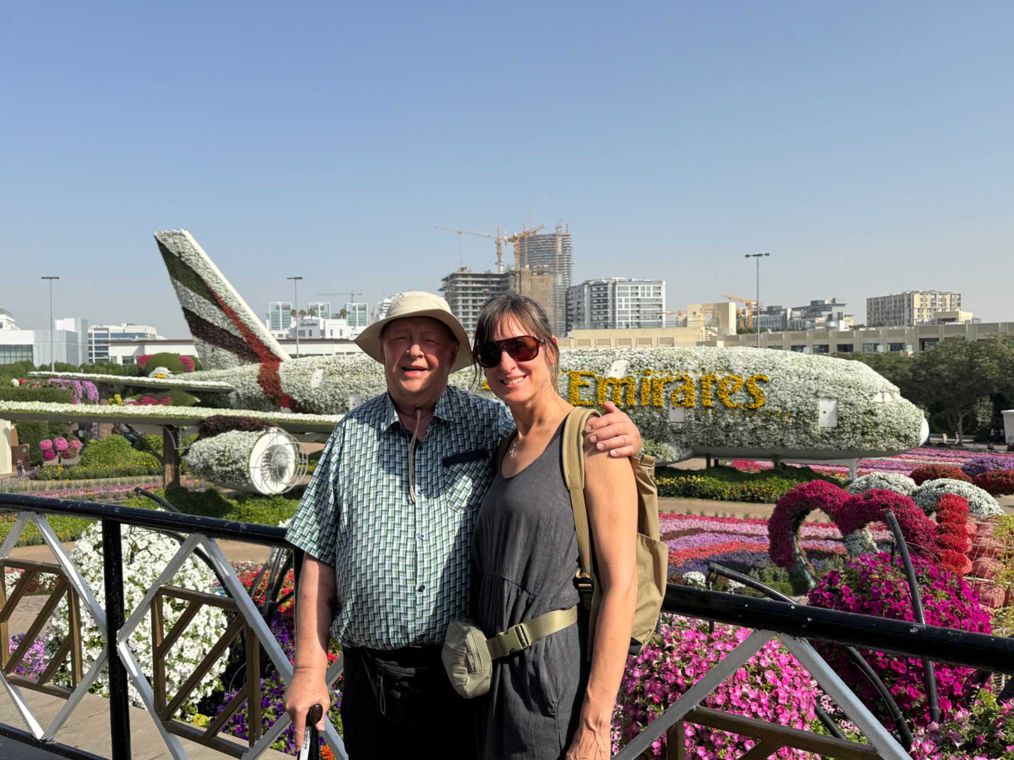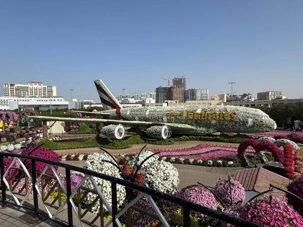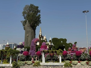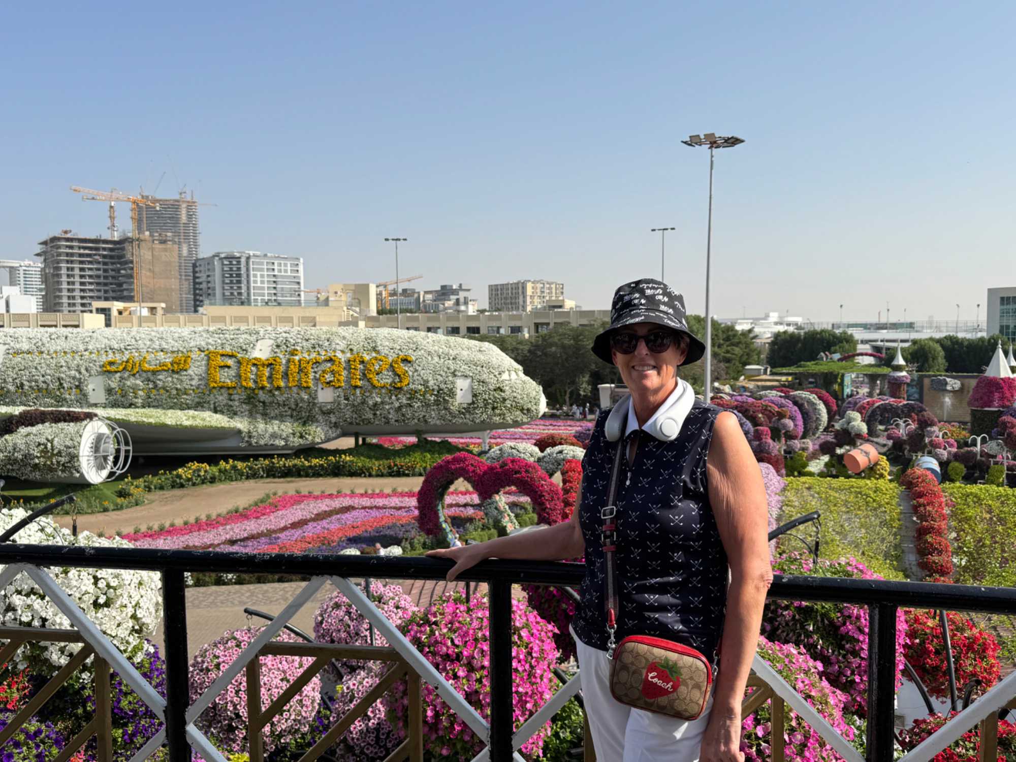 Après un excellent déjeuner à l’hôtel, nous retrouvons notre guide Achille, toujours souriant et de bonne humeur, pour une matinée exceptionnelle au Dubaï Miracle Garden. Situé dans le secteur de Dubailand, ce jardin est reconnu comme le plus grand jardin de fleurs au monde. Il s’étend sur plus de 72 000 m² et rassemble des dizaines de millions de fleurs, savamment disposées en compositions spectaculaires. Chaque année, les installations sont entièrement renouvelées, offrant un foisonnement de couleurs et de créativité.