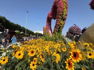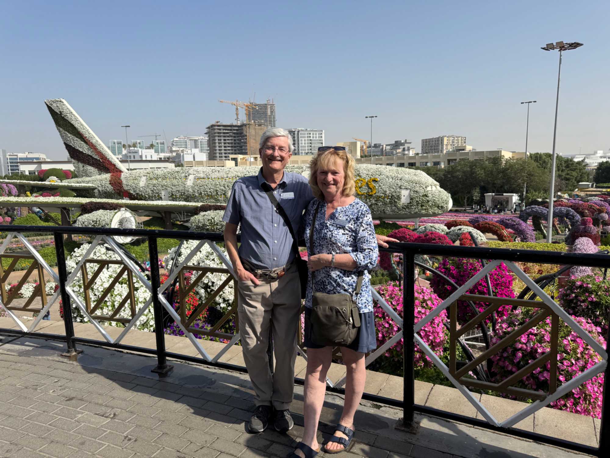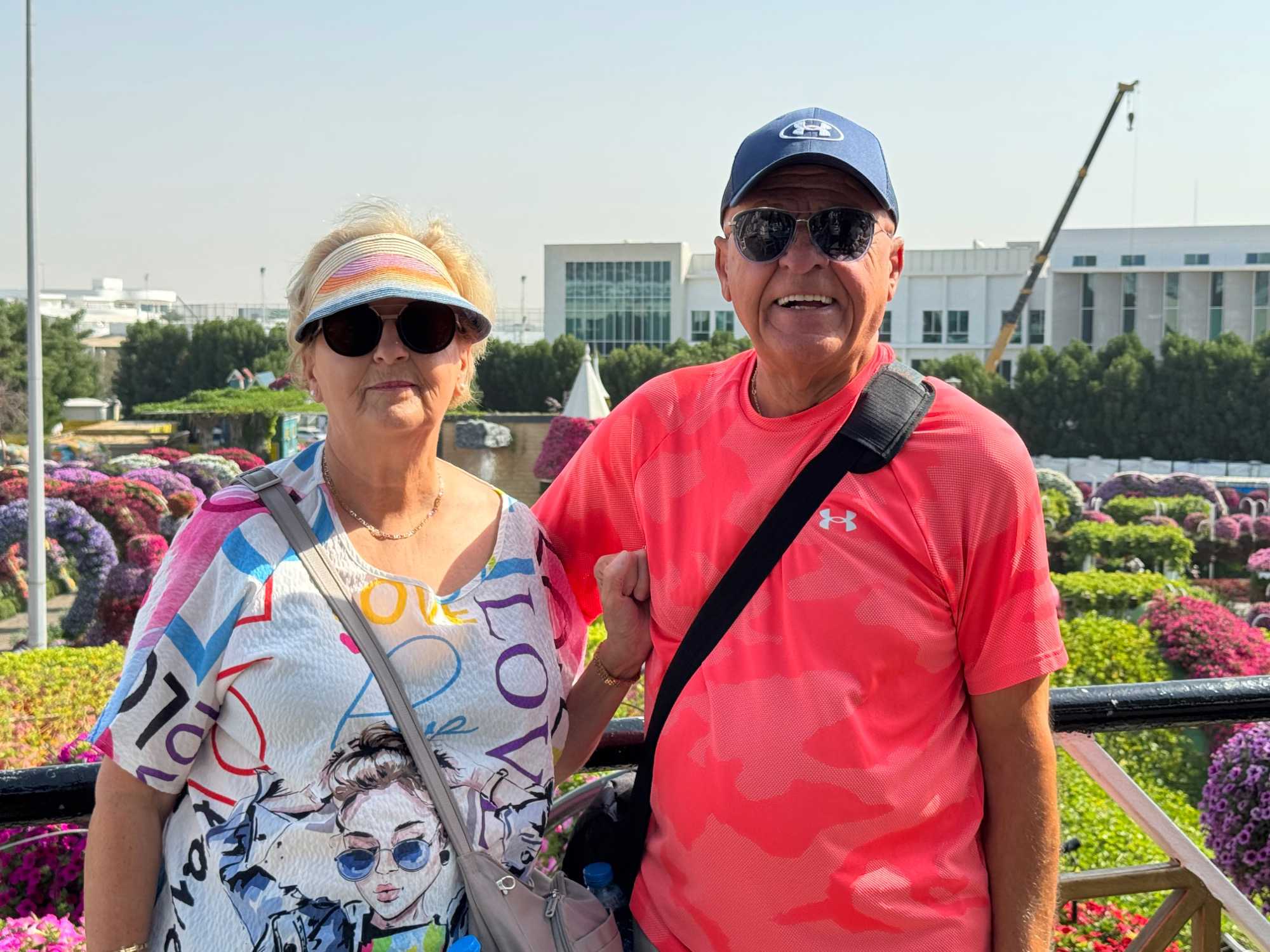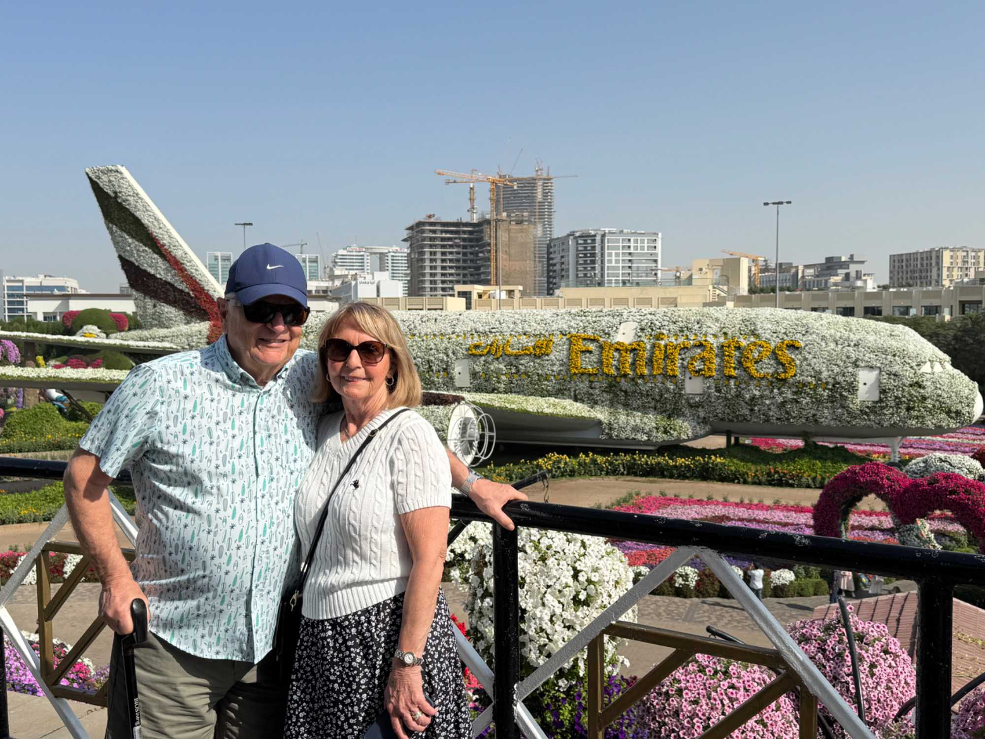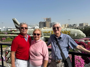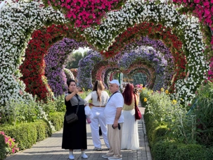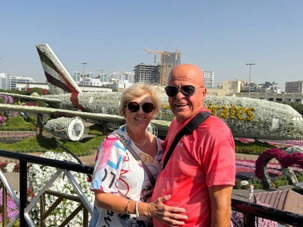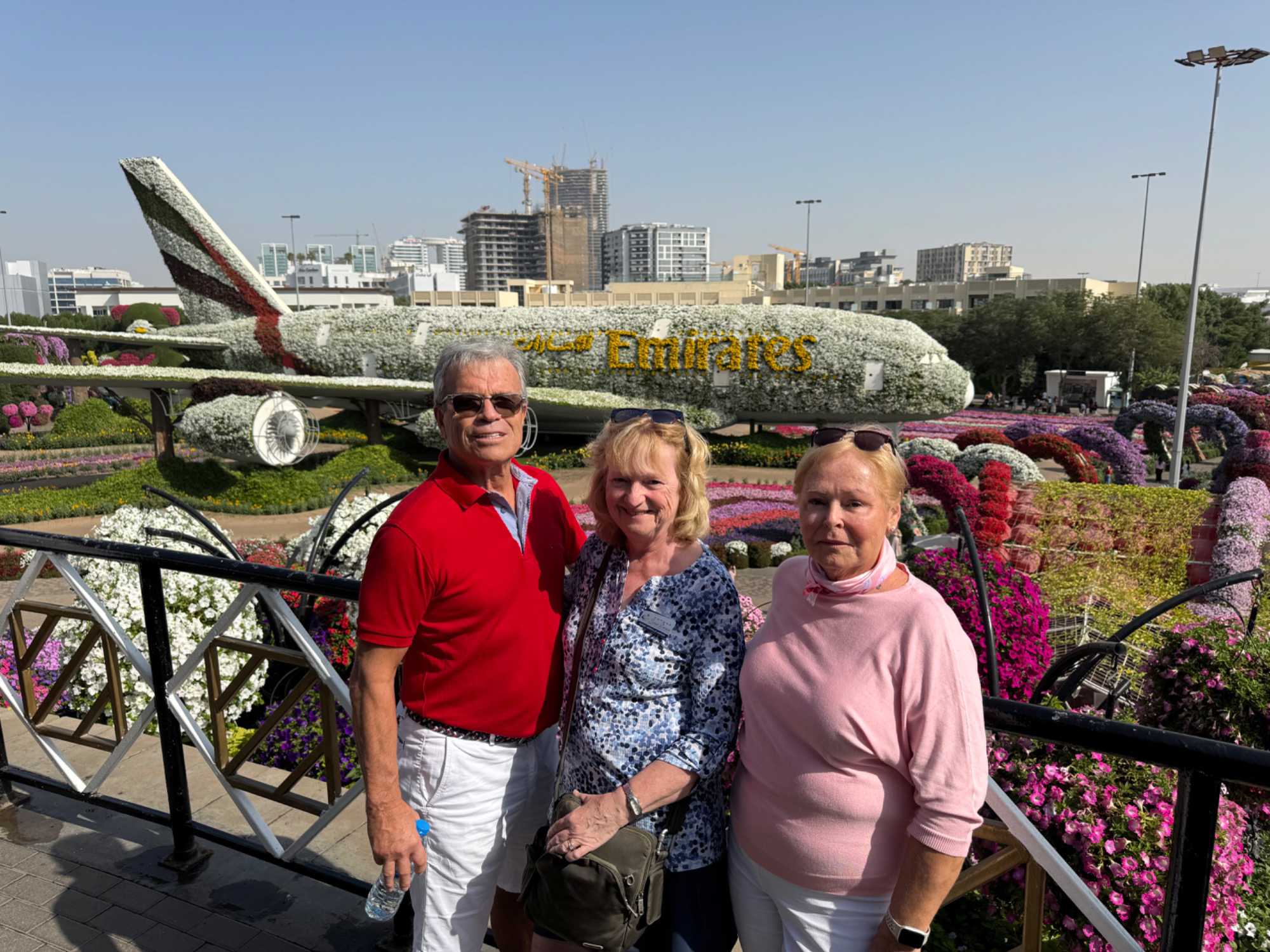 Après un excellent déjeuner à l’hôtel, nous retrouvons notre guide Achille, toujours souriant et de bonne humeur, pour une matinée exceptionnelle au Dubaï Miracle Garden. Situé dans le secteur de Dubailand, ce jardin est reconnu comme le plus grand jardin de fleurs au monde. Il s’étend sur plus de 72 000 m² et rassemble des dizaines de millions de fleurs, savamment disposées en compositions spectaculaires. Chaque année, les installations sont entièrement renouvelées, offrant un foisonnement de couleurs et de créativité.