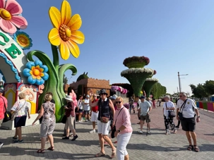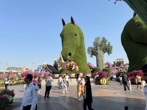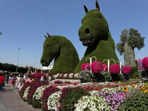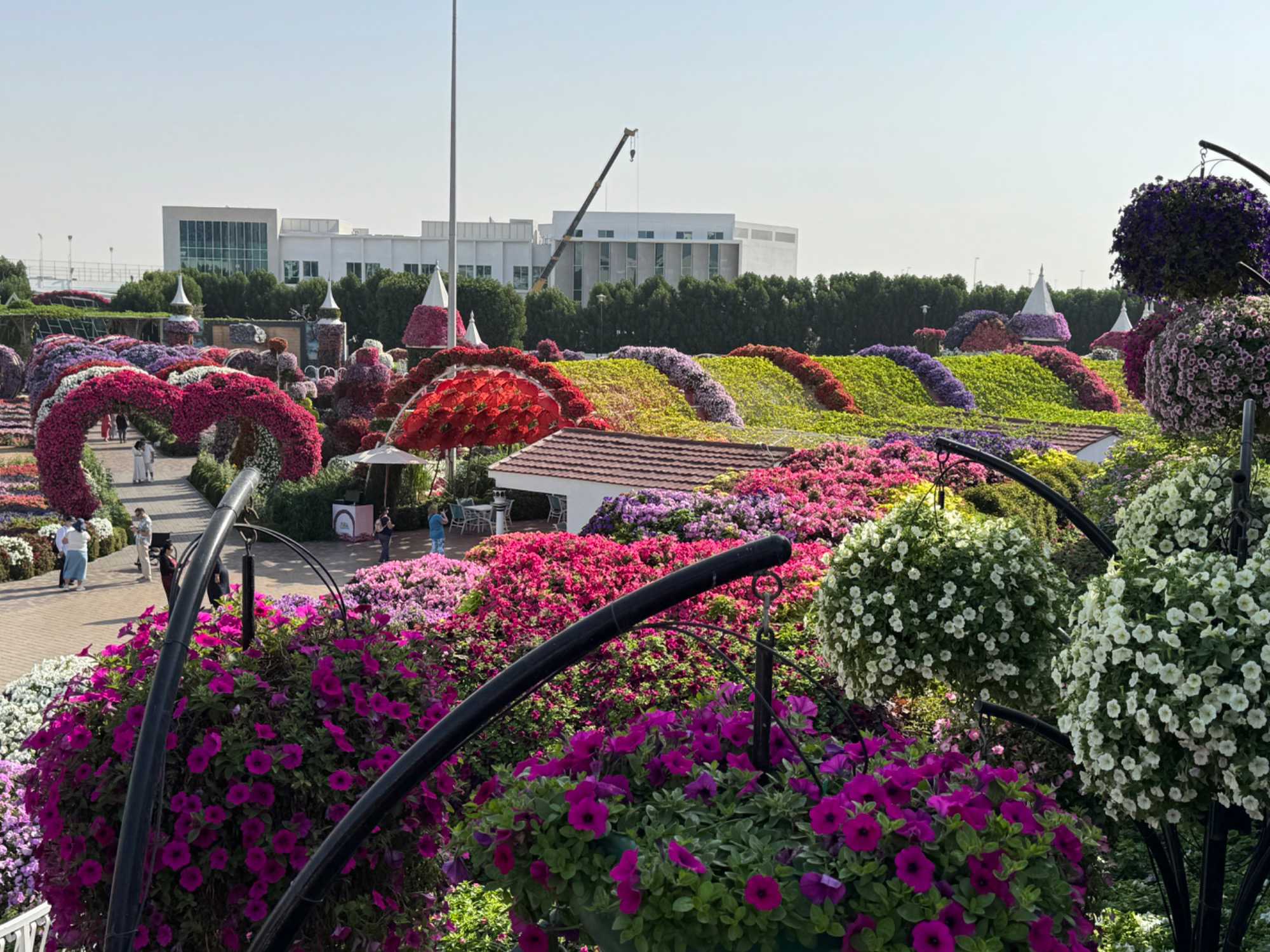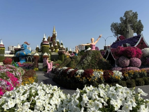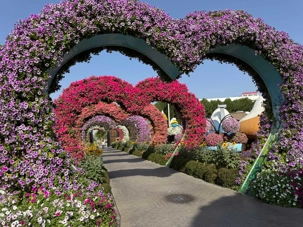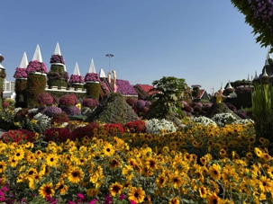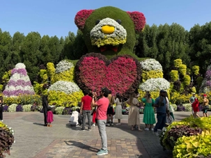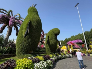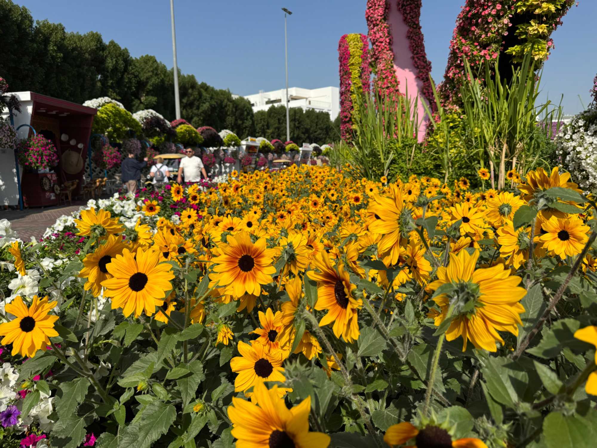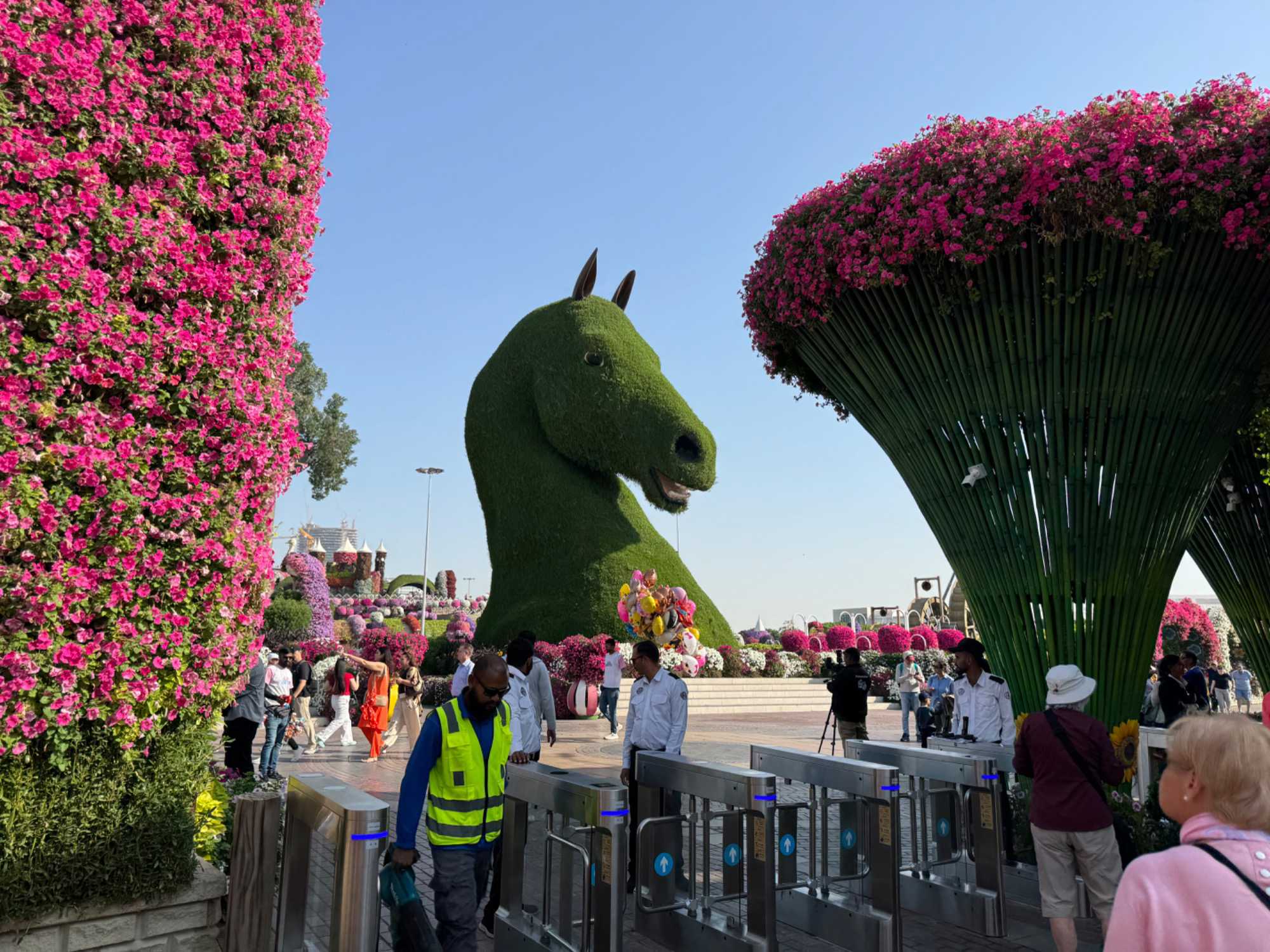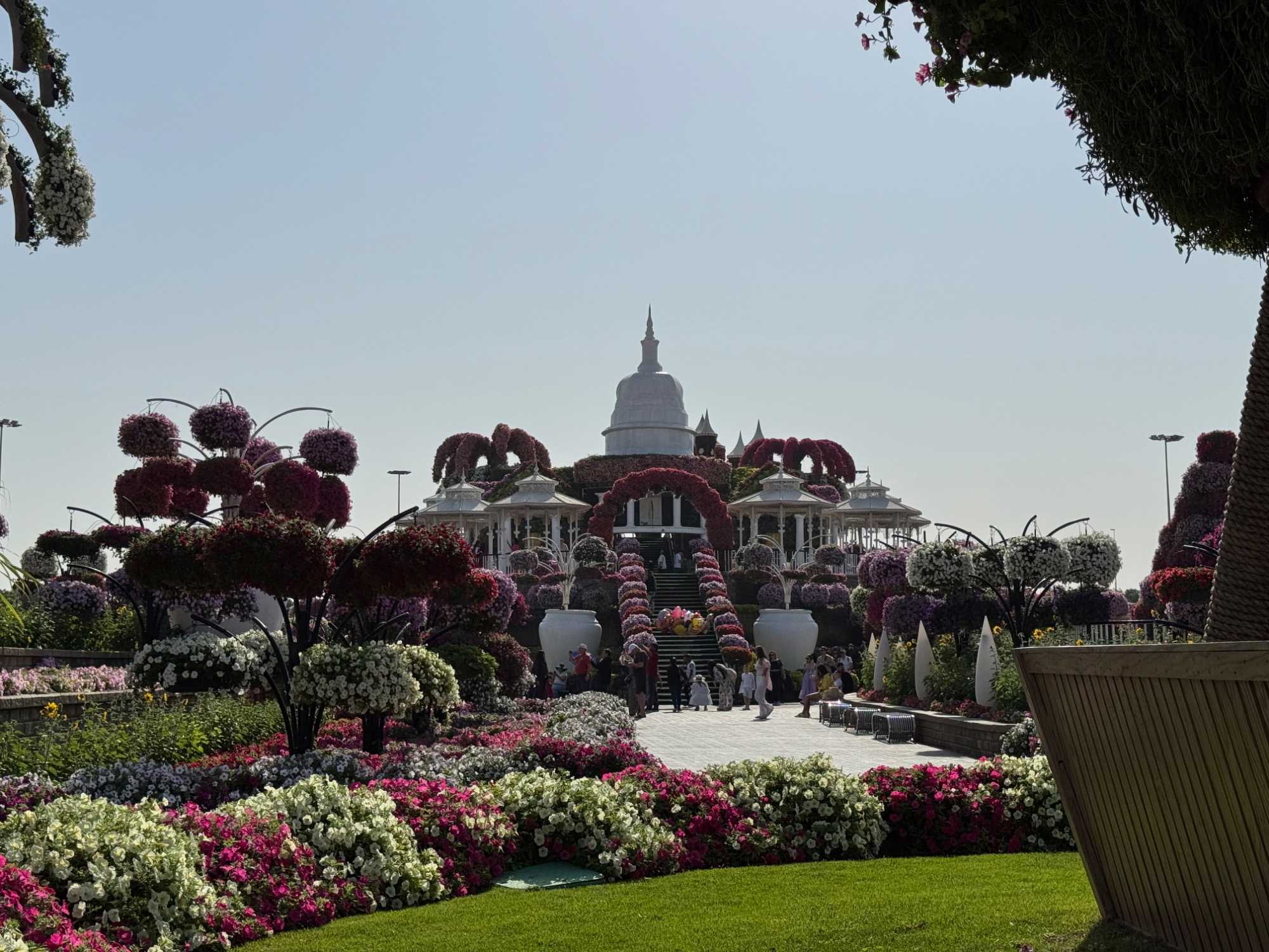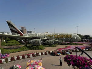 Nous déambulons à travers les allées du parc, découvrant des structures monumentales entièrement recouvertes de fleurs, des arches colorées, des maisons grandeur nature et d’impressionnantes sculptures florales. Conçu en plein désert grâce à des systèmes d’irrigation utilisant de l’eau recyclée, le Miracle Garden illustre parfaitement la capacité de Dubaï à repousser les limites de l’impossible.