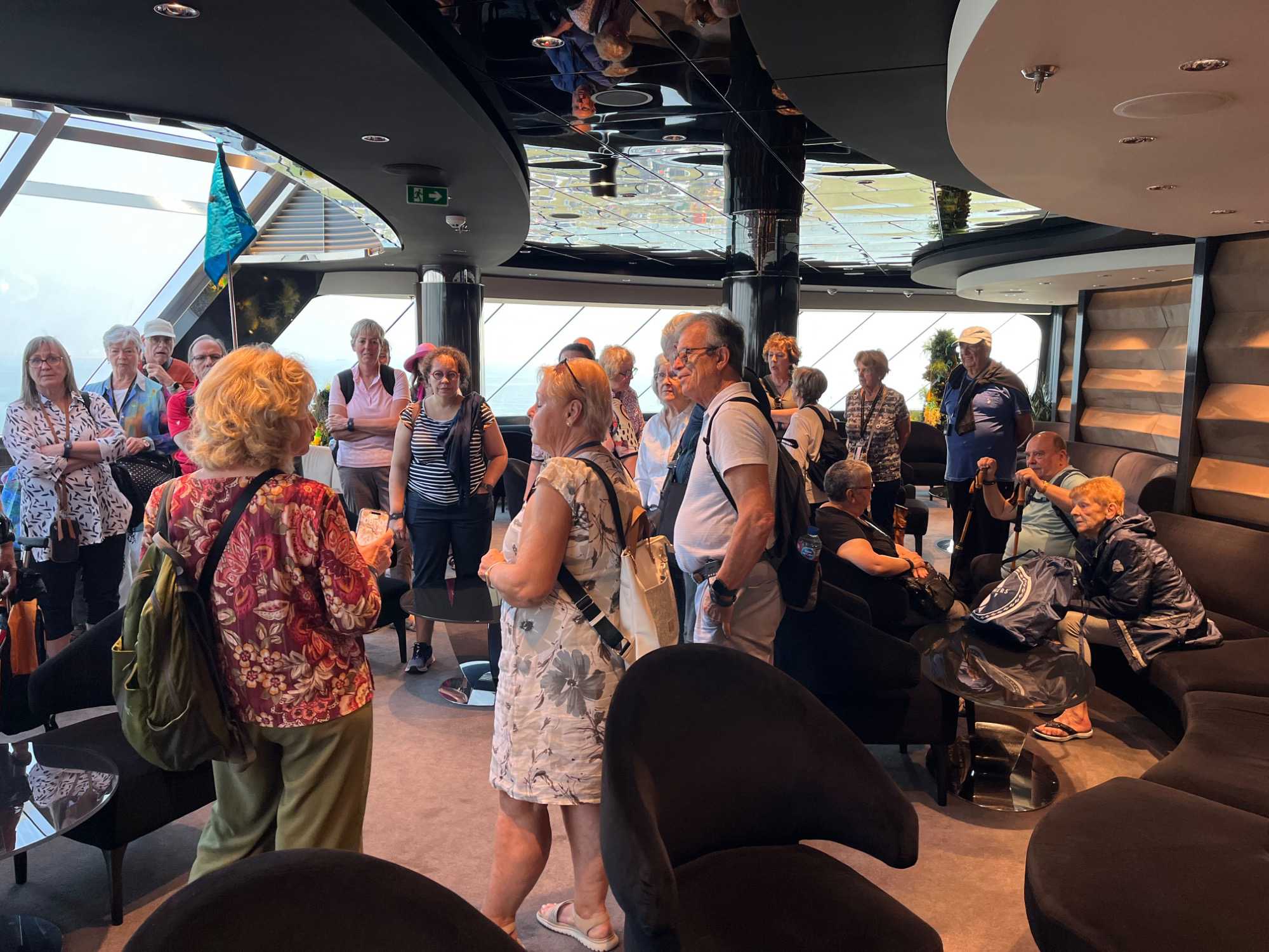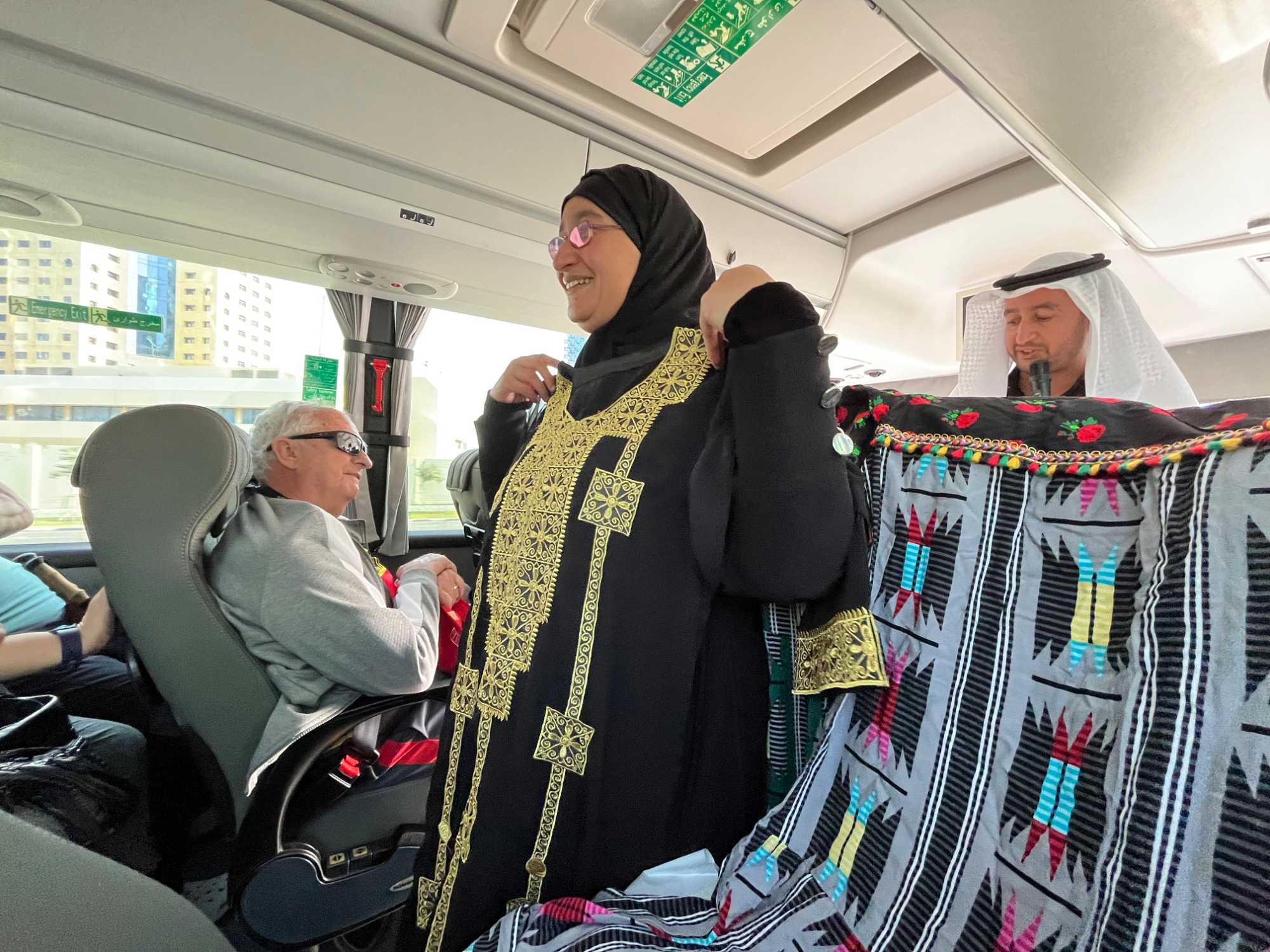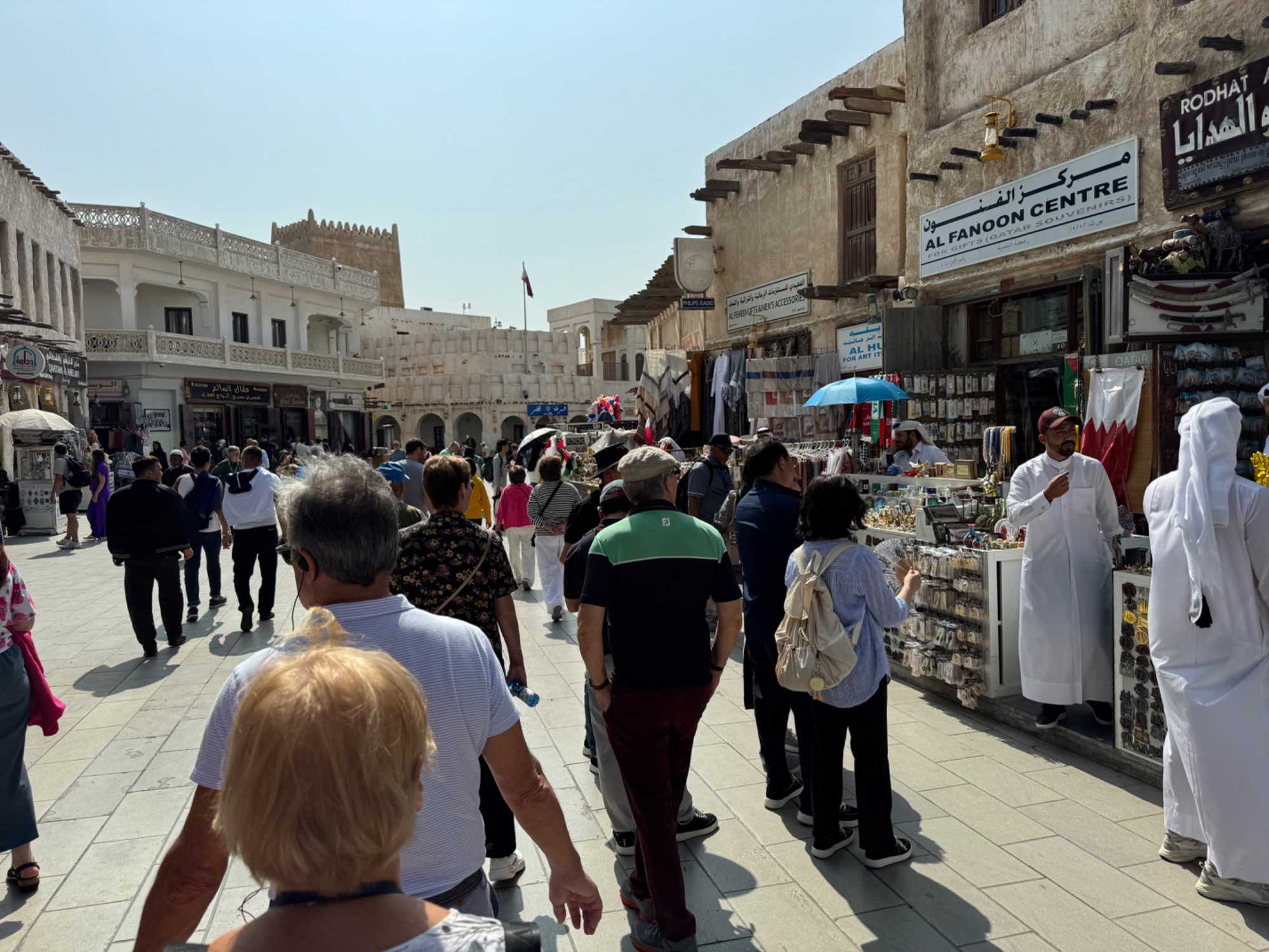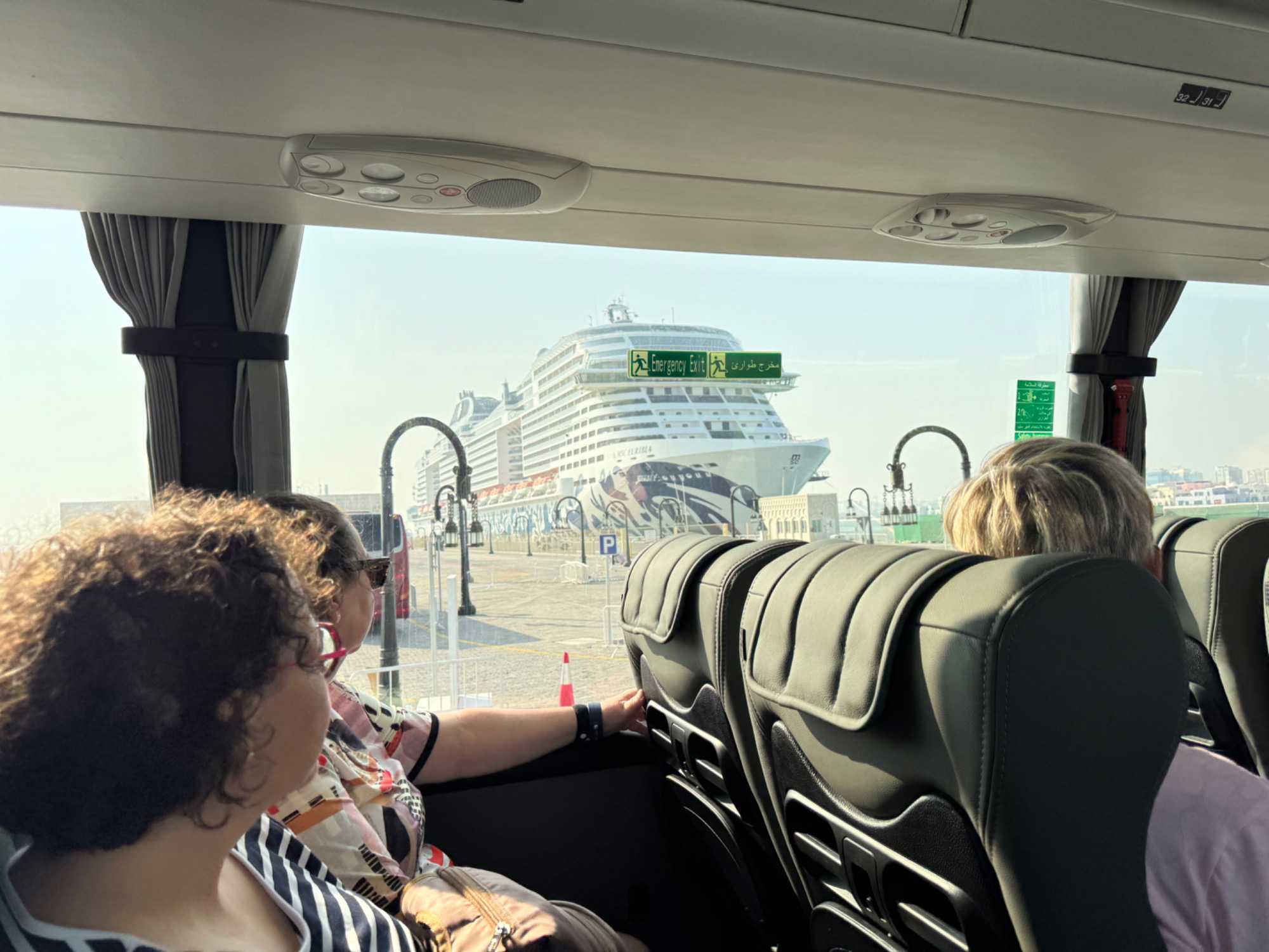 Après le déjeuner, nous nous retrouvons au pont 16 pour le départ de notre excursion. Fidèles au service attentionné du Yacht Club, nos majordomes nous accompagnent jusqu’au terminal, veillant au bon déroulement du débarquement. Le port de croisière de Doha impressionne par sa modernité, son organisation efficace et la qualité de son accueil, reflet d’un pays résolument tourné vers l’avenir et attaché à l’hospitalité.