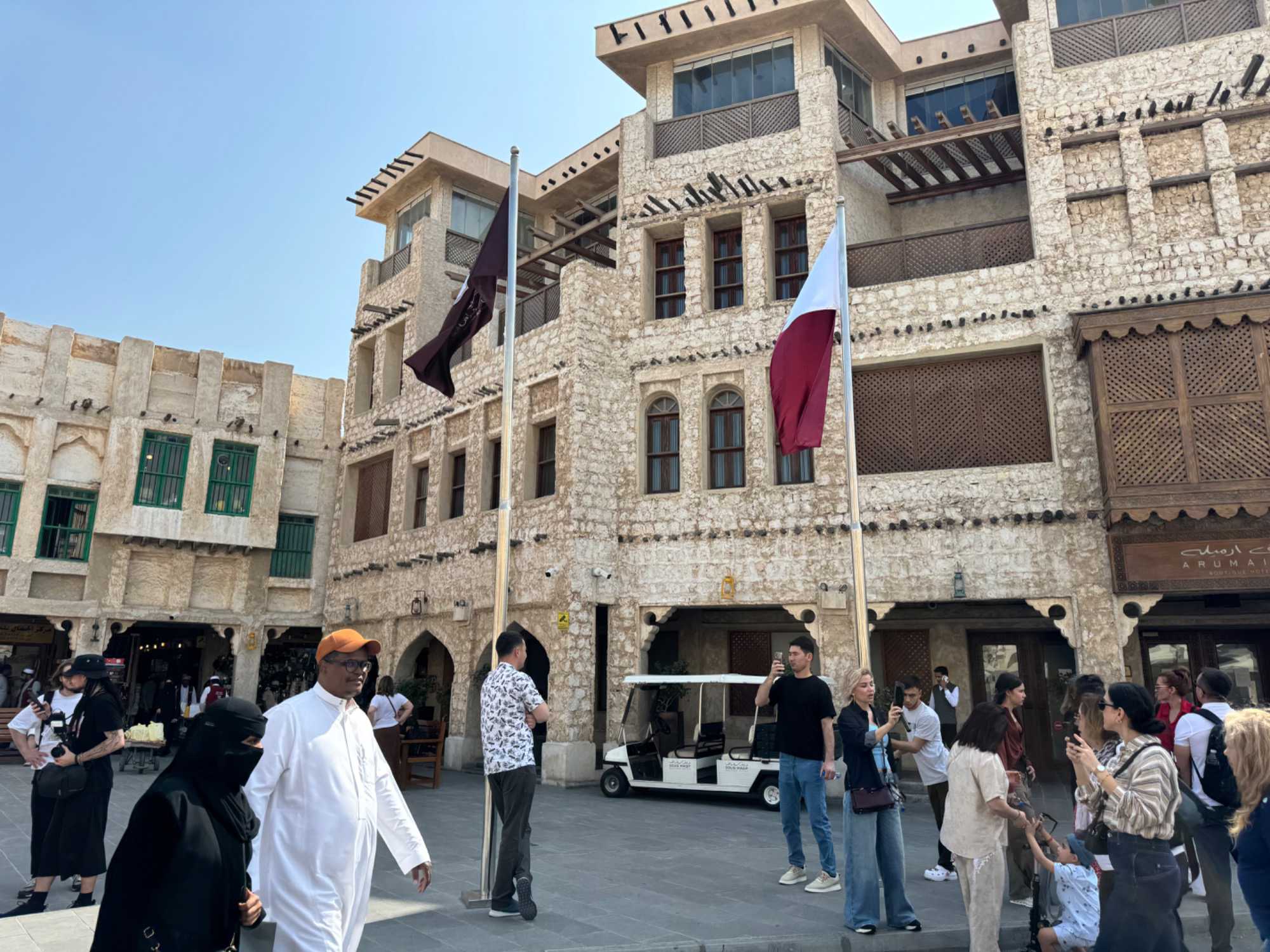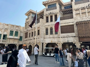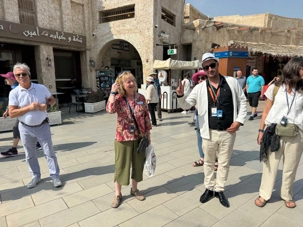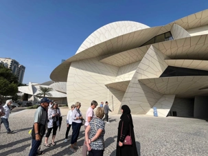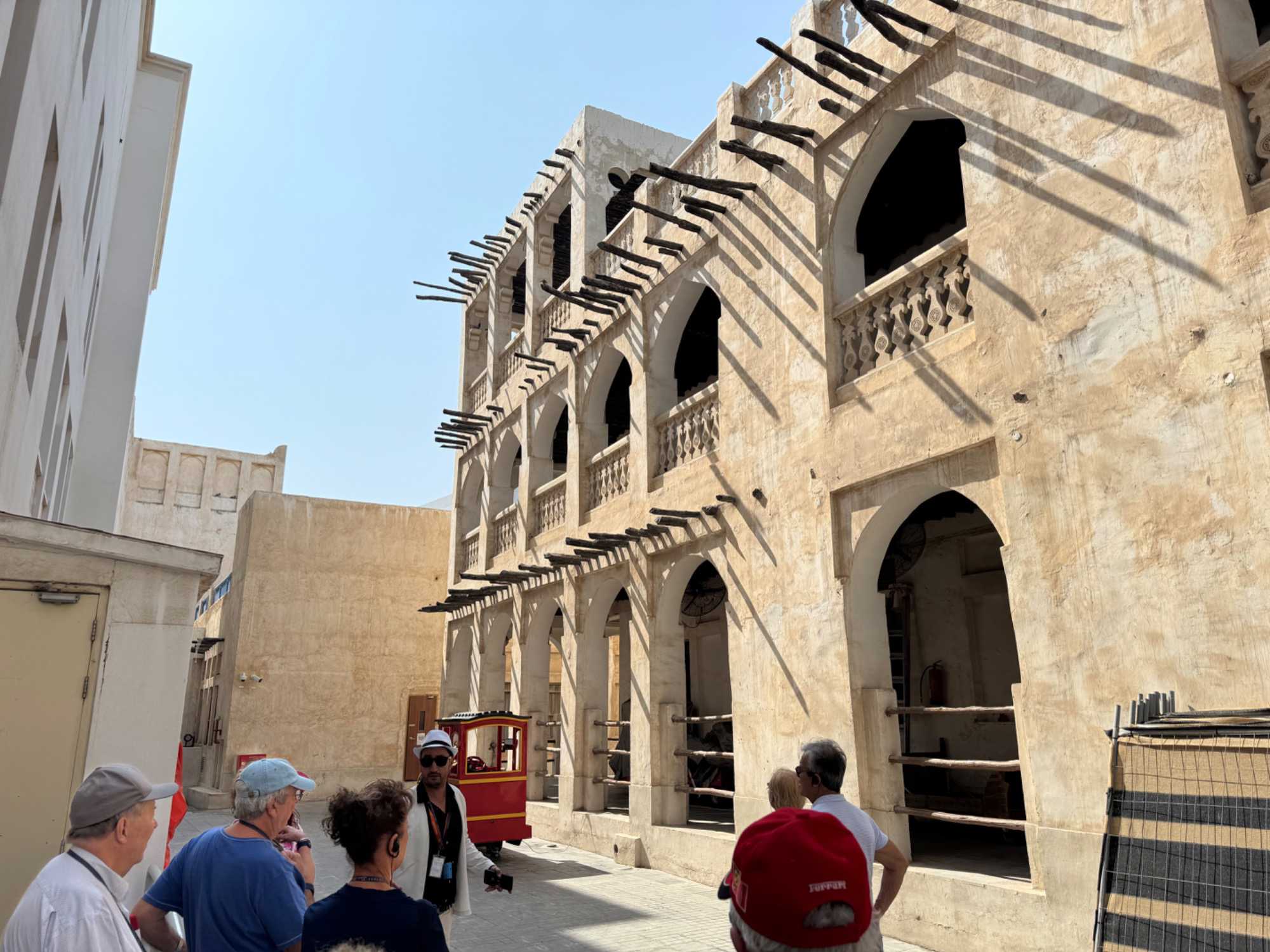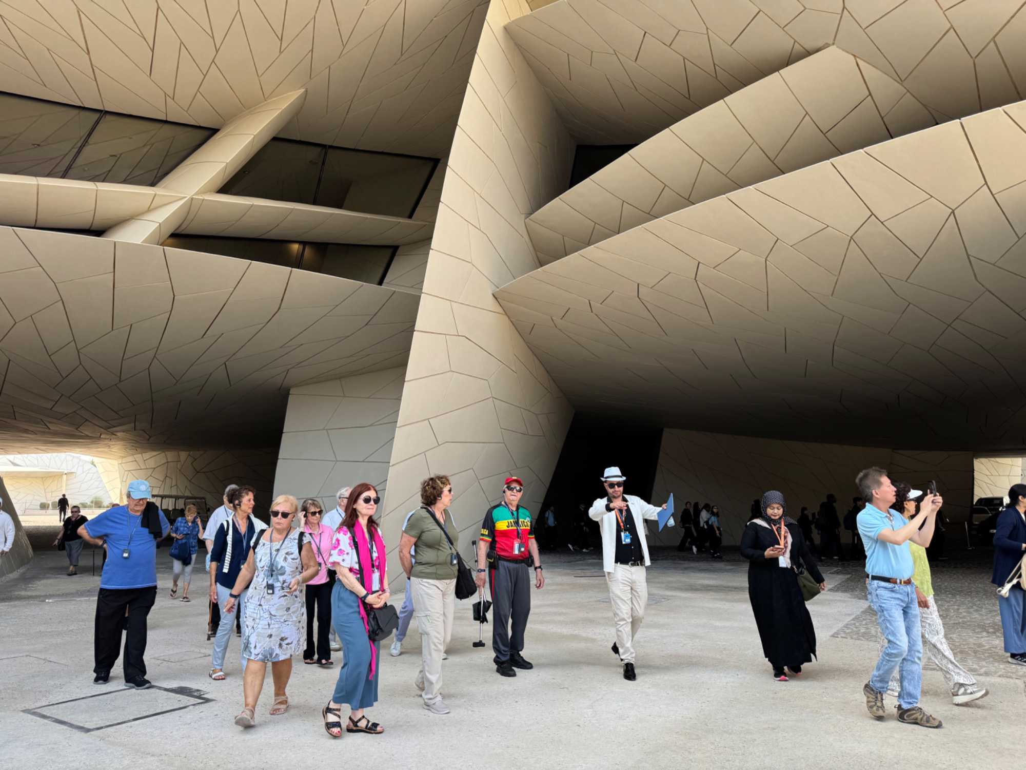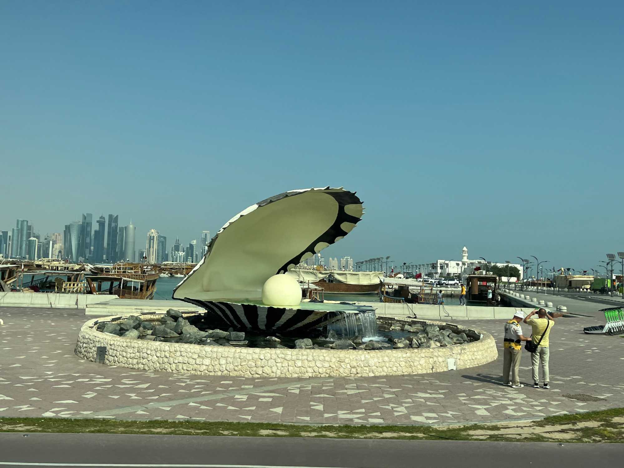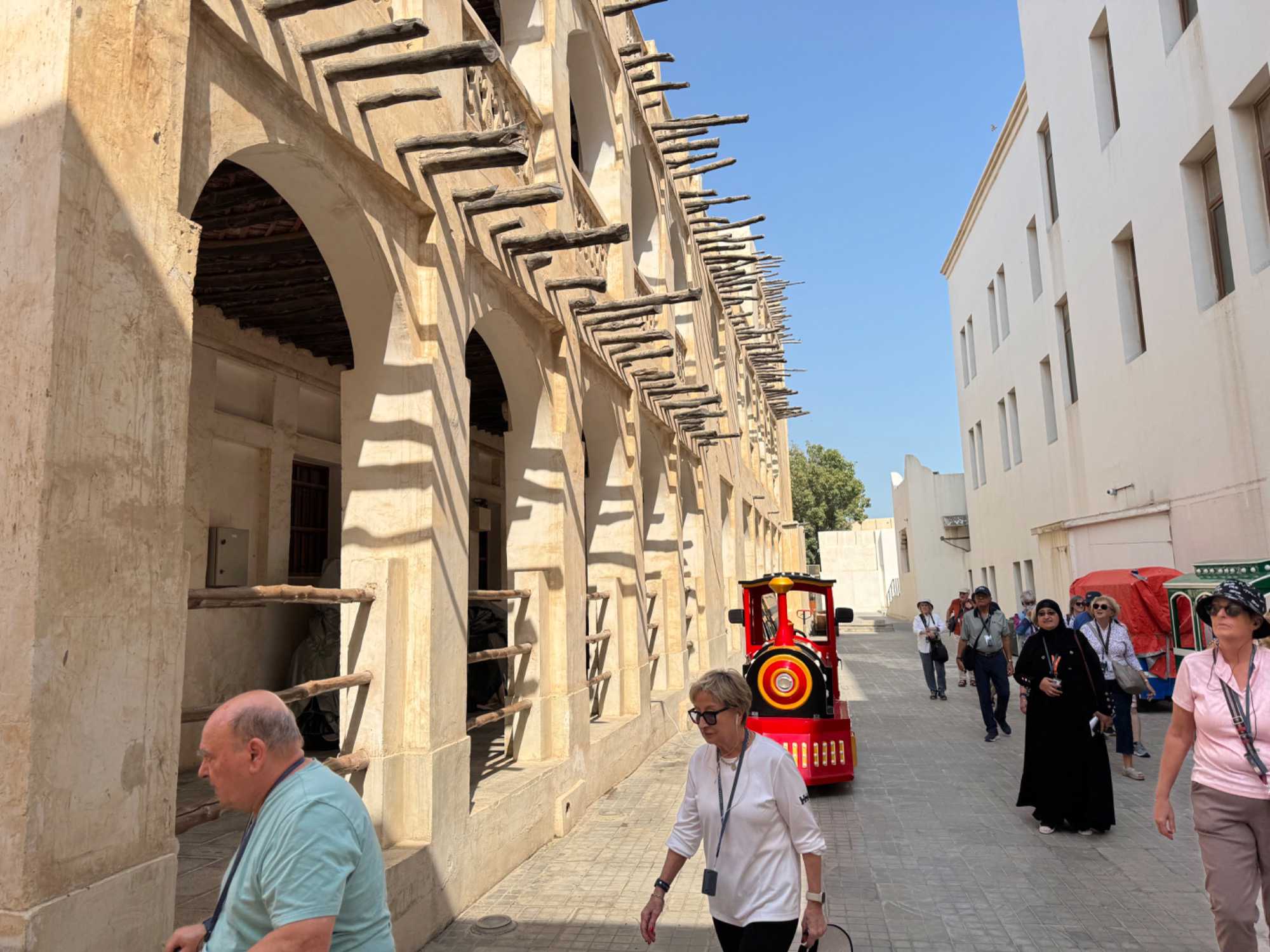 À l’entrée du terminal, nous faisons la rencontre de nos deux guides locaux, Naima et Ali, qui nous accompagneront tout au long de la journée. À bord de notre autocar, nous débutons la découverte de la ville. Dès les premières explications, nos guides nous retracent l’histoire du Qatar : des tribus bédouines et des villages de pêcheurs et de perliculture, à la dynastie Al Thani, jusqu’à la transformation spectaculaire du pays après la découverte du pétrole en 1939.