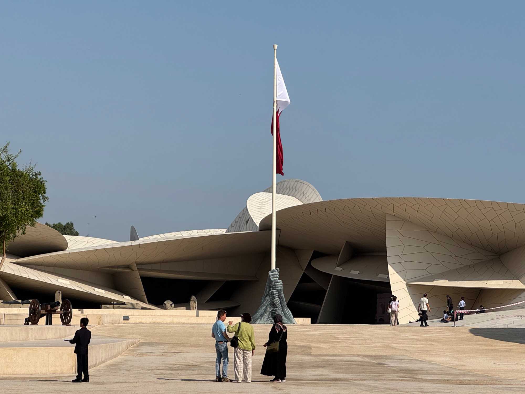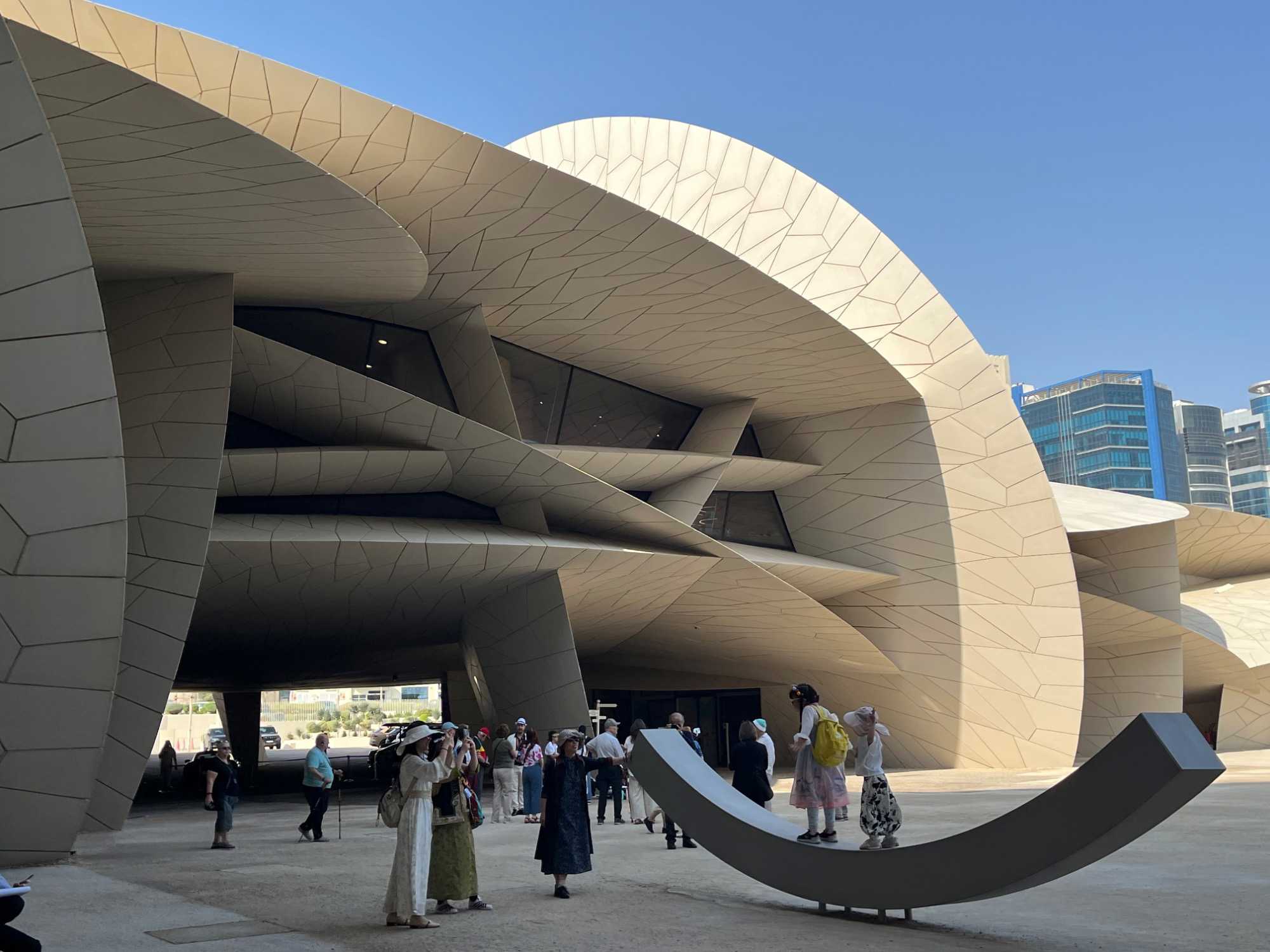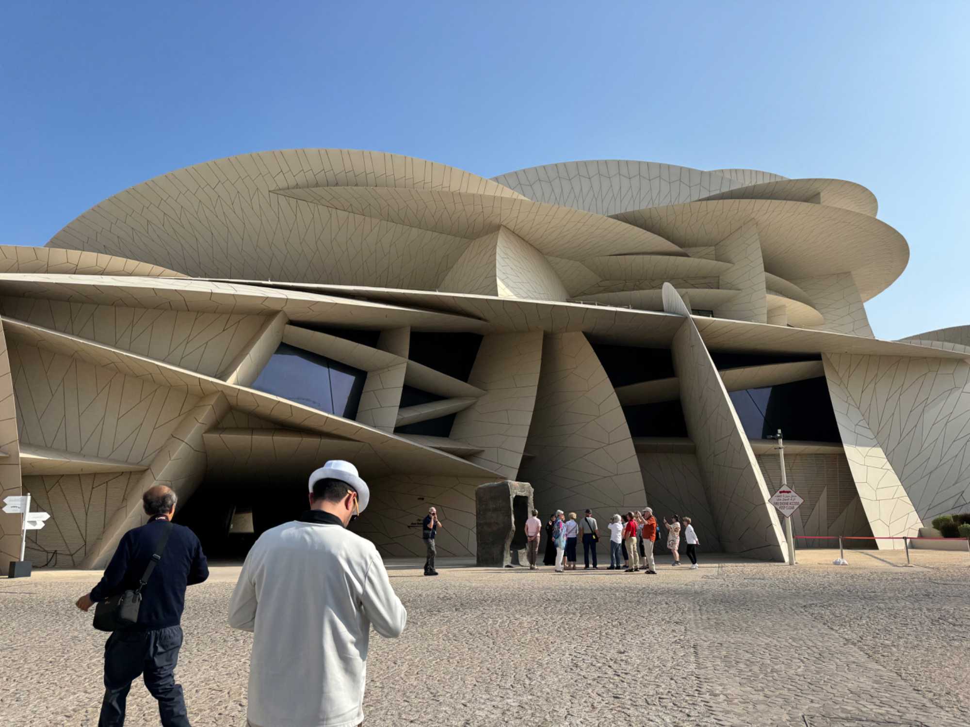 Notre première visite nous conduit au Musée national du Qatar, véritable chef-d’œuvre architectural conçu par l’architecte français Jean Nouvel. Inspiré de la rose des sables, le bâtiment incarne l’identité qatarienne, enracinée dans le désert et tournée vers l’avenir. À l’intérieur, les expositions immersives retracent la vie traditionnelle, le lien à la mer et au désert, ainsi que l’essor fulgurant du pays. La richesse des contenus et la scénographie moderne captivent immédiatement notre attention.
