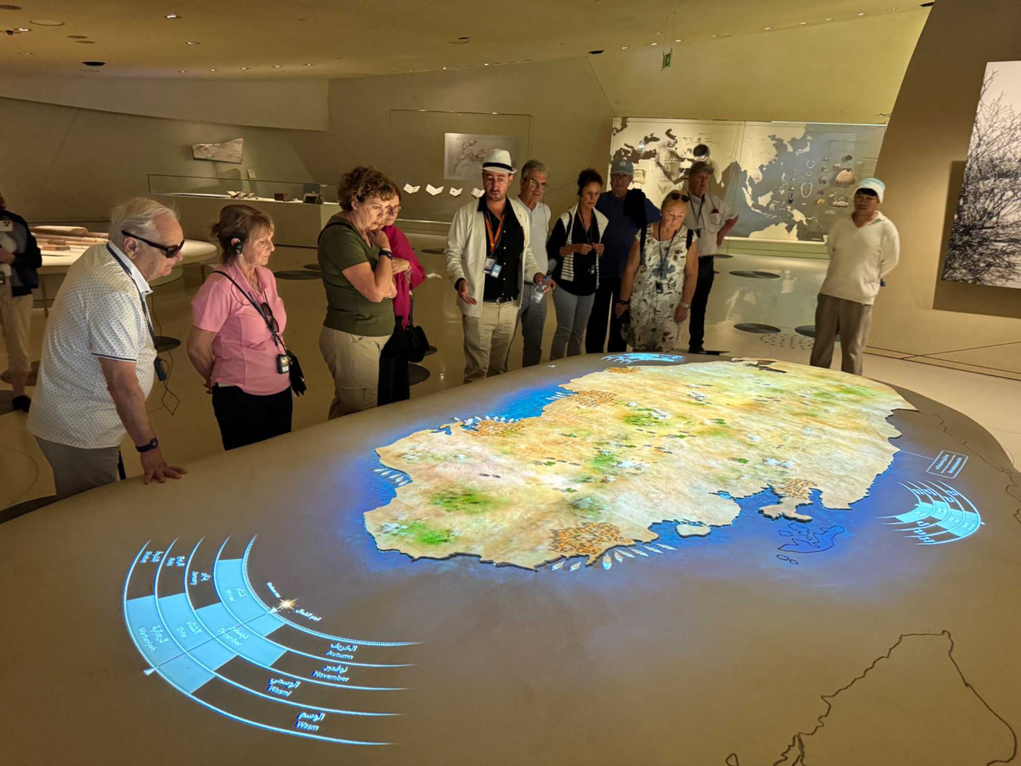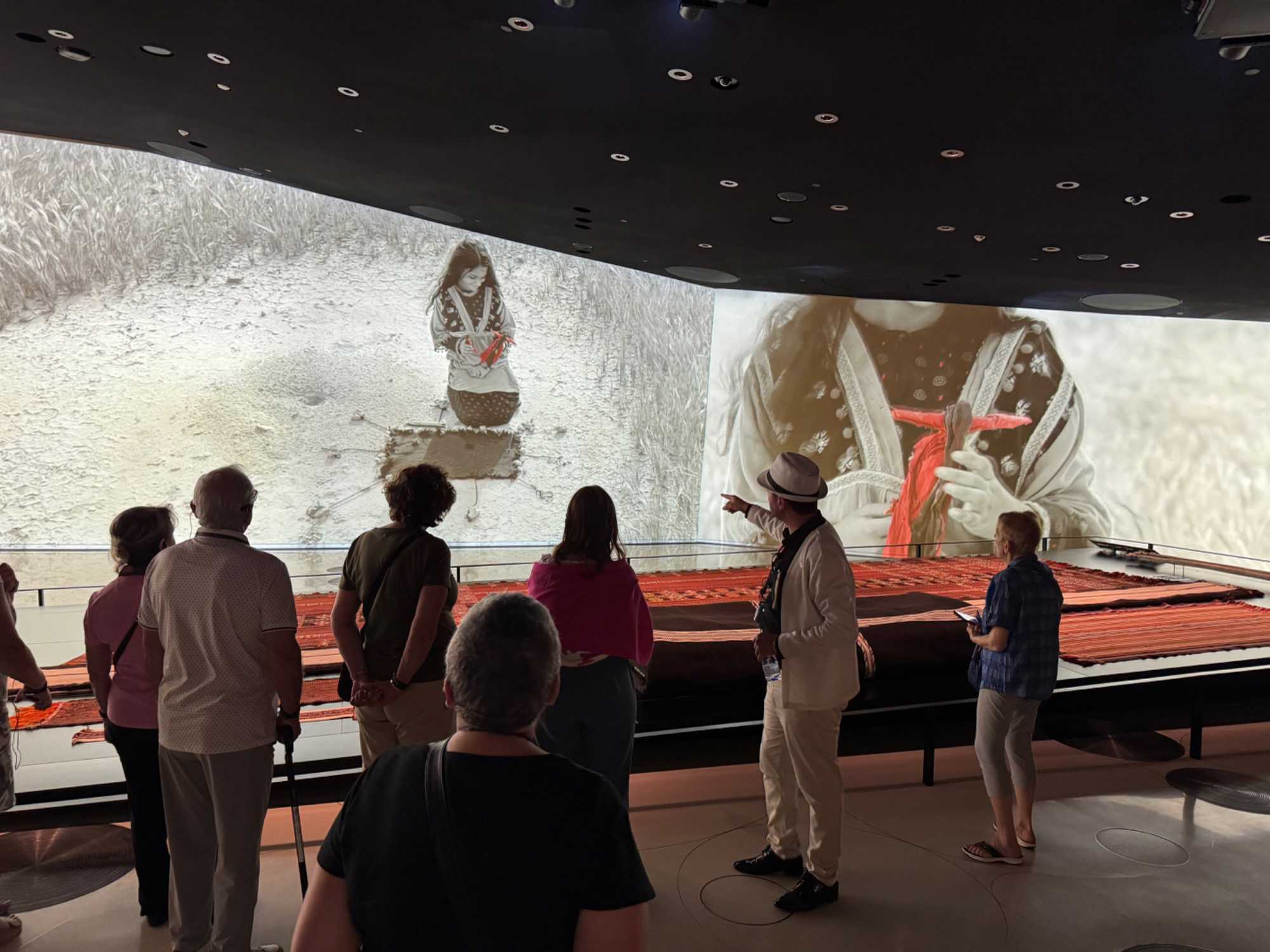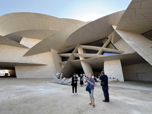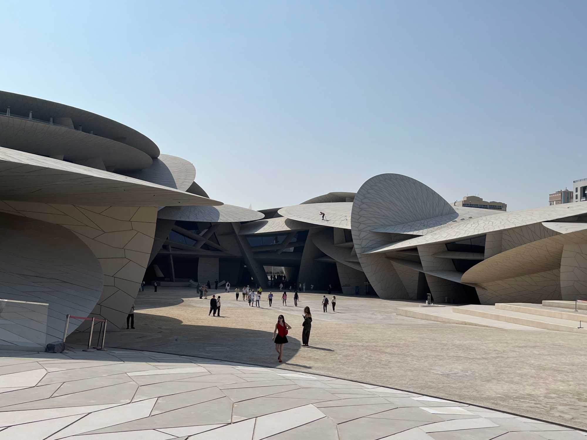 Notre première visite nous conduit au Musée national du Qatar, véritable chef-d’œuvre architectural conçu par l’architecte français Jean Nouvel. Inspiré de la rose des sables, le bâtiment incarne l’identité qatarienne, enracinée dans le désert et tournée vers l’avenir. À l’intérieur, les expositions immersives retracent la vie traditionnelle, le lien à la mer et au désert, ainsi que l’essor fulgurant du pays. La richesse des contenus et la scénographie moderne captivent immédiatement notre attention.