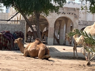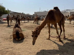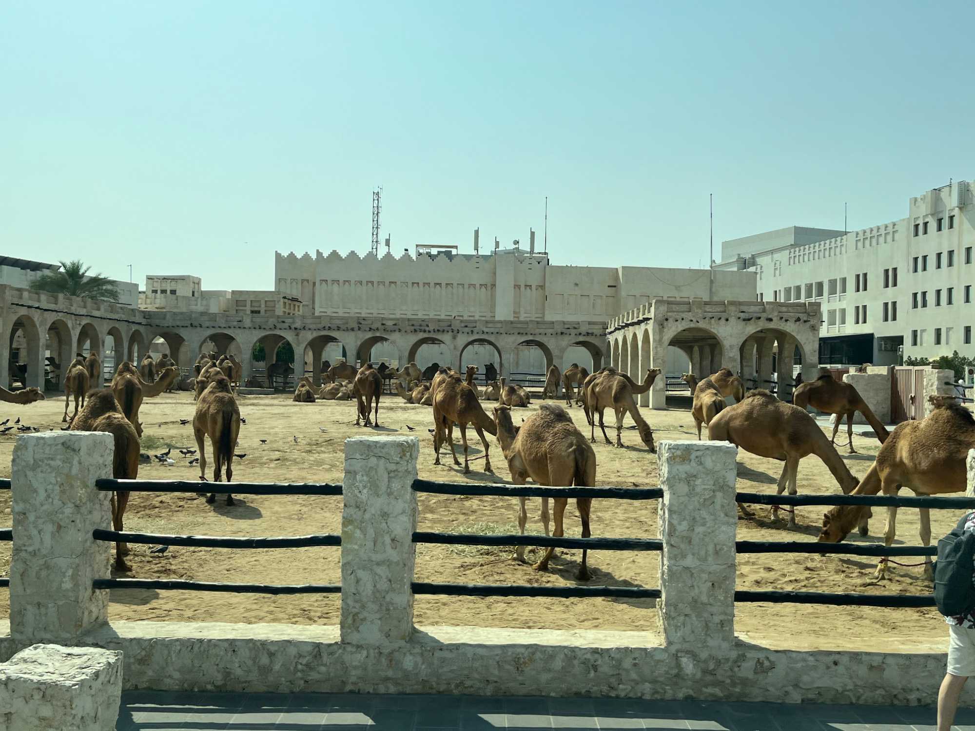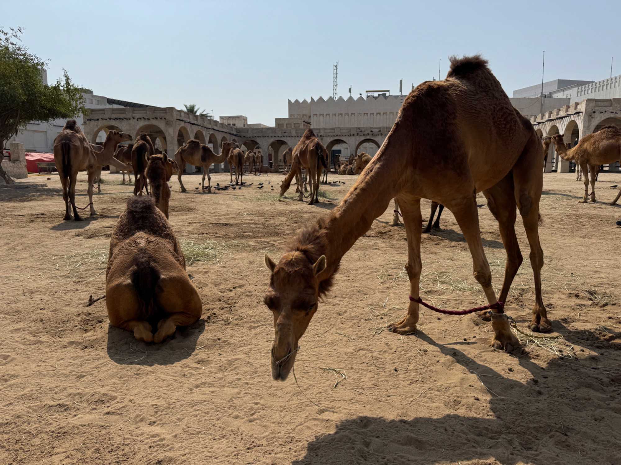 En chemin vers le Souk Wagif, nous faisons un petit détour pour nous permettre d’observer des dromadaires, animaux emblématiques du désert, et d’en apprendre davantage sur leur rôle et leur adaptation à cet environnement extrême.
