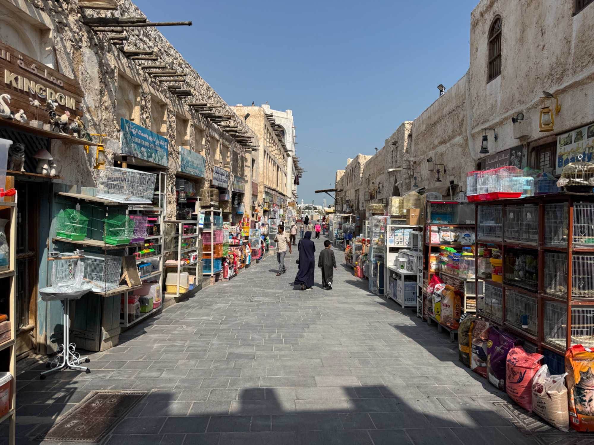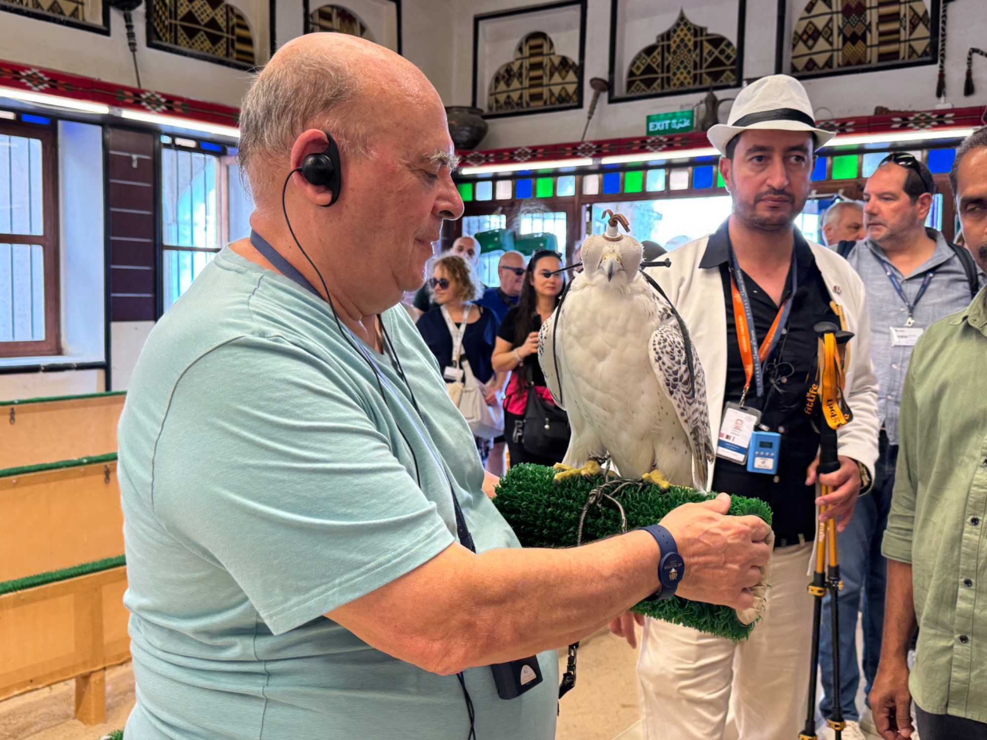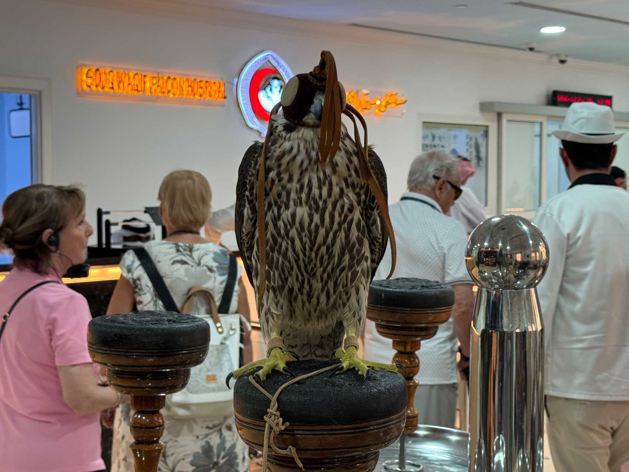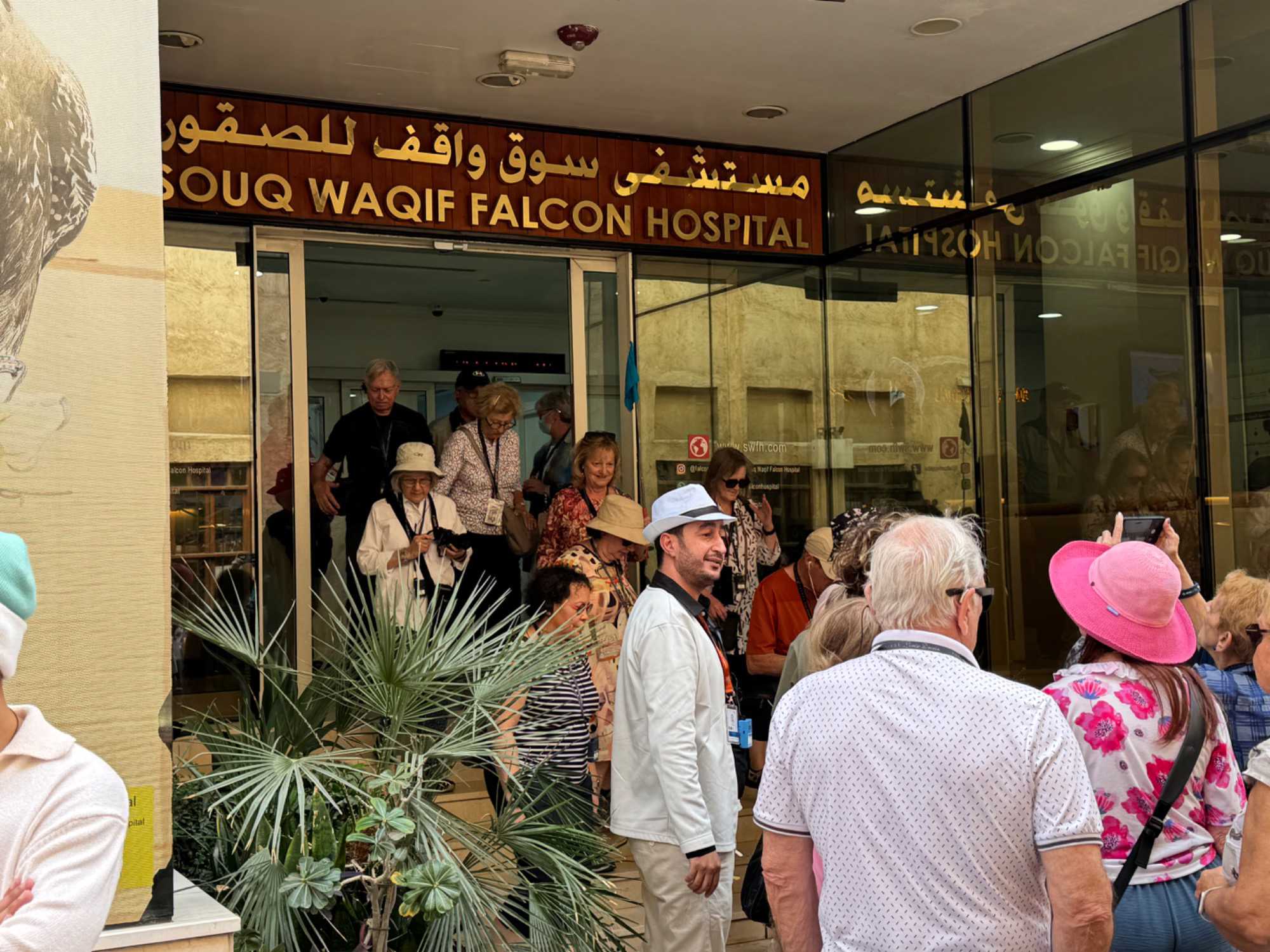 Nous rejoignons ensuite le Souq Waqif, véritable cœur historique et culturel de Doha, où nous passons une grande partie de l’après-midi. Dès l’entrée, l’ambiance change radicalement : ruelles animées, étals d’épices, tissus colorés, parfums d’encens et artisanat local éveillent tous les sens. Le souk offre une atmosphère authentique et vibrante, contrastant agréablement avec les quartiers ultramodernes de la ville. La visite guidée nous mène notamment au marché aux faucons, l’un des moments forts de la journée. Ces oiseaux majestueux, symboles de noblesse et de fierté nationale, occupent une place centrale dans la culture qatarienne. La fauconnerie, transmise depuis des siècles, est bien plus qu’un loisir : c’est un art. Nous apprenons que chaque faucon possède son propre passeport et peut voyager en cabine à bord des compagnies aériennes du Golfe. Selon les disponibilités, la visite de l’hôpital des faucons, entièrement dédié à leurs soins, nous impressionne par le niveau d’attention et de modernité accordé à ces oiseaux d’exception.