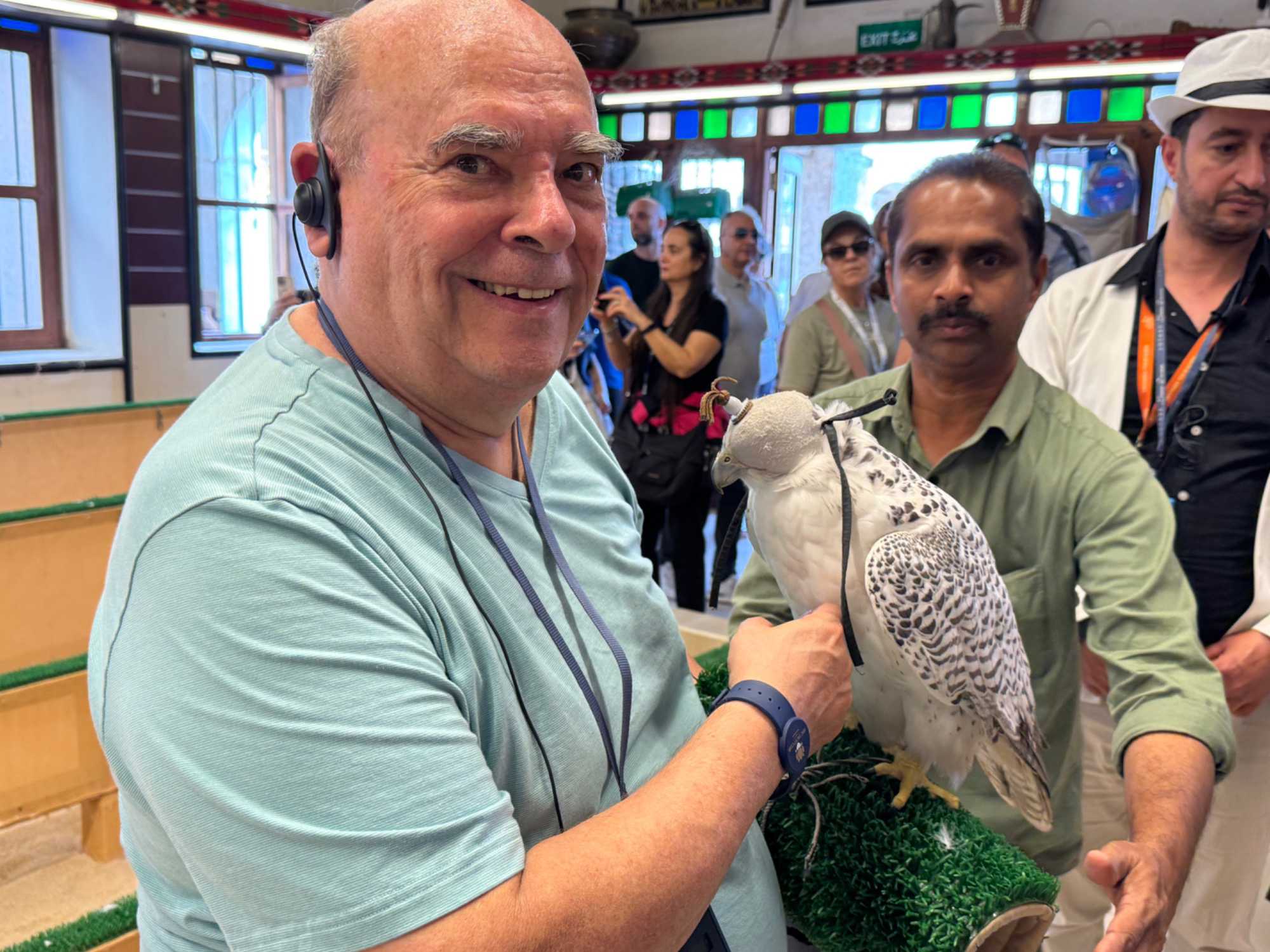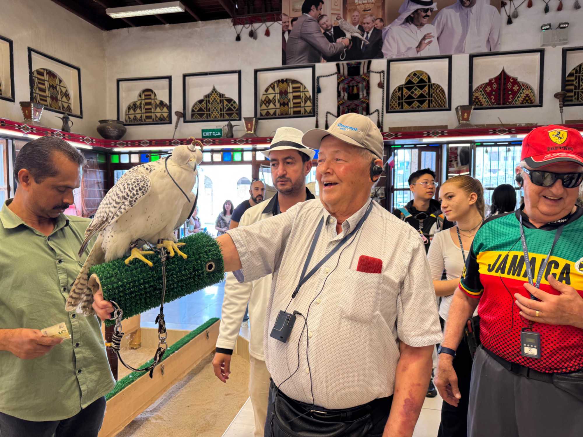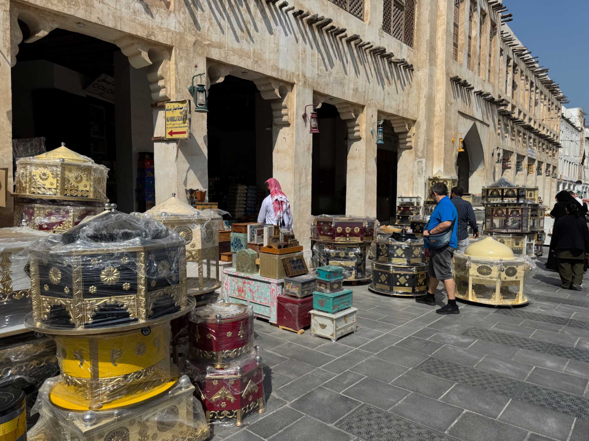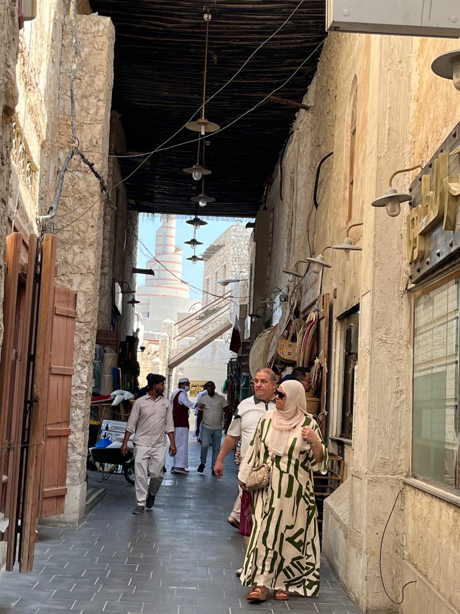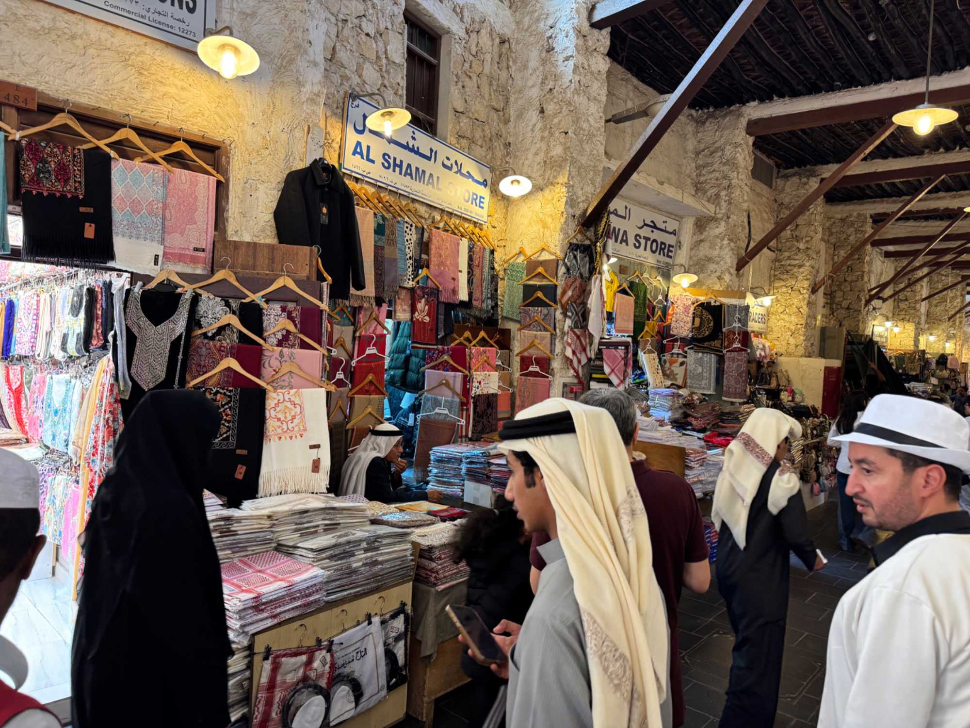 Nous rejoignons ensuite le Souq Waqif, véritable cœur historique et culturel de Doha, où nous passons une grande partie de l’après-midi. Dès l’entrée, l’ambiance change radicalement : ruelles animées, étals d’épices, tissus colorés, parfums d’encens et artisanat local éveillent tous les sens. Le souk offre une atmosphère authentique et vibrante, contrastant agréablement avec les quartiers ultramodernes de la ville. La visite guidée nous mène notamment au marché aux faucons, l’un des moments forts de la journée. Ces oiseaux majestueux, symboles de noblesse et de fierté nationale, occupent une place centrale dans la culture qatarienne. La fauconnerie, transmise depuis des siècles, est bien plus qu’un loisir : c’est un art. Nous apprenons que chaque faucon possède son propre passeport et peut voyager en cabine à bord des compagnies aériennes du Golfe. Selon les disponibilités, la visite de l’hôpital des faucons, entièrement dédié à leurs soins, nous impressionne par le niveau d’attention et de modernité accordé à ces oiseaux d’exception.