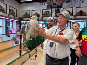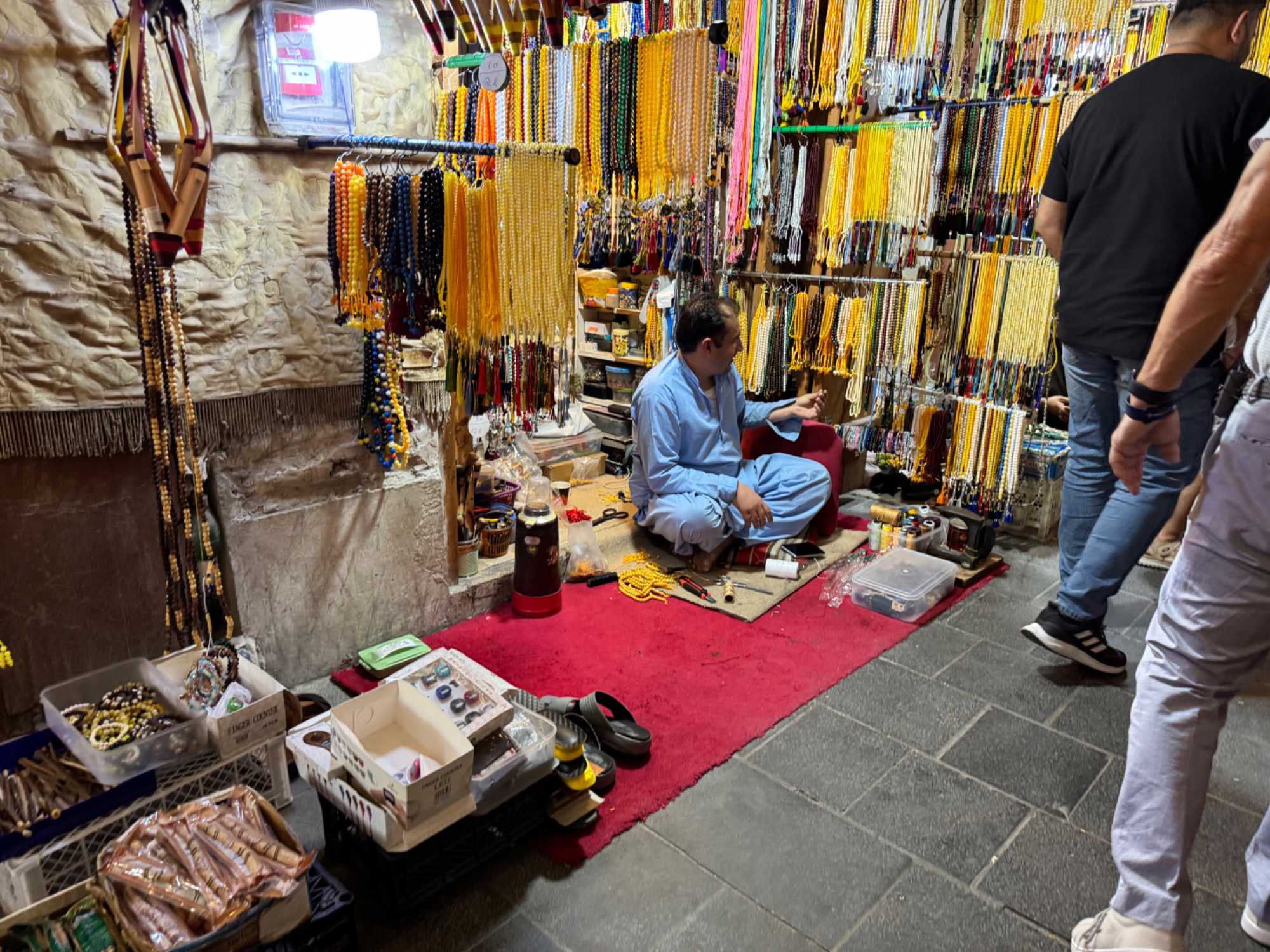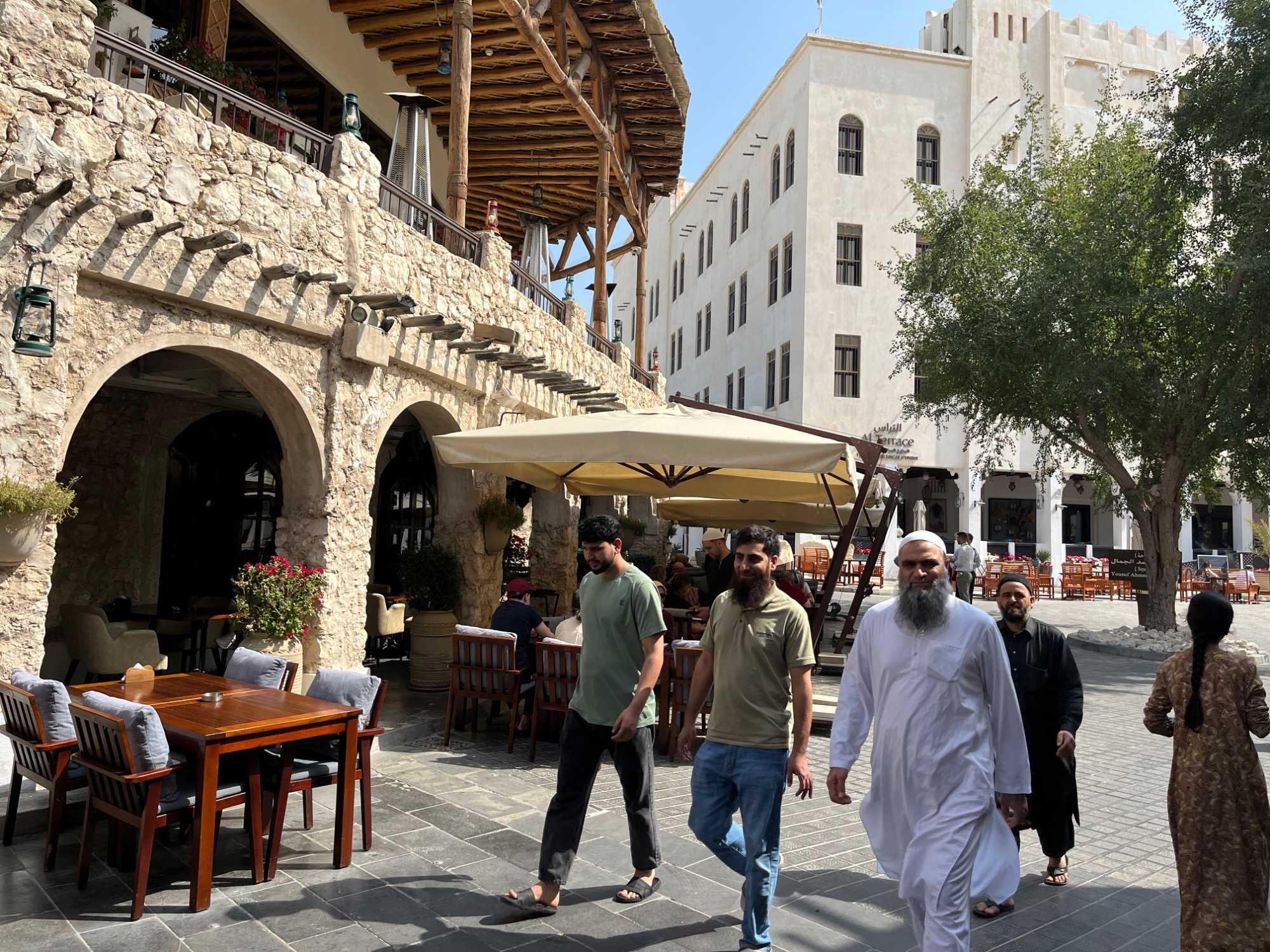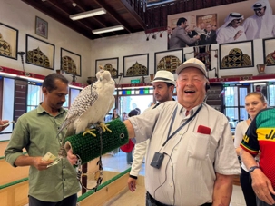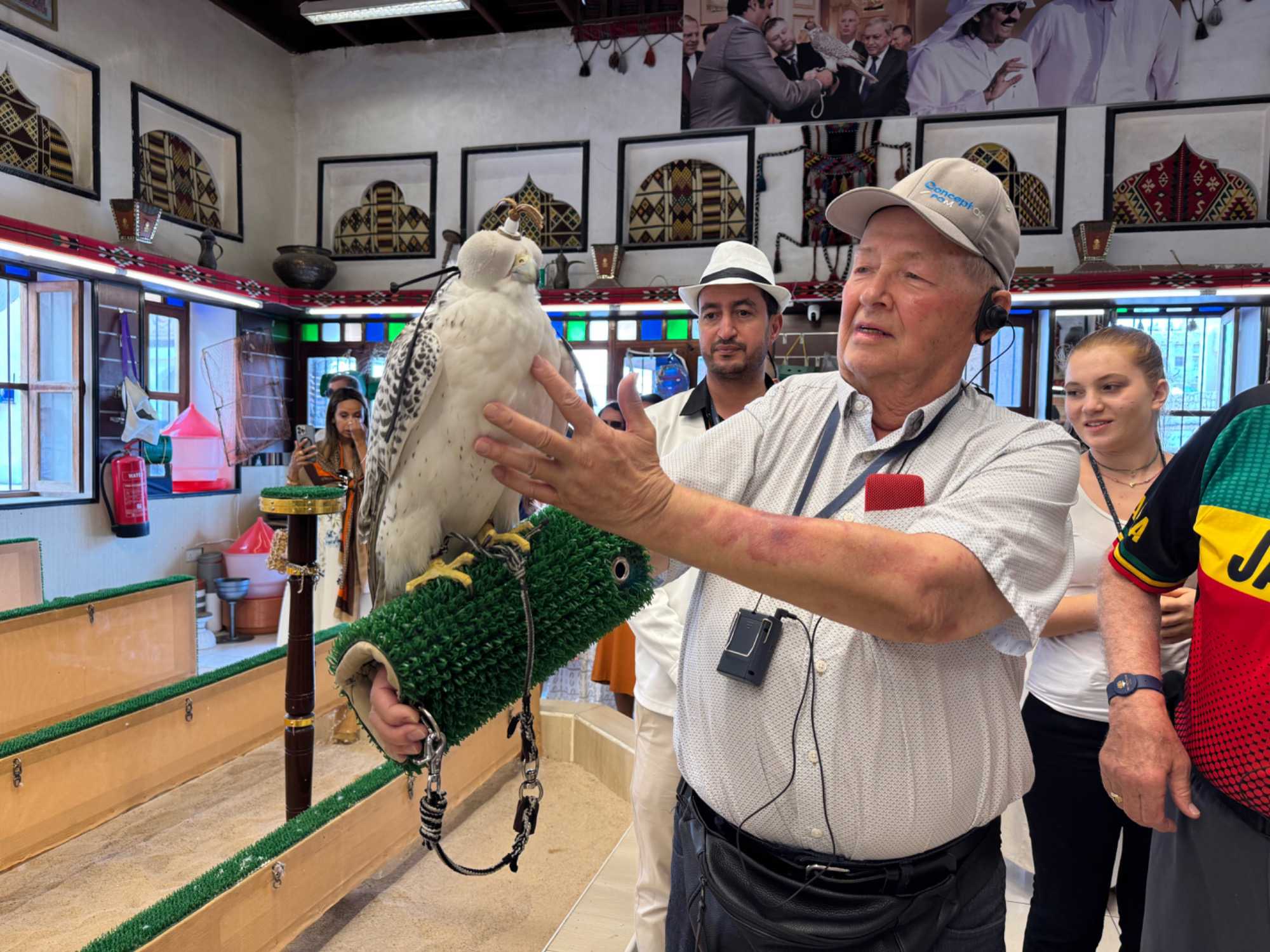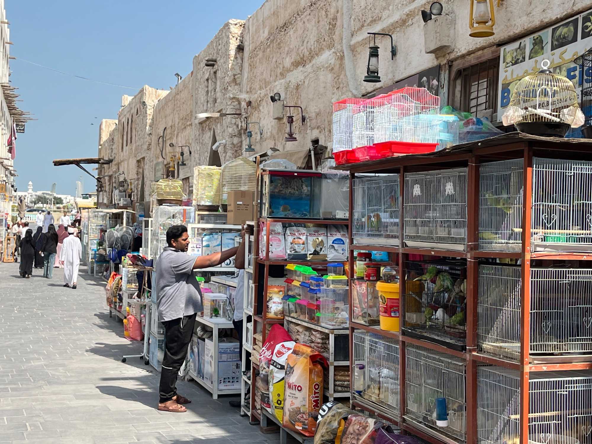 Nous rejoignons ensuite le Souq Waqif, véritable cœur historique et culturel de Doha, où nous passons une grande partie de l’après-midi. Dès l’entrée, l’ambiance change radicalement : ruelles animées, étals d’épices, tissus colorés, parfums d’encens et artisanat local éveillent tous les sens. Le souk offre une atmosphère authentique et vibrante, contrastant agréablement avec les quartiers ultramodernes de la ville. La visite guidée nous mène notamment au marché aux faucons, l’un des moments forts de la journée. Ces oiseaux majestueux, symboles de noblesse et de fierté nationale, occupent une place centrale dans la culture qatarienne. La fauconnerie, transmise depuis des siècles, est bien plus qu’un loisir : c’est un art. Nous apprenons que chaque faucon possède son propre passeport et peut voyager en cabine à bord des compagnies aériennes du Golfe. Selon les disponibilités, la visite de l’hôpital des faucons, entièrement dédié à leurs soins, nous impressionne par le niveau d’attention et de modernité accordé à ces oiseaux d’exception.