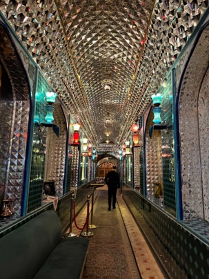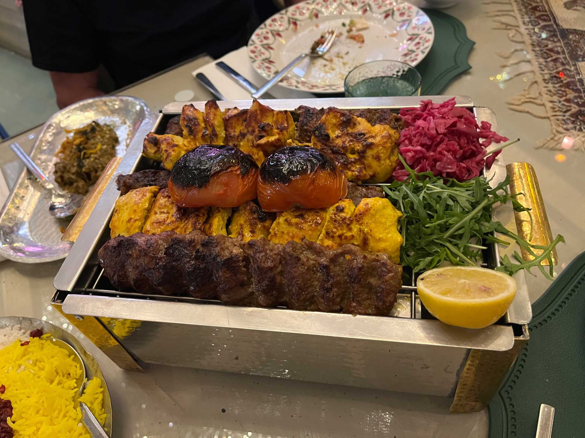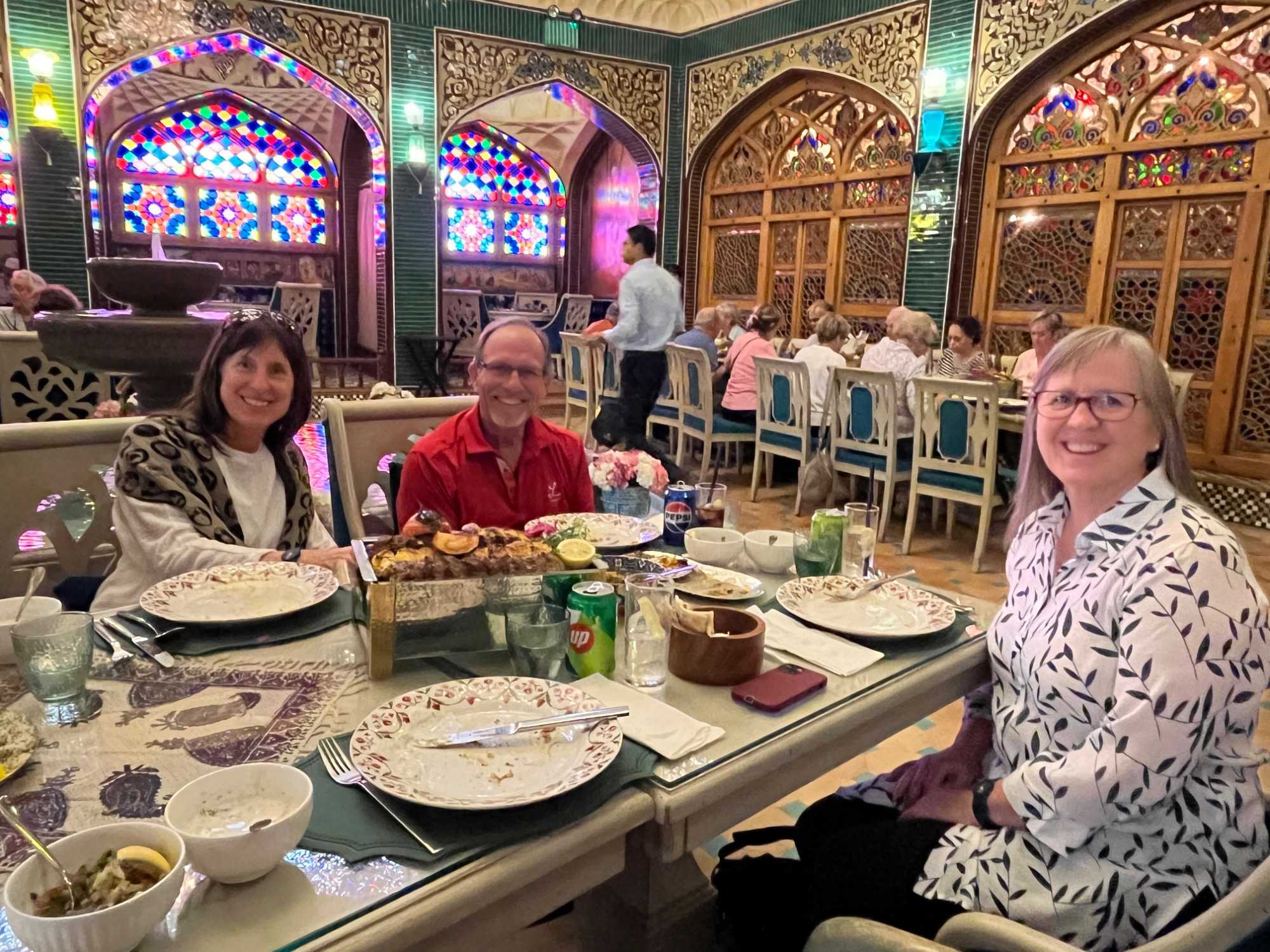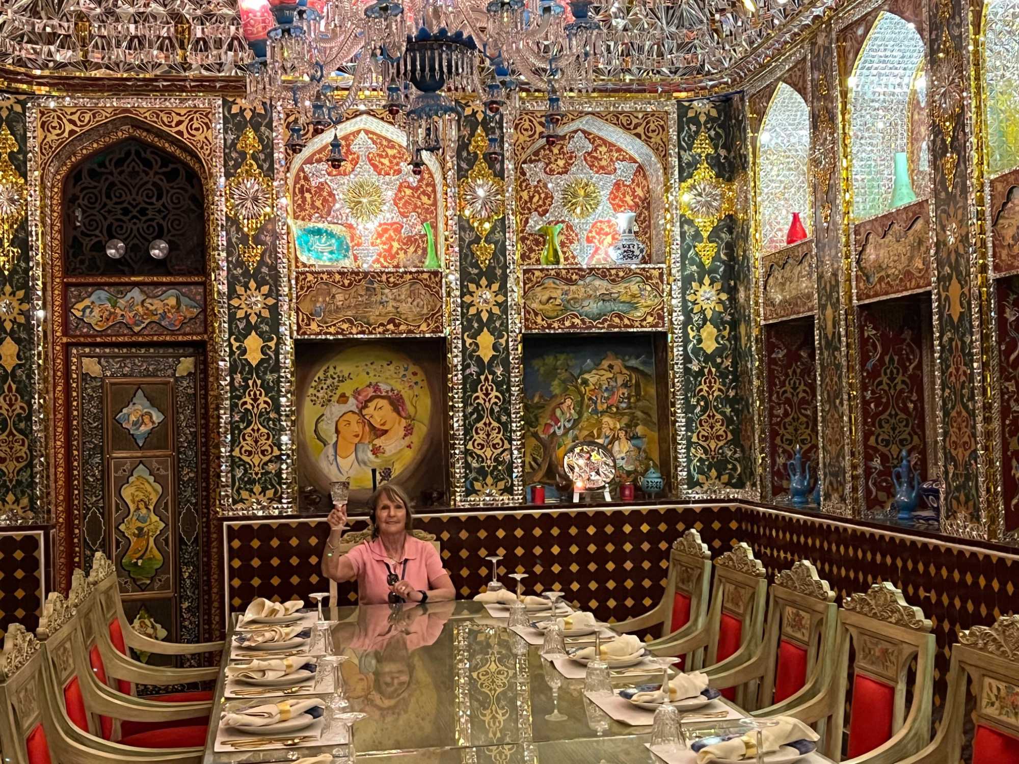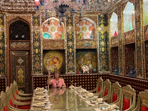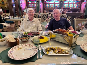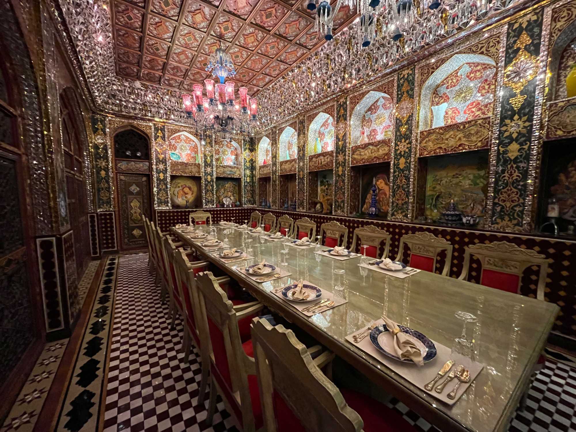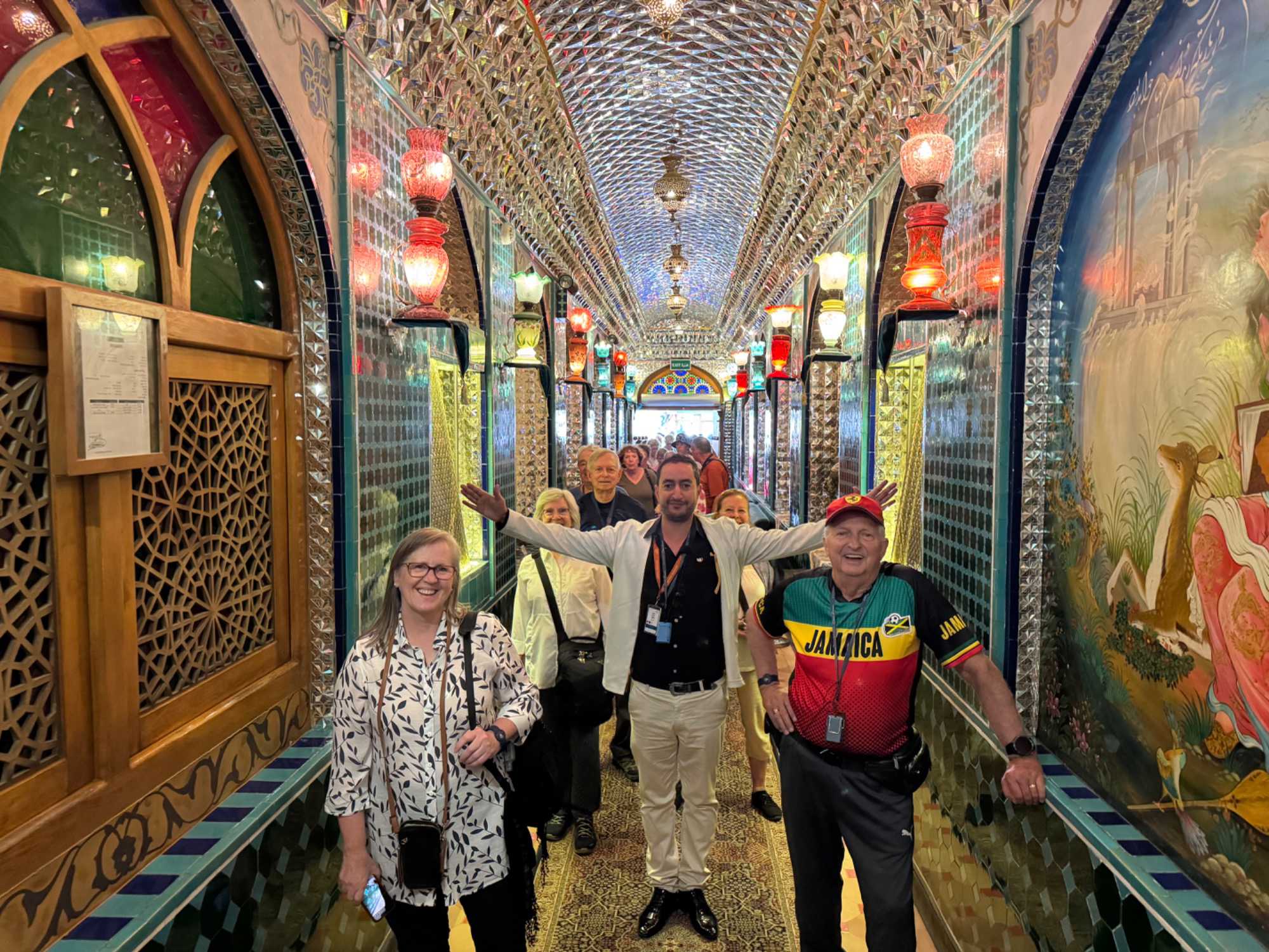À 13 h, nous partageons le dîner au restaurant Parisa, situé au cœur du souk. Le décor somptueux, richement orné de mosaïques, de miroirs et de détails raffinés, impressionne autant que la cuisine. Les saveurs persanes, délicates et parfumées, font de ce repas un moment particulièrement apprécié par tout le groupe.