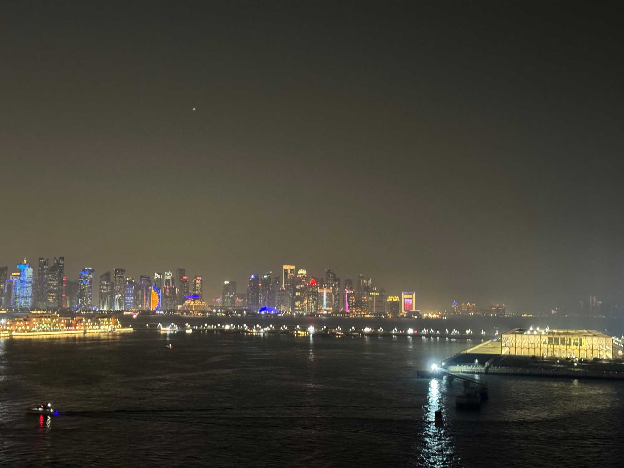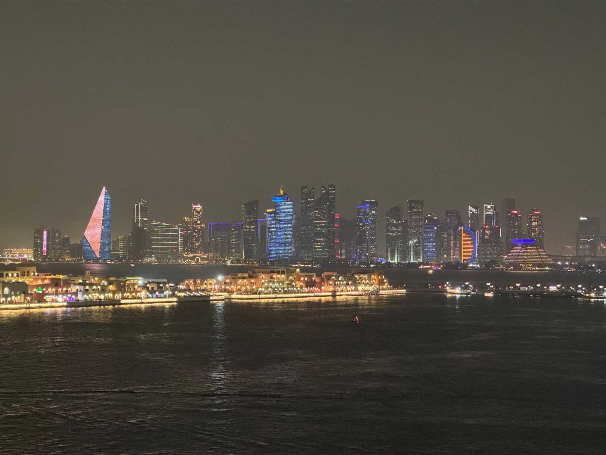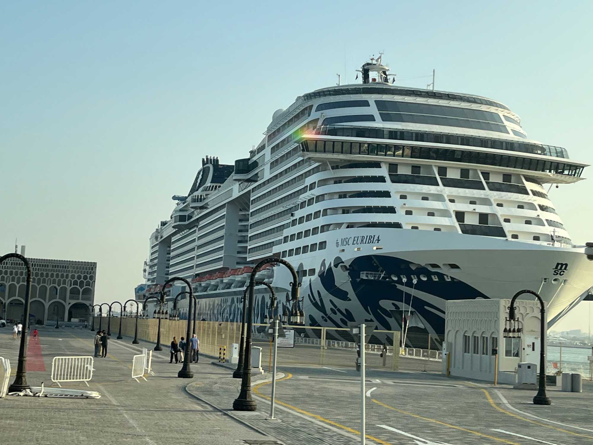 Ce matin, nous nous réveillons à bord du MSC Euribia alors que le navire approche doucement de Doha, la capitale du Qatar. Depuis le pont, le spectacle est déjà saisissant : le bleu profond du golfe Persique contraste avec les teintes sableuses du désert, tandis qu’à l’horizon se dessine une ville audacieuse, moderne et élégante.