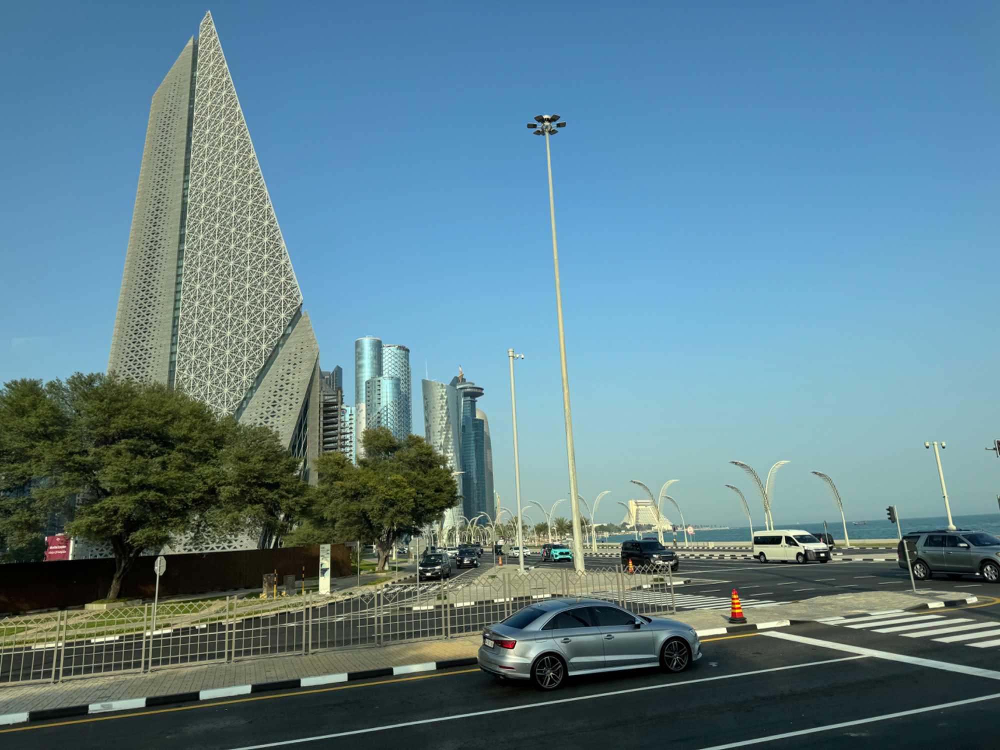 En fin d’après-midi, nous reprenons la route en direction du port de Doha. Cette dernière traversée de la ville nous offre un ultime regard sur ses quartiers modernes et élégants, témoins de l’ambition et du dynamisme du pays.