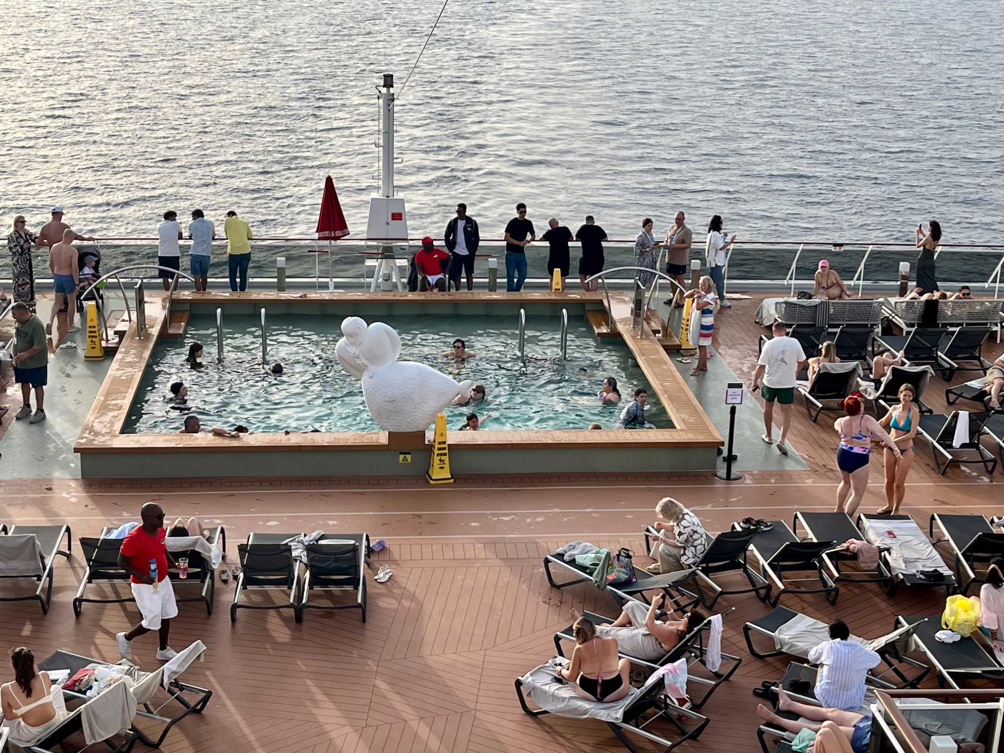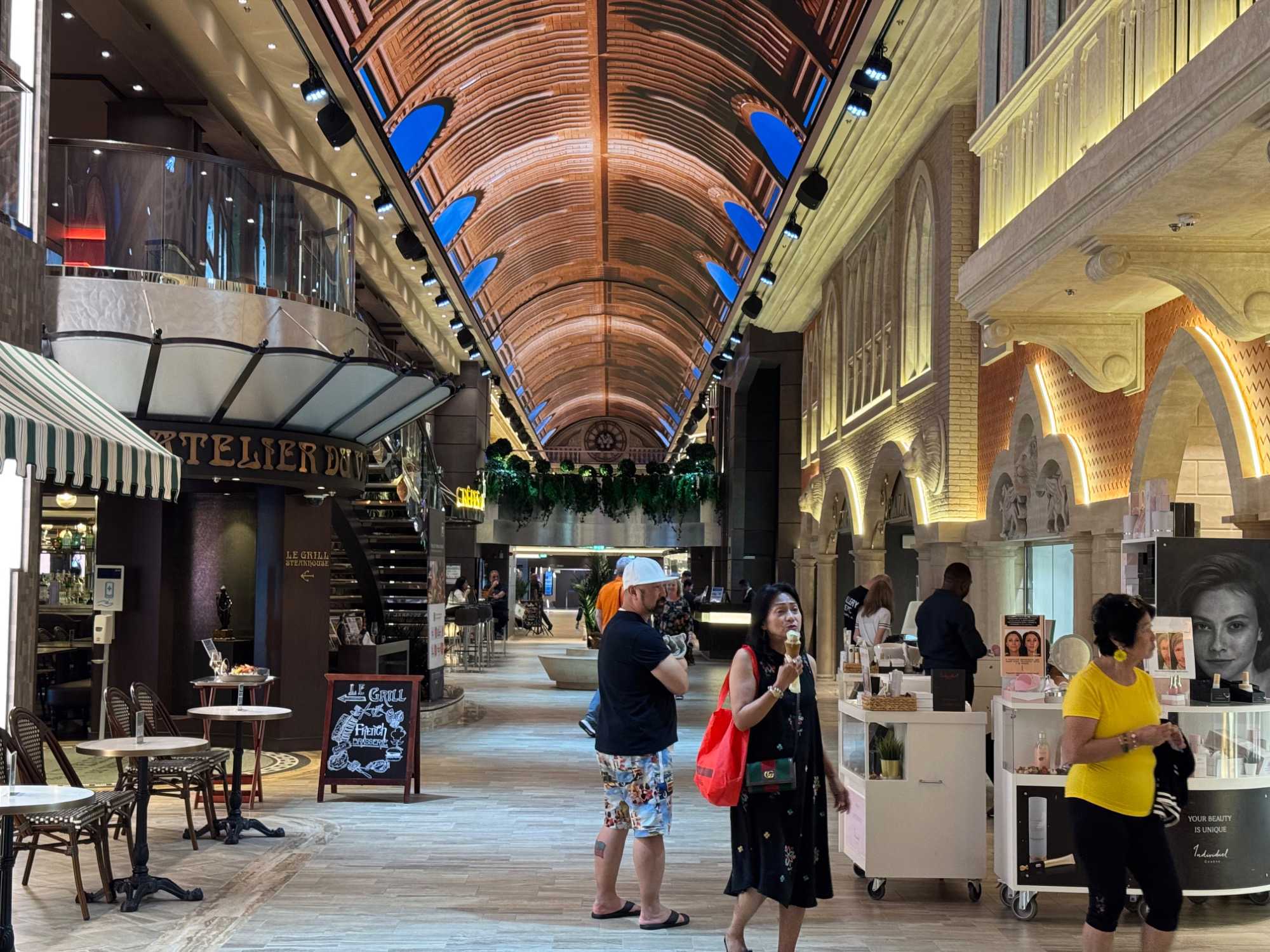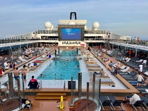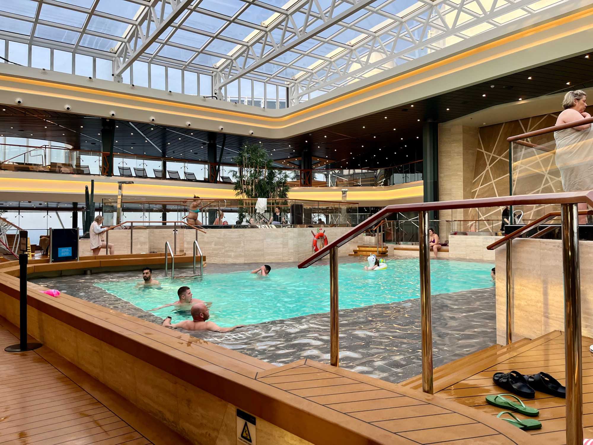 Le dîner se déroule ensuite dans une ambiance décontractée et conviviale au restaurant du Yacht Club. Les échanges vont bon train, chacun partageant ses impressions sur la croisière, le navire et la qualité remarquable du service. L’après-midi se poursuit tout en douceur : chaises longues au soleil, piscine, spa ou moments de repos dans les suites. La mer est d’un calme absolu et le temps semble suspendu.