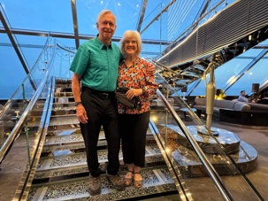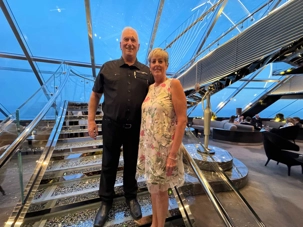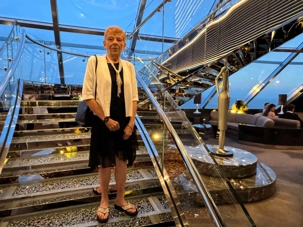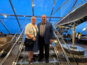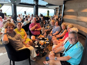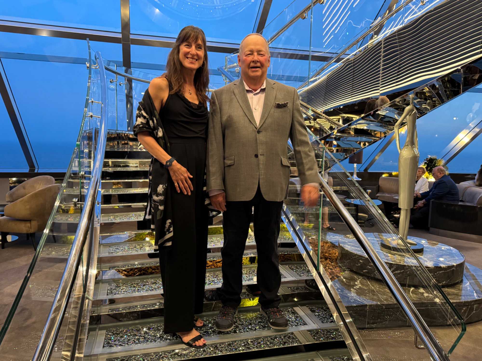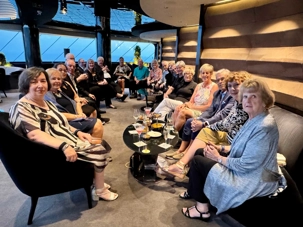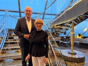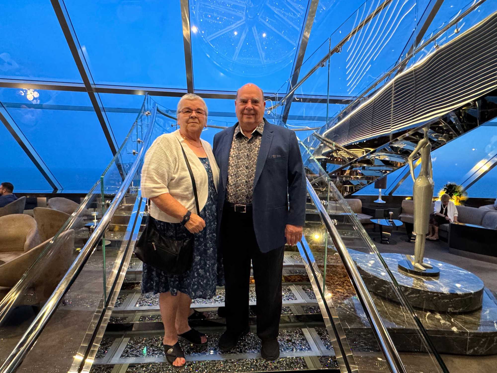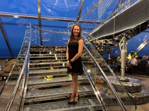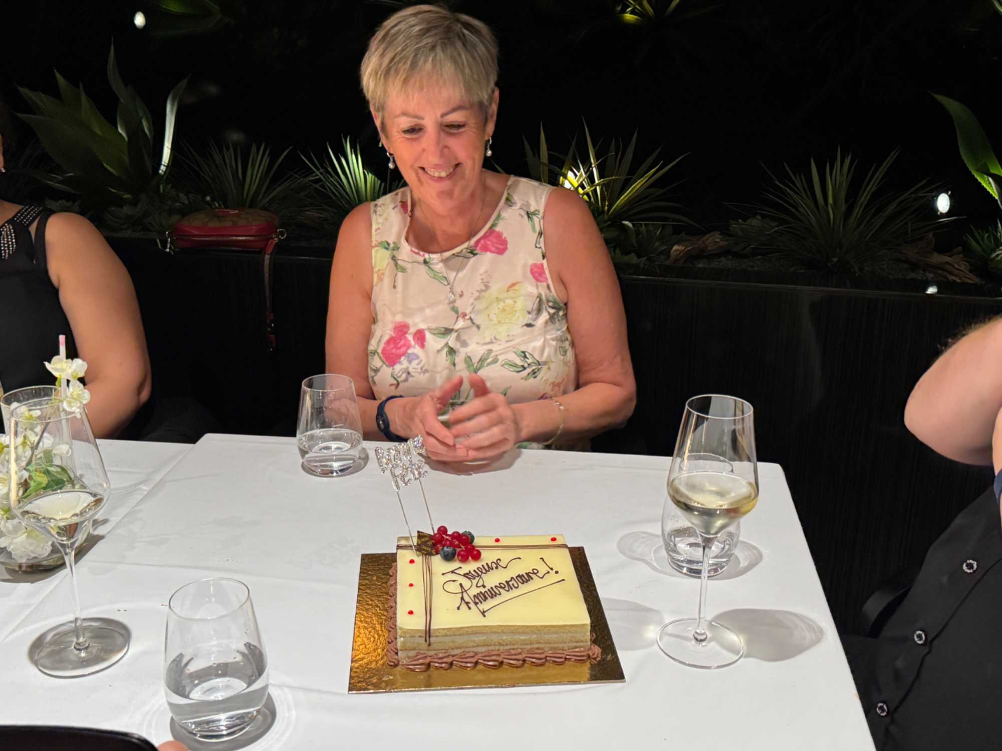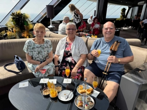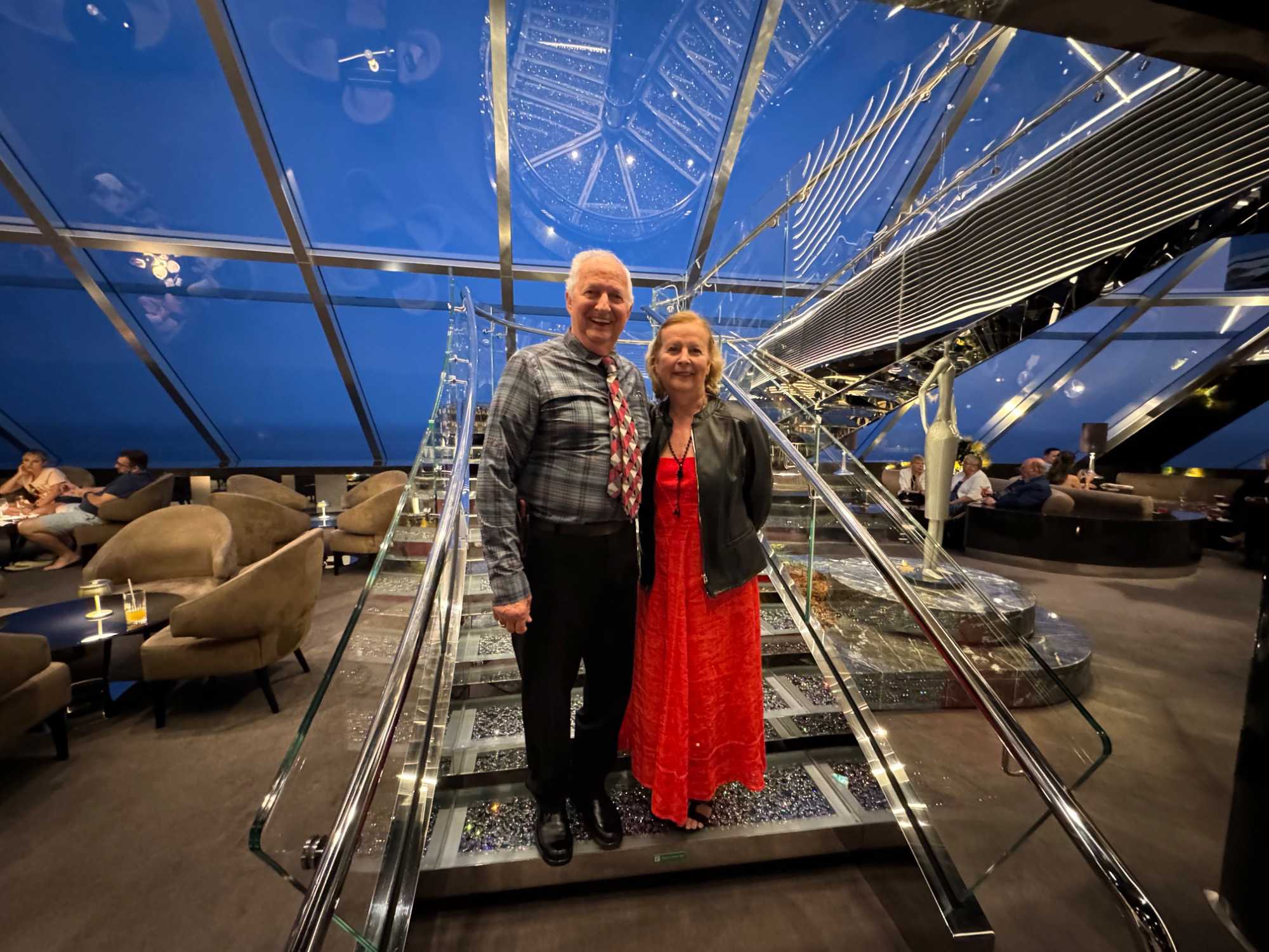 En soirée, le navire se pare d’une atmosphère raffinée pour la soirée chic. Les salons et le restaurant du Yacht Club vibrent d’une ambiance festive et distinguée. Le souper, soigneusement préparé, est à la hauteur de l’événement, tant par la qualité des plats que par l’excellence du service. Au moment du dessert, une attention toute spéciale vient émouvoir la table : nos serveurs offrent un magnifique gâteau d’anniversaire à Danielle, qui célèbre aujourd’hui sa fête. Un moment chaleureux et joyeux, partagé dans les applaudissements et la bonne humeur.