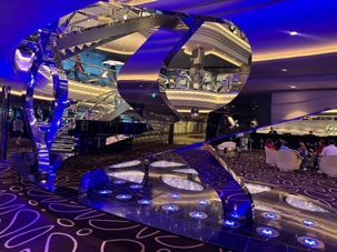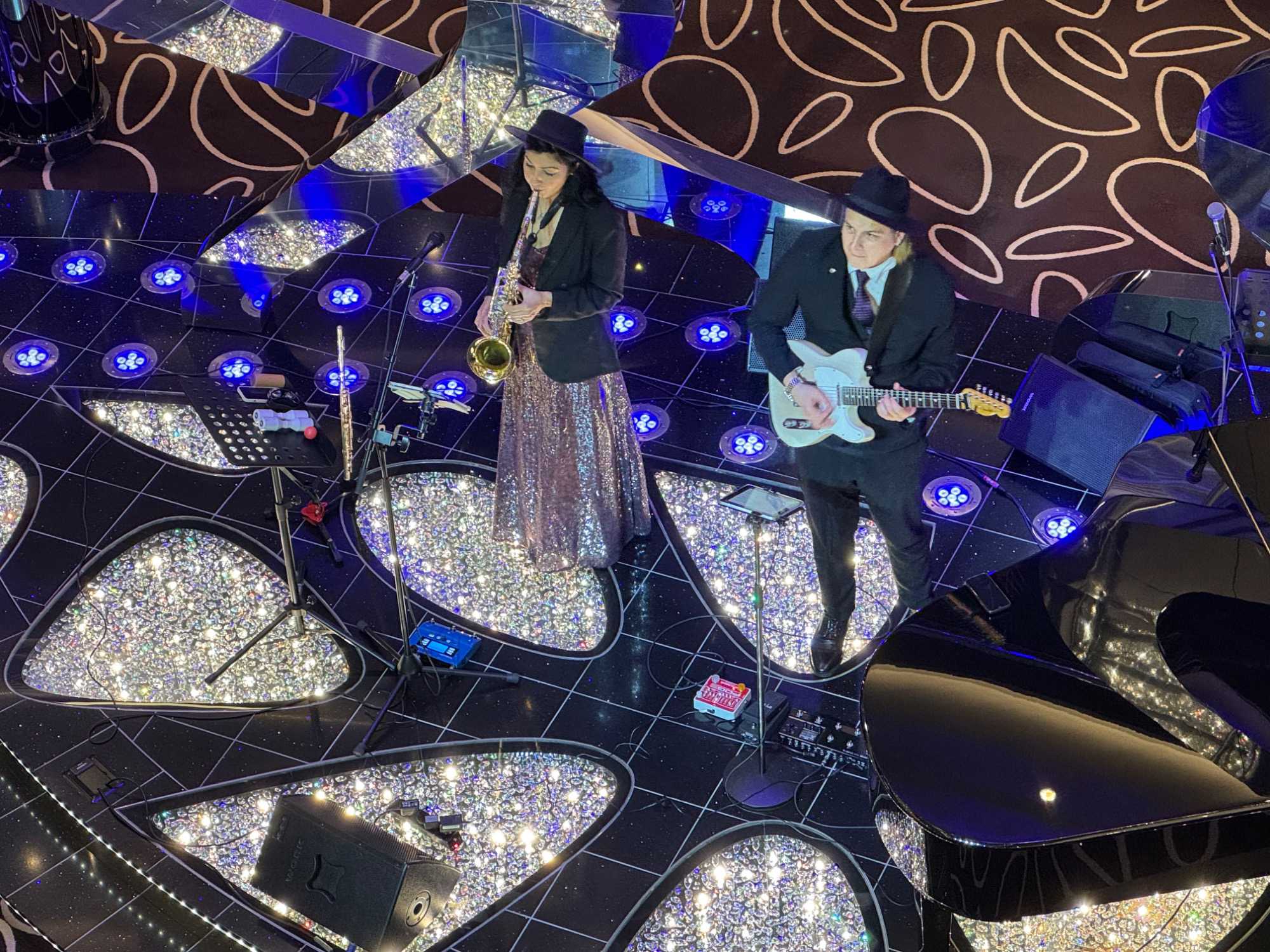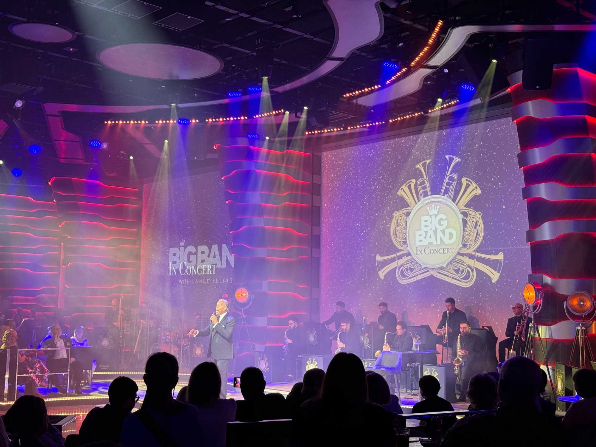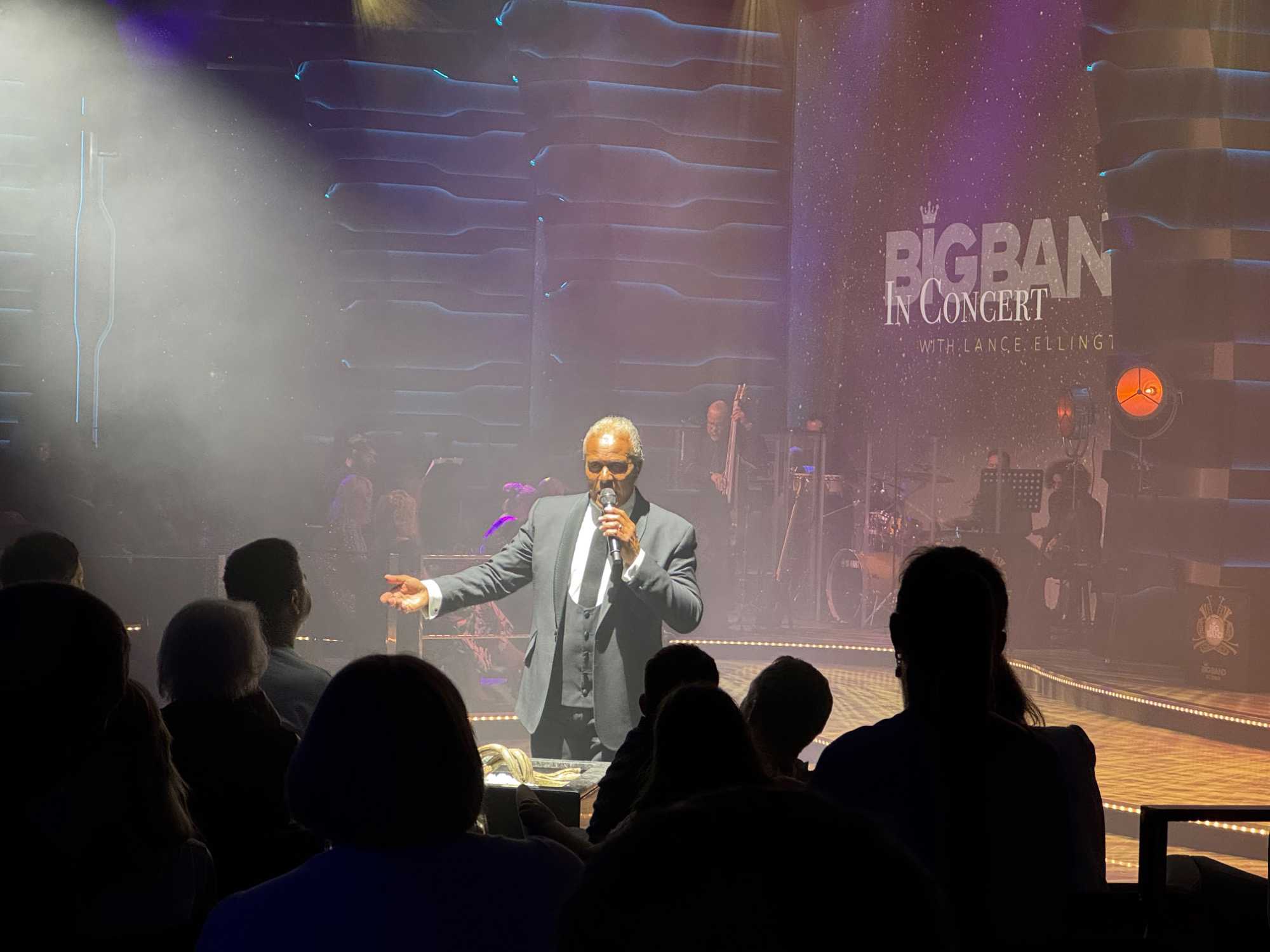 La soirée se poursuit au théâtre, où nous assistons au premier spectacle de la soirée : un impressionnant cirque mettant en scène acrobates, chanteurs et danseurs. Une performance spectaculaire qui captive et émerveille le public. Nous avons également le plaisir d’assister à un concert de Lance Ellington, crooner à la voix remarquable, accompagné d’un Big Band de 17 musiciens. Une prestation élégante et entraînante, digne des grandes soirées musicales.