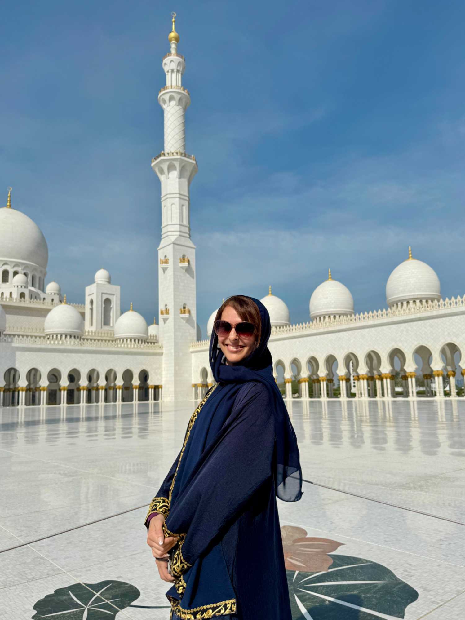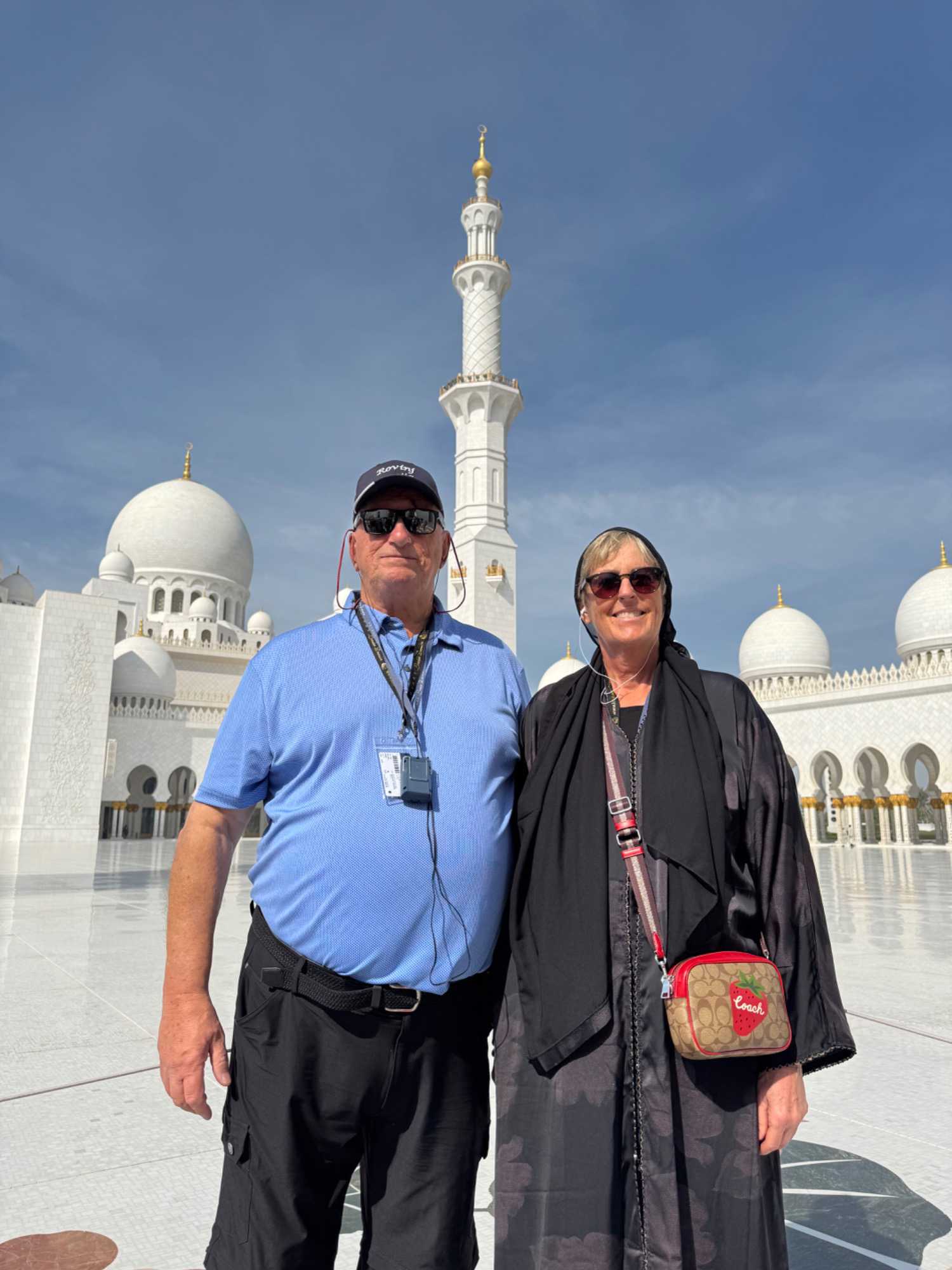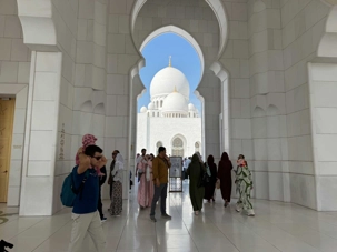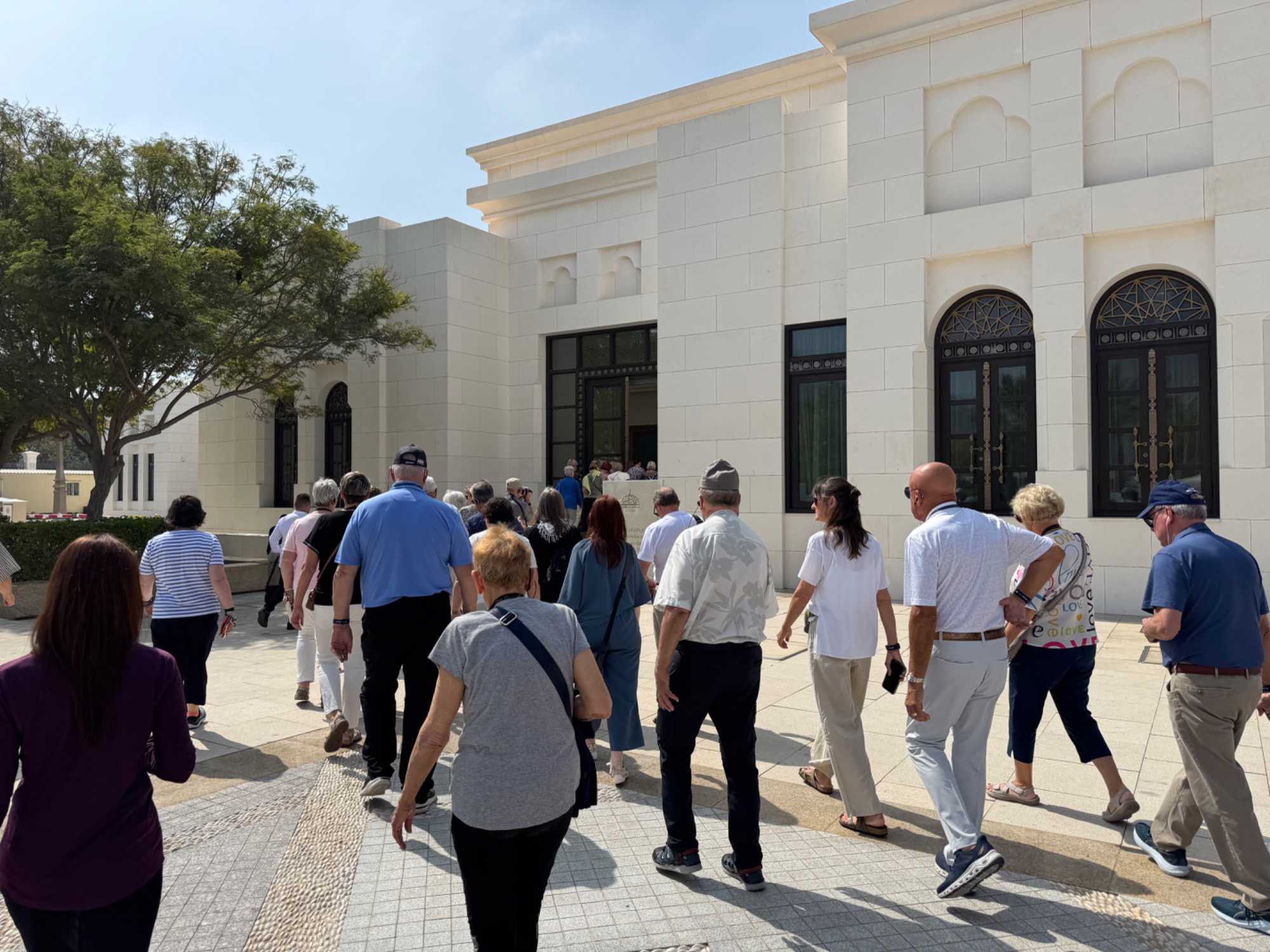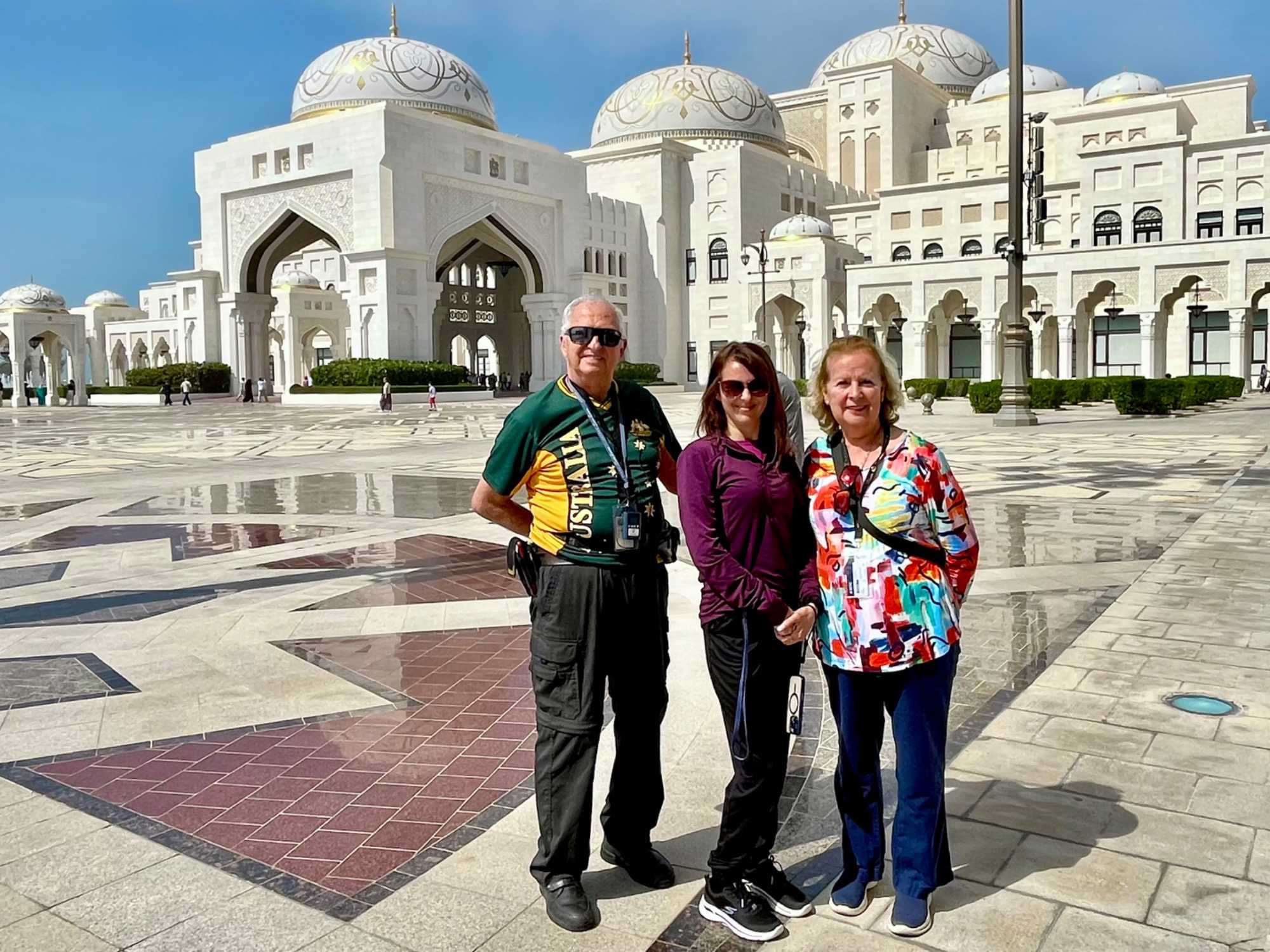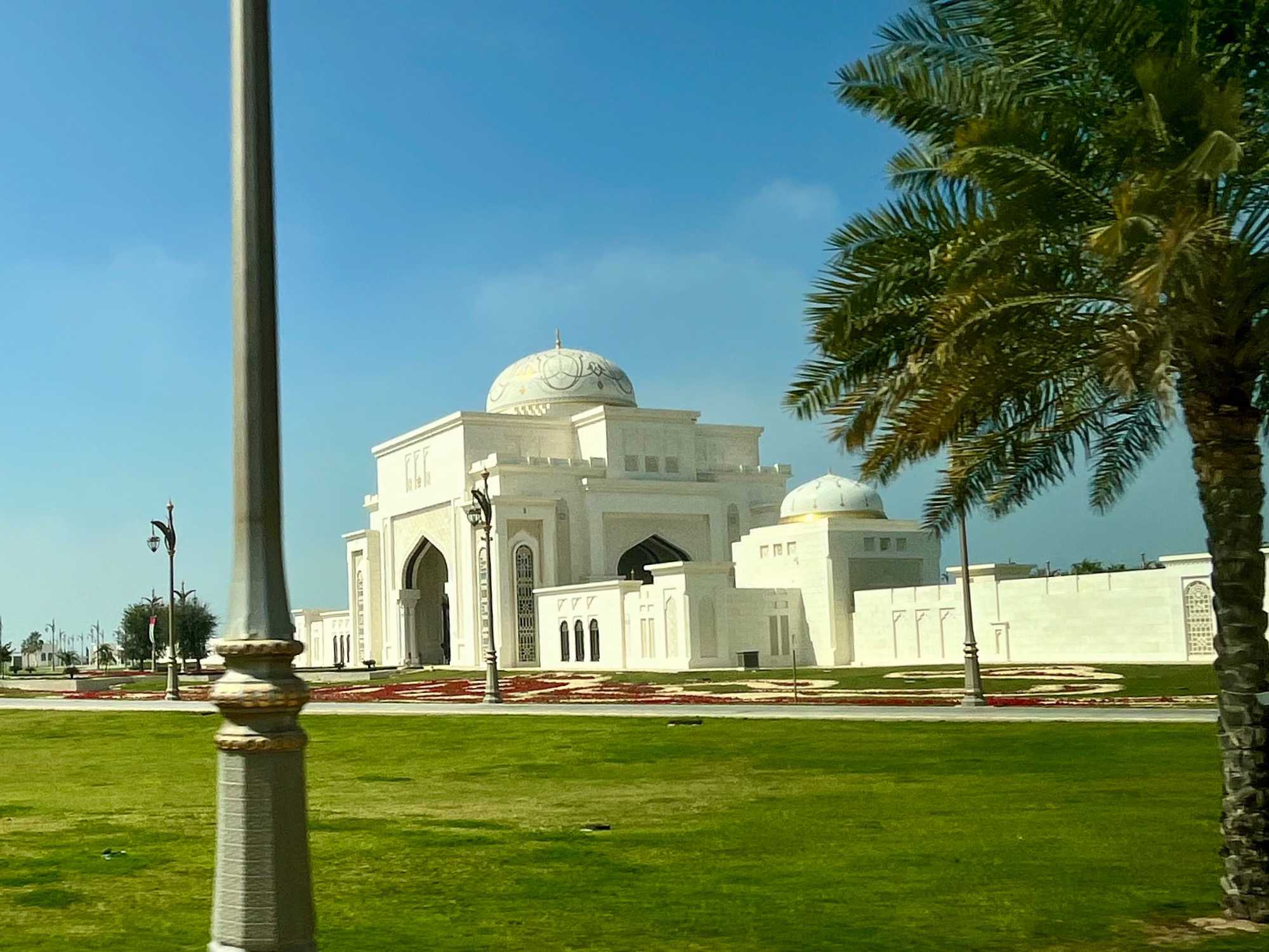 Dès notre descente du navire, nous sommes chaleureusement accueillis par Achille, notre guide francophone, qui nous avait accompagnés lors de nos premiers jours à Dubaï. Nous sommes tous très heureux de le retrouver, car nous l’avions grandement apprécié. Ensemble, nous débutons un tour panoramique de la ville. Au fil des kilomètres, Abou Dhabi révèle l’ampleur de son développement, rendu possible notamment grâce à ses importantes réserves pétrolières, tout en demeurant fidèle à la vision de son fondateur, le cheikh Zayed bin Sultan Al Nahyan : un développement moderne solidement ancré dans les valeurs culturelles et religieuses du pays.