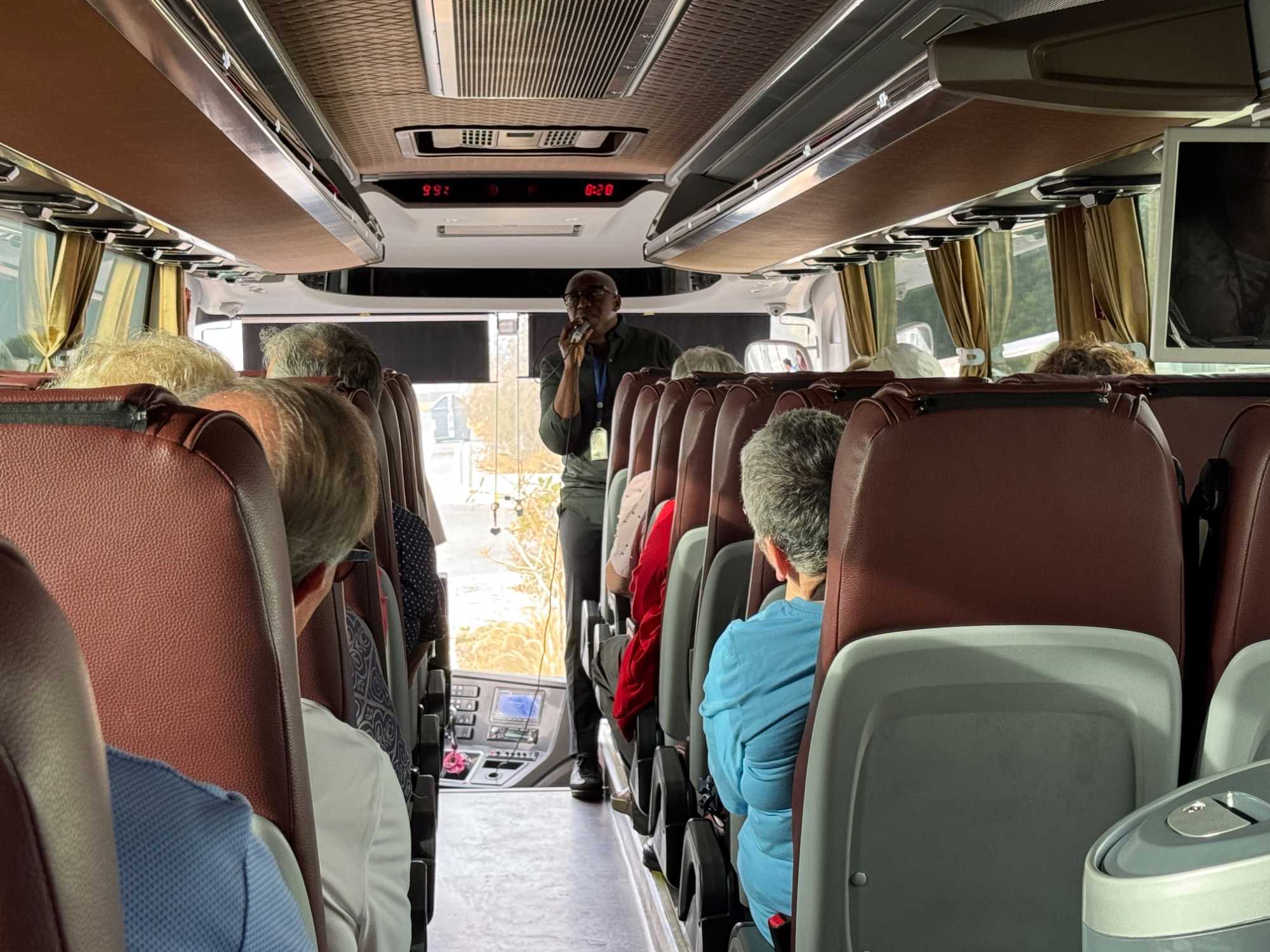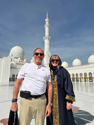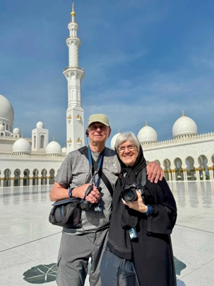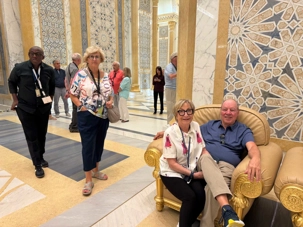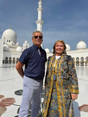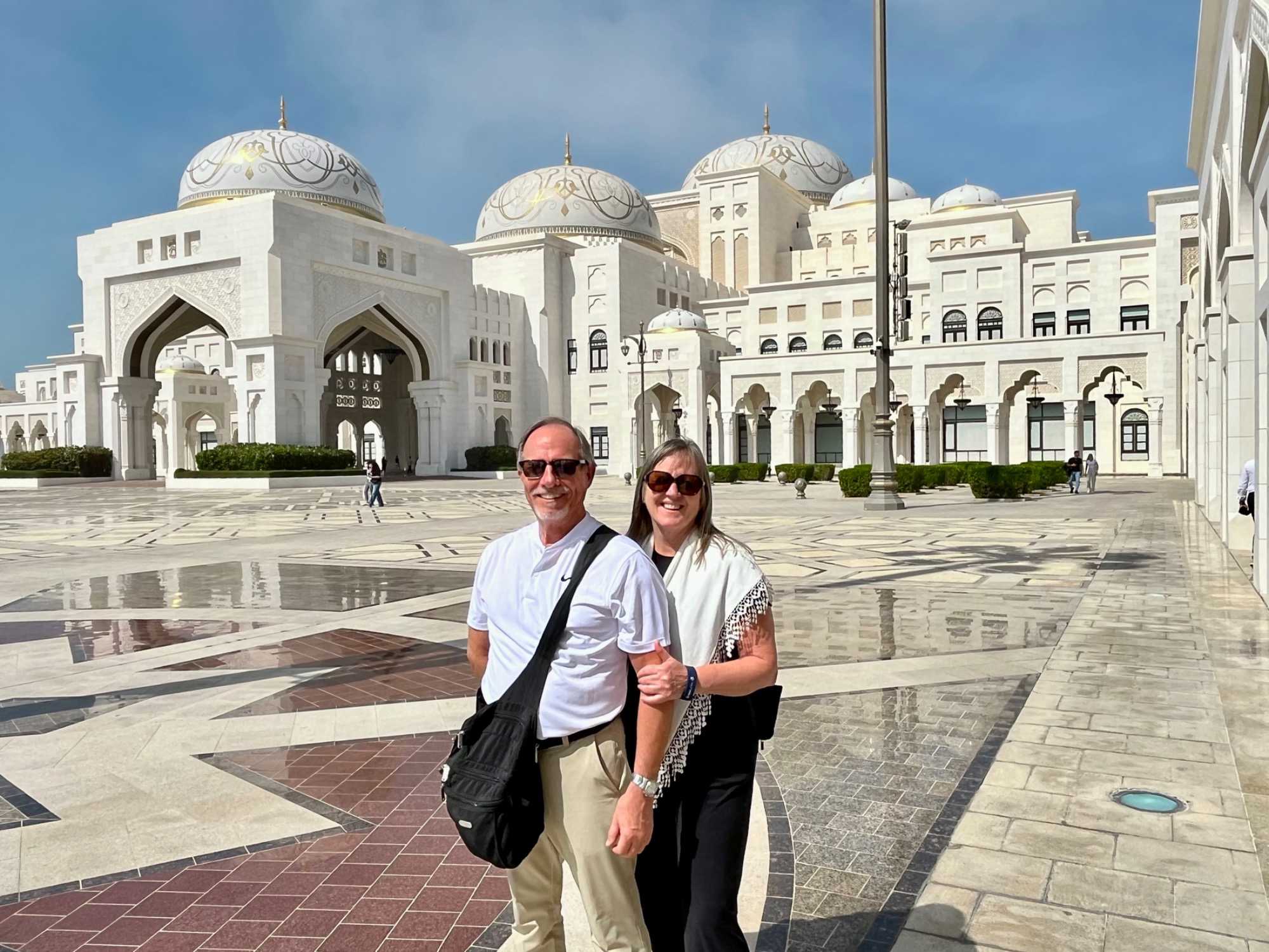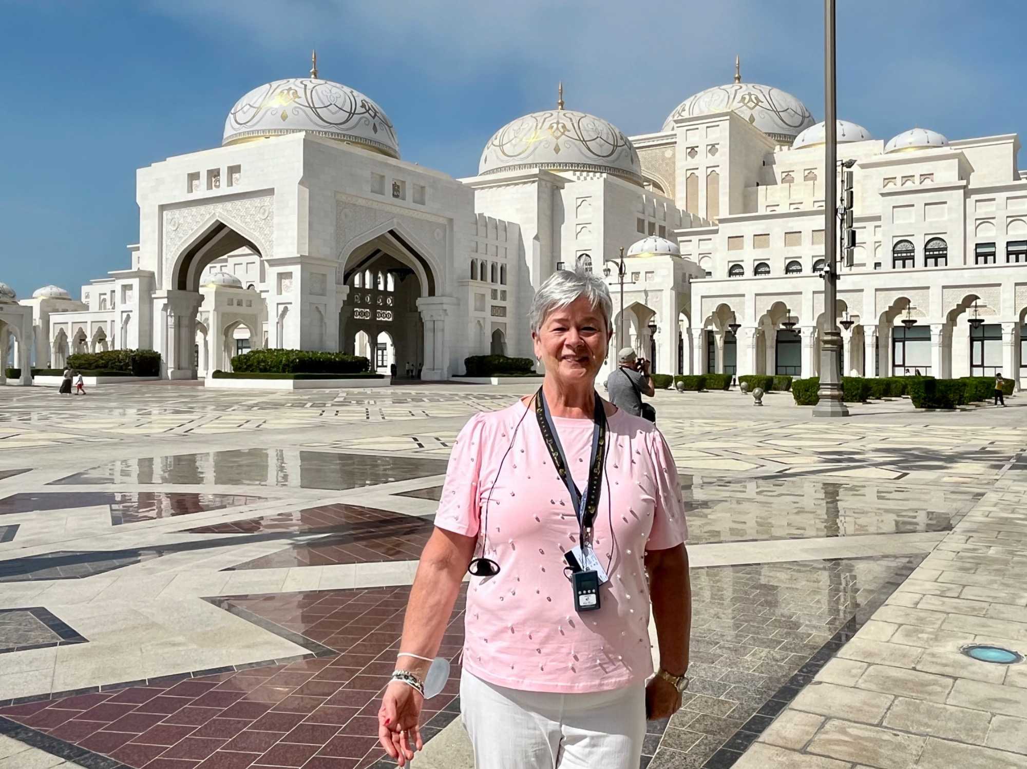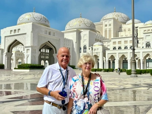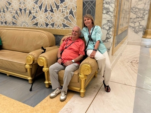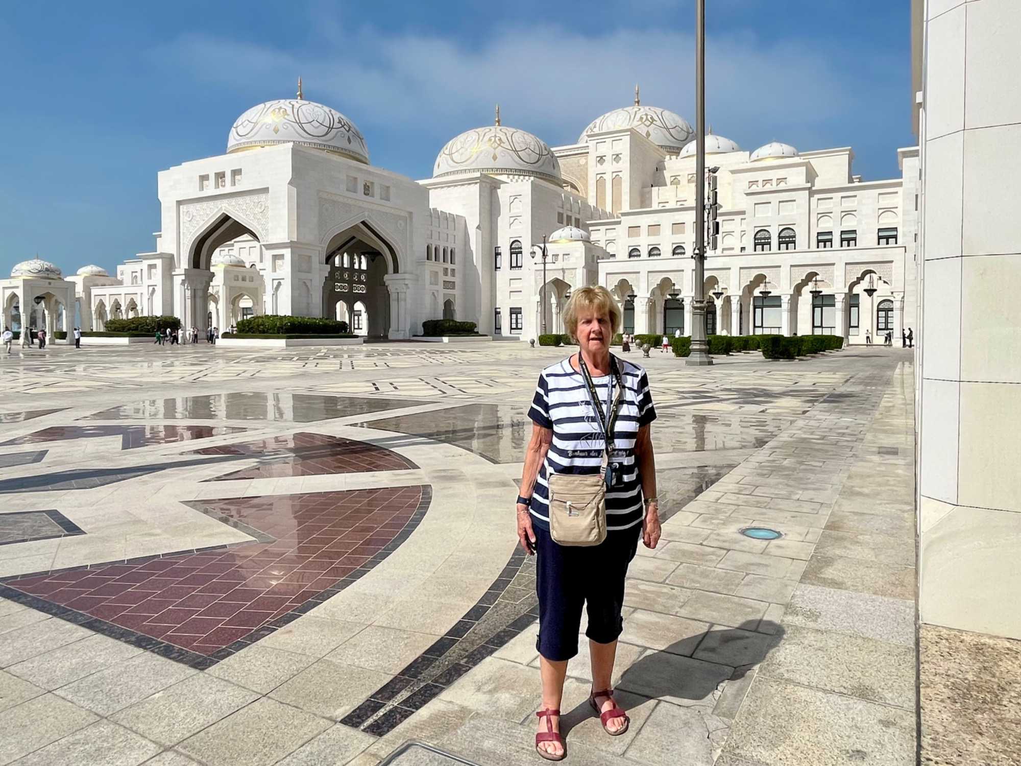 Dès notre descente du navire, nous sommes chaleureusement accueillis par Achille, notre guide francophone, qui nous avait accompagnés lors de nos premiers jours à Dubaï. Nous sommes tous très heureux de le retrouver, car nous l’avions grandement apprécié. Ensemble, nous débutons un tour panoramique de la ville. Au fil des kilomètres, Abou Dhabi révèle l’ampleur de son développement, rendu possible notamment grâce à ses importantes réserves pétrolières, tout en demeurant fidèle à la vision de son fondateur, le cheikh Zayed bin Sultan Al Nahyan : un développement moderne solidement ancré dans les valeurs culturelles et religieuses du pays.