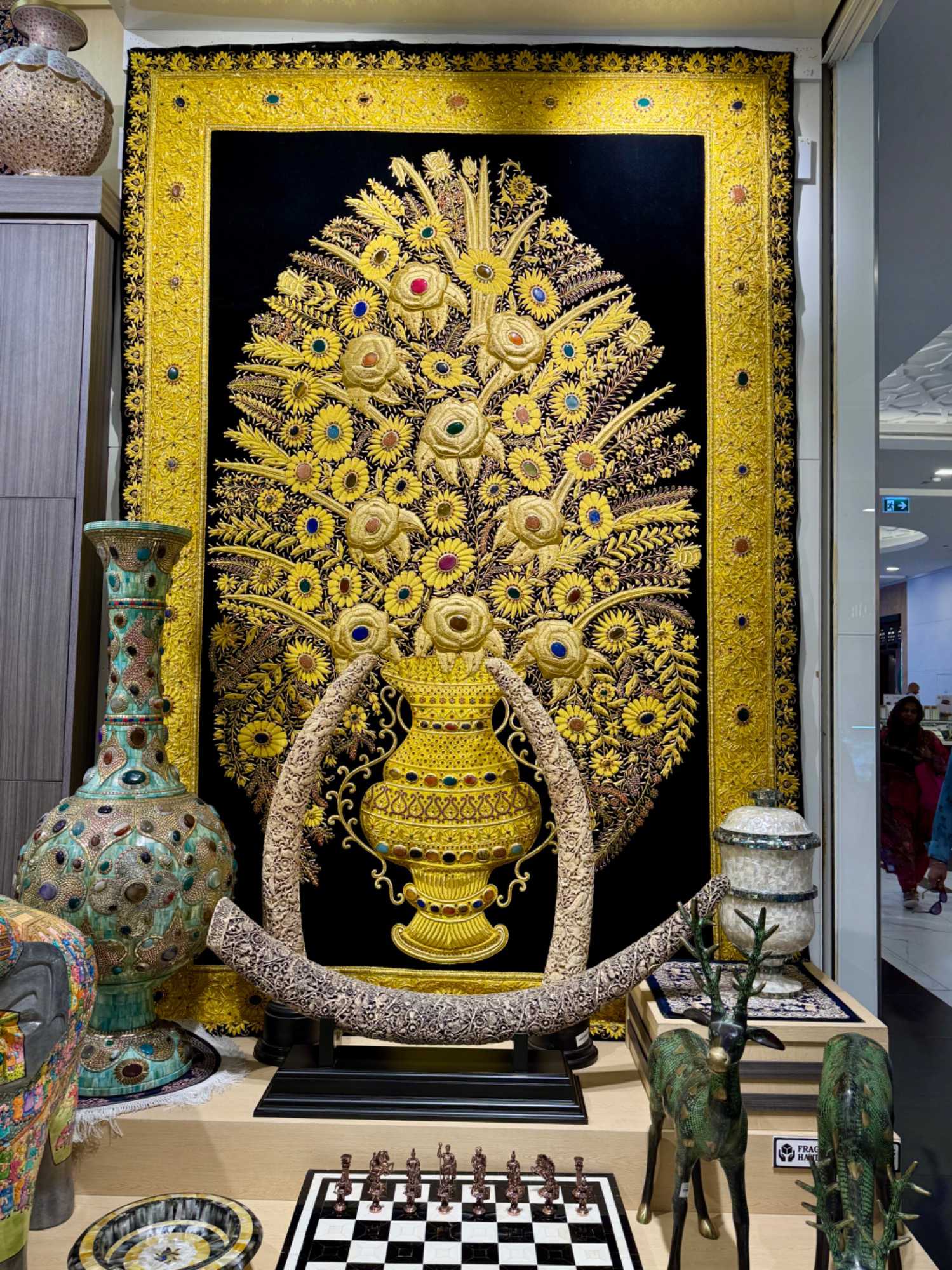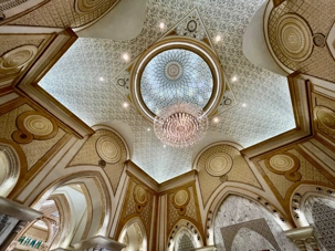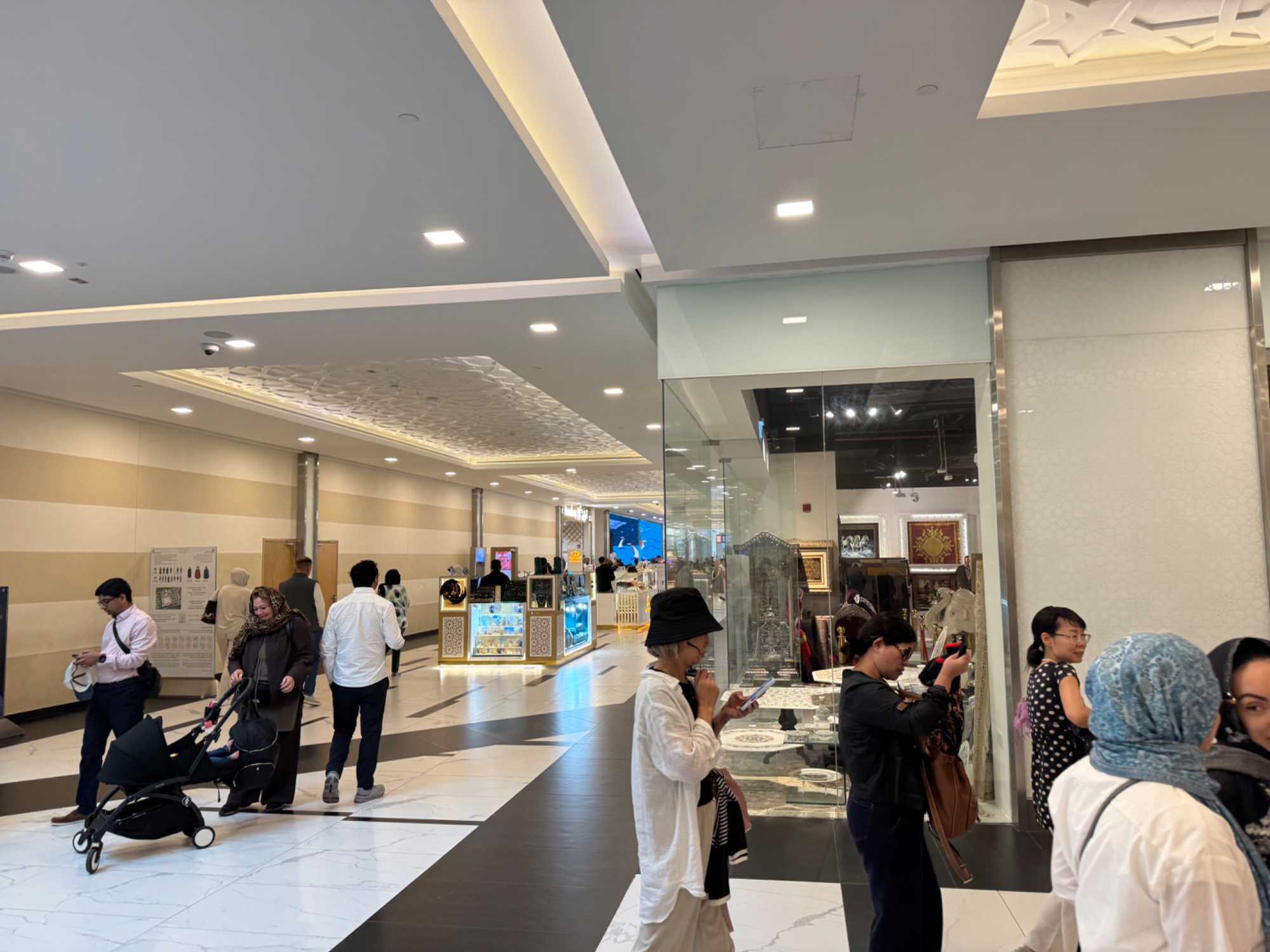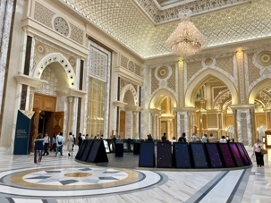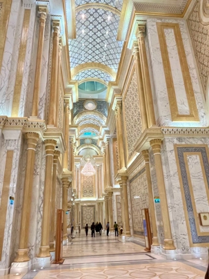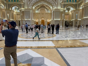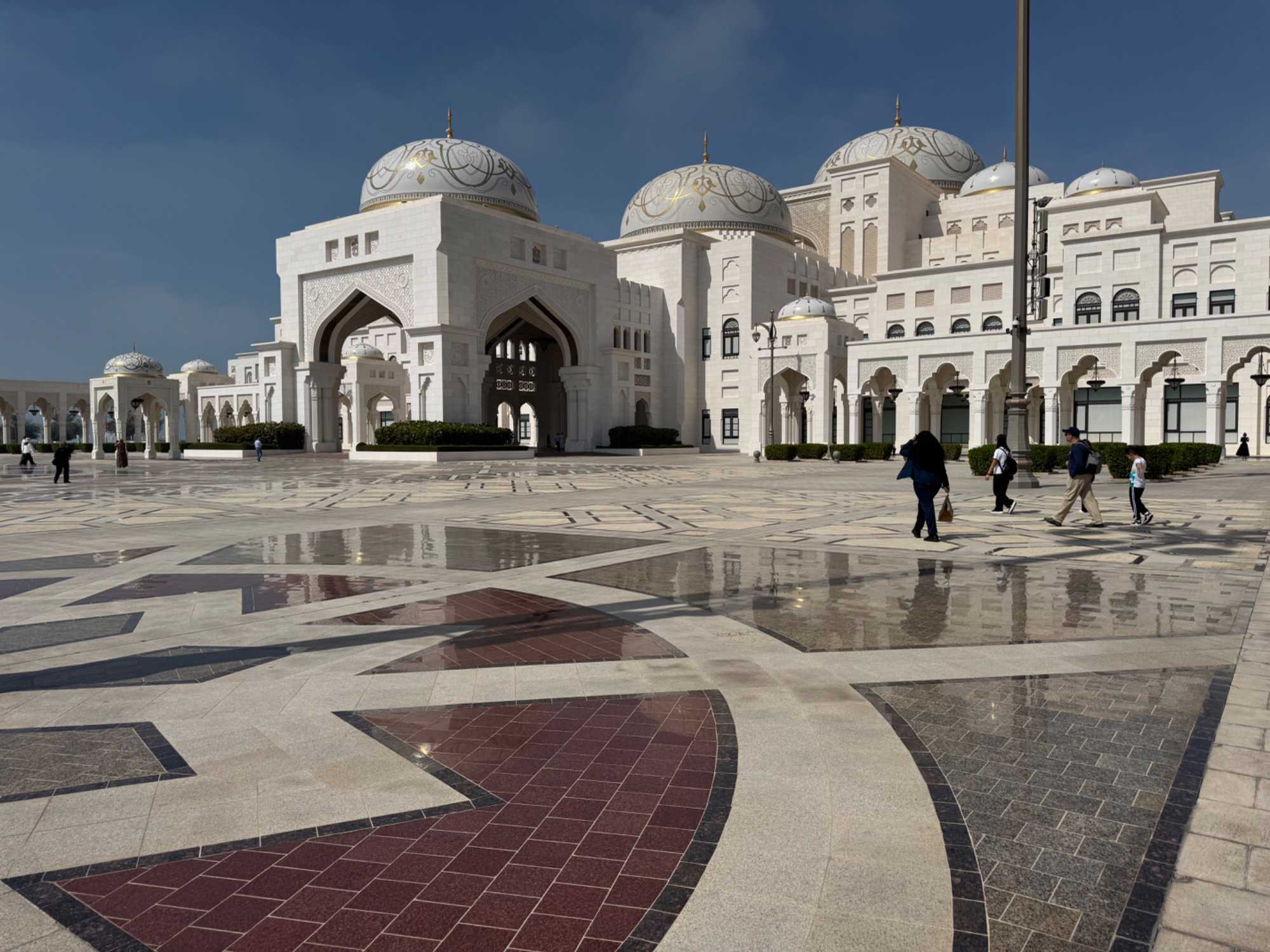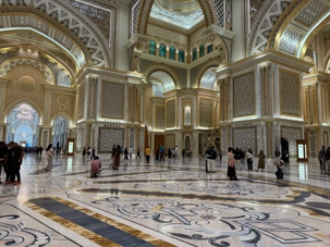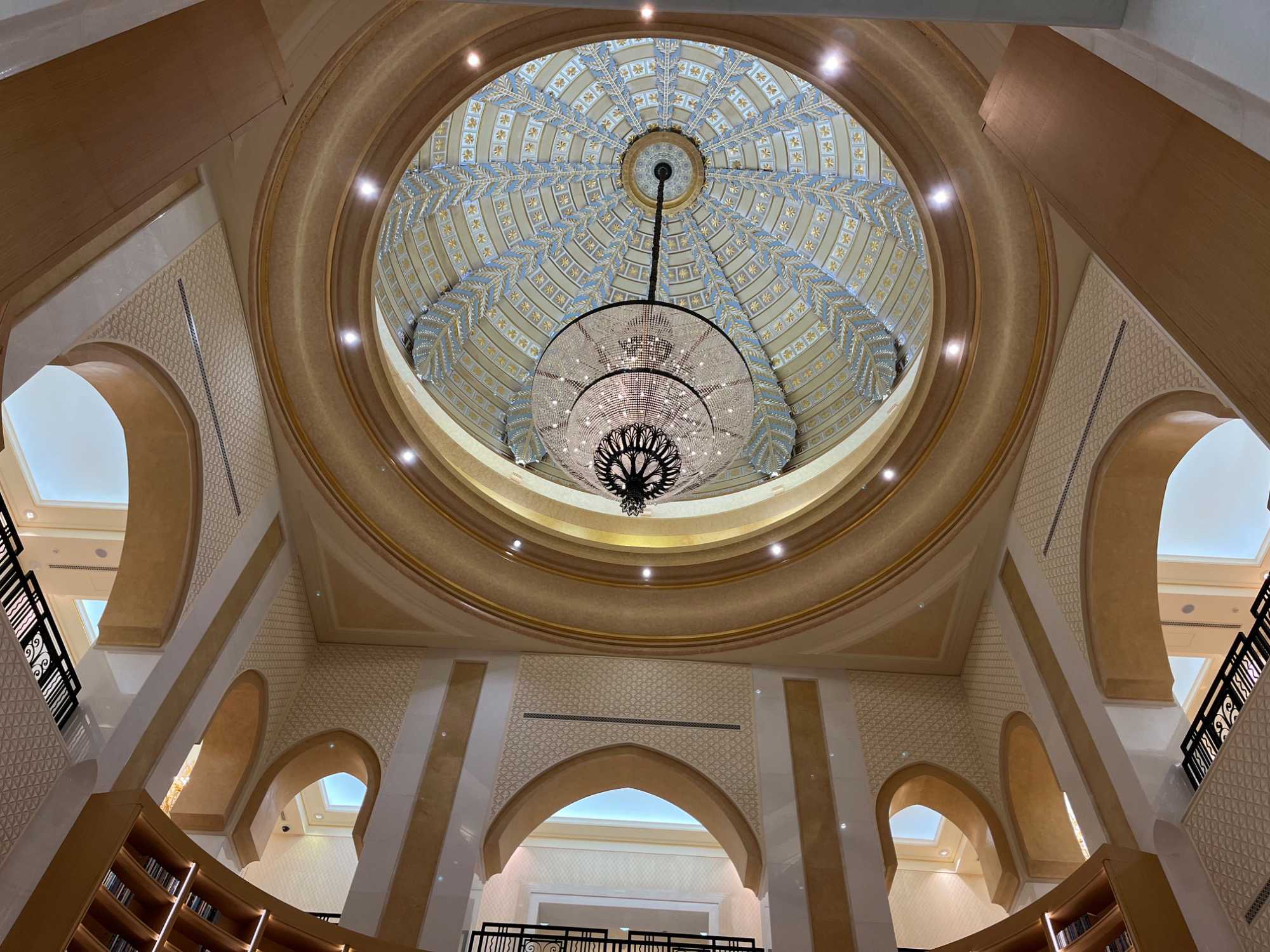 Nous poursuivons ensuite avec la visite du Qasr Al Watan, le palais présidentiel d’Abou Dhabi, ouvert au public depuis 2019. Achevé en 2015, cet édifice est bien plus qu’un bâtiment officiel : il rend hommage au patrimoine, à l’art et au savoir du monde arabe. Les vastes salles de marbre, les dômes majestueux, les décors dorés et l’impressionnante bibliothèque offrent un aperçu captivant de l’histoire, de la gouvernance et des valeurs qui ont façonné la région. Chaque espace témoigne d’un profond respect pour la connaissance et sa transmission.
